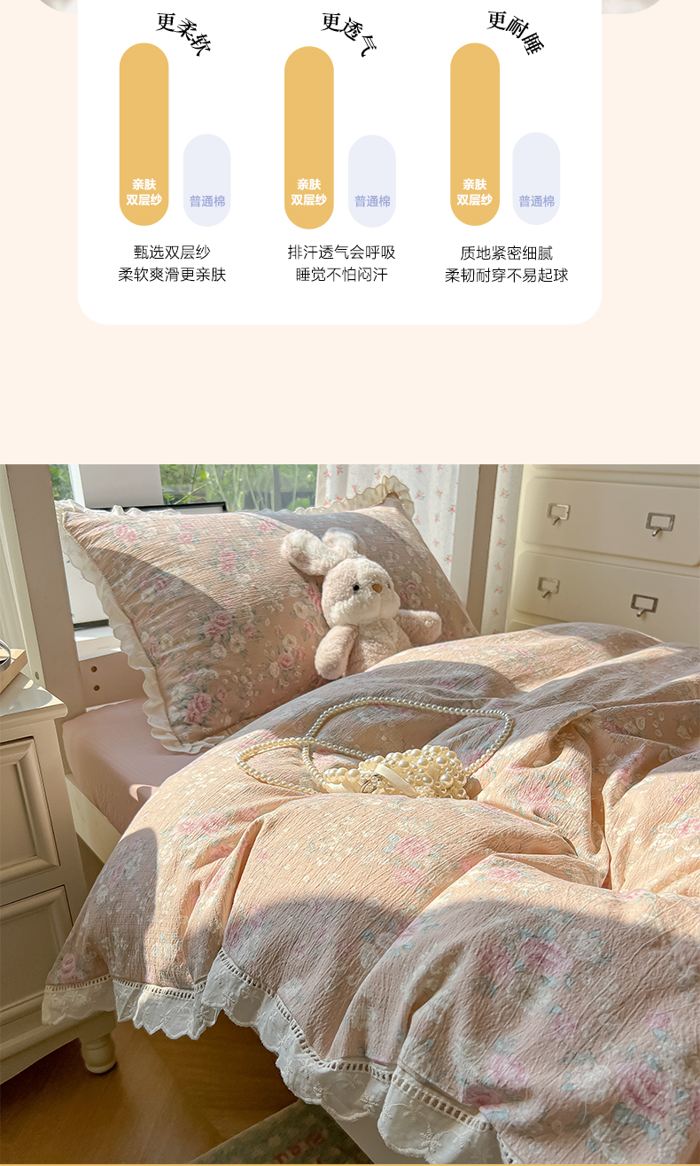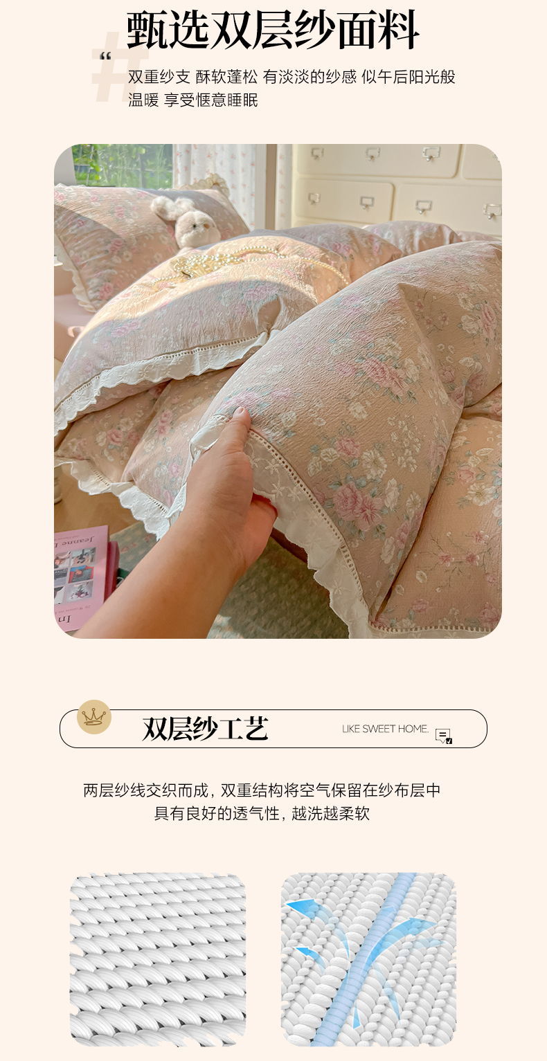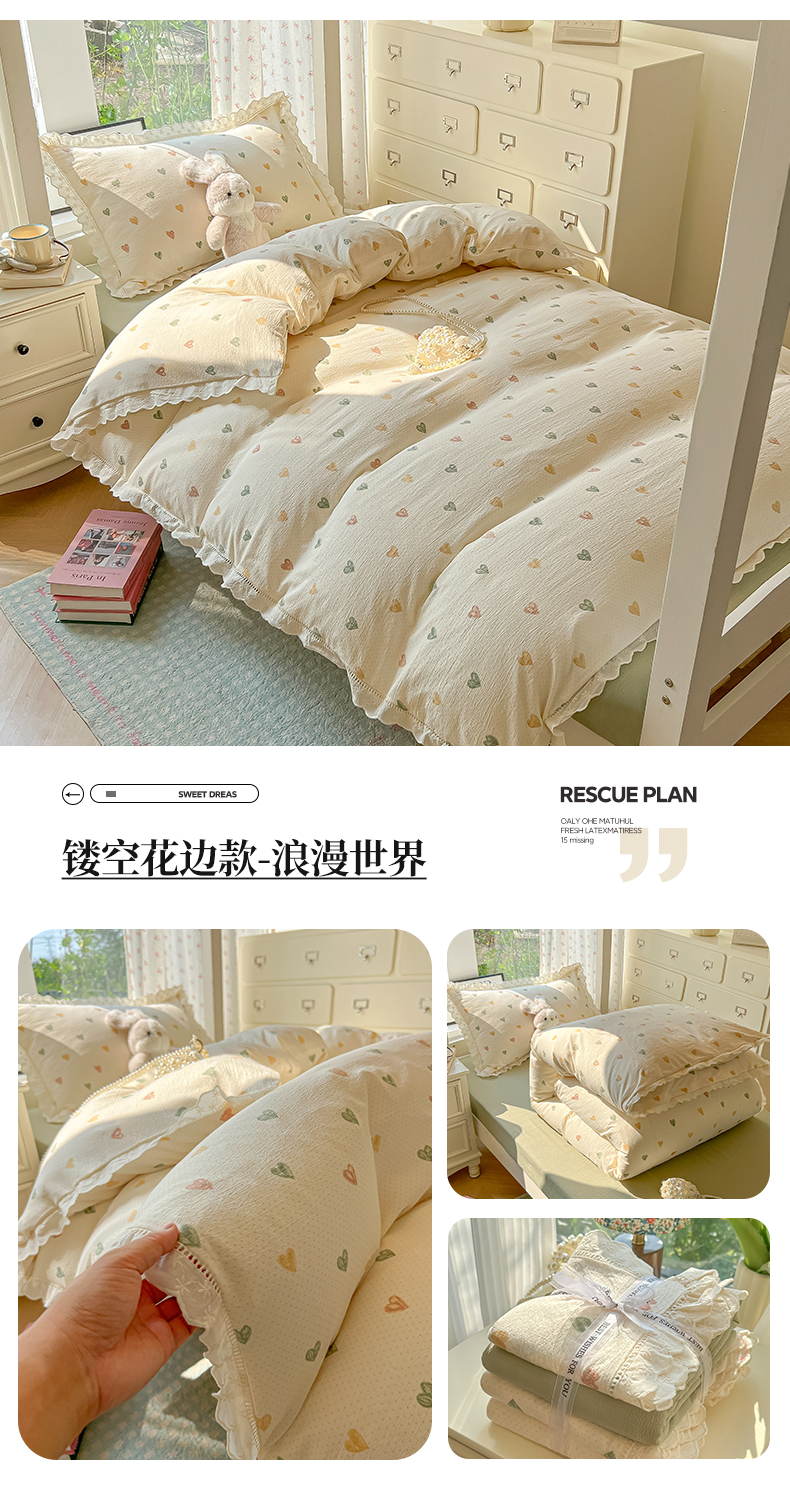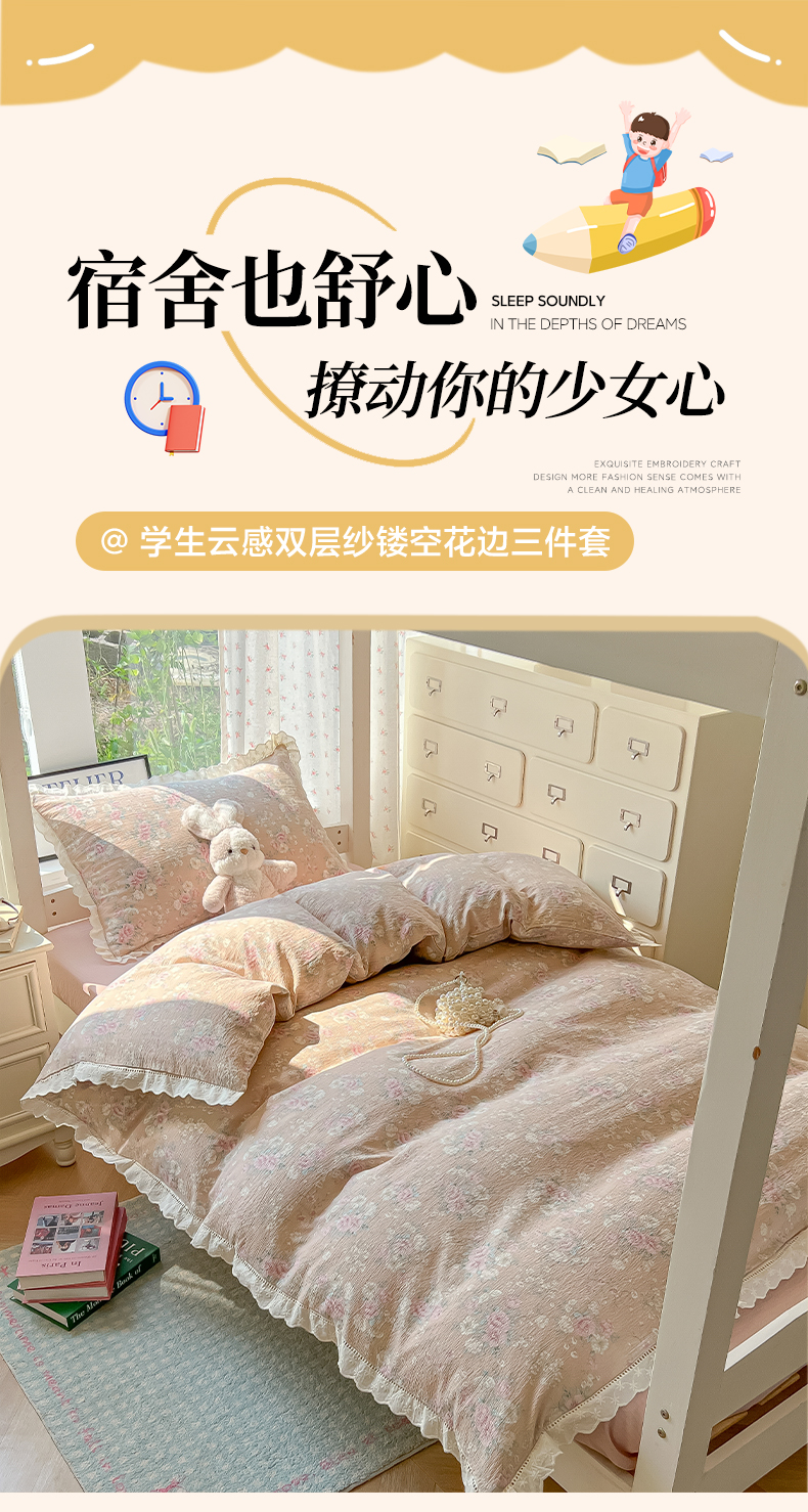 当前位置: 91家纺网 > 商品网购 > 床品套件 > 三件套 > 韩巢家纺 2025新款学生宿舍三件套上下铺学生季开学季床品 镂空花边款-爱如星辰