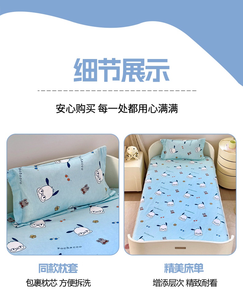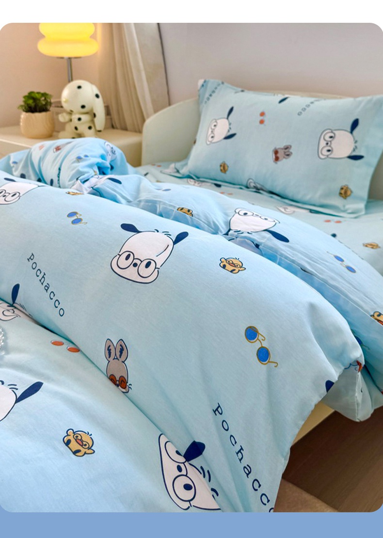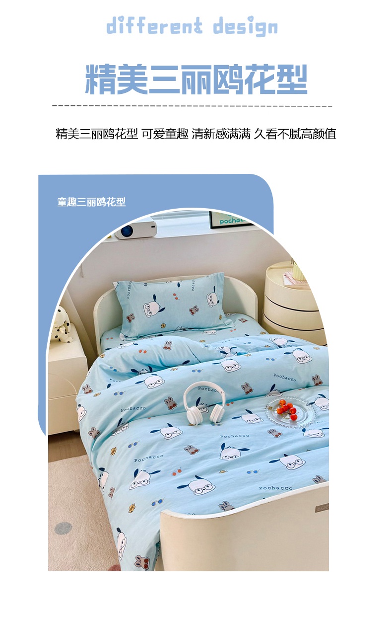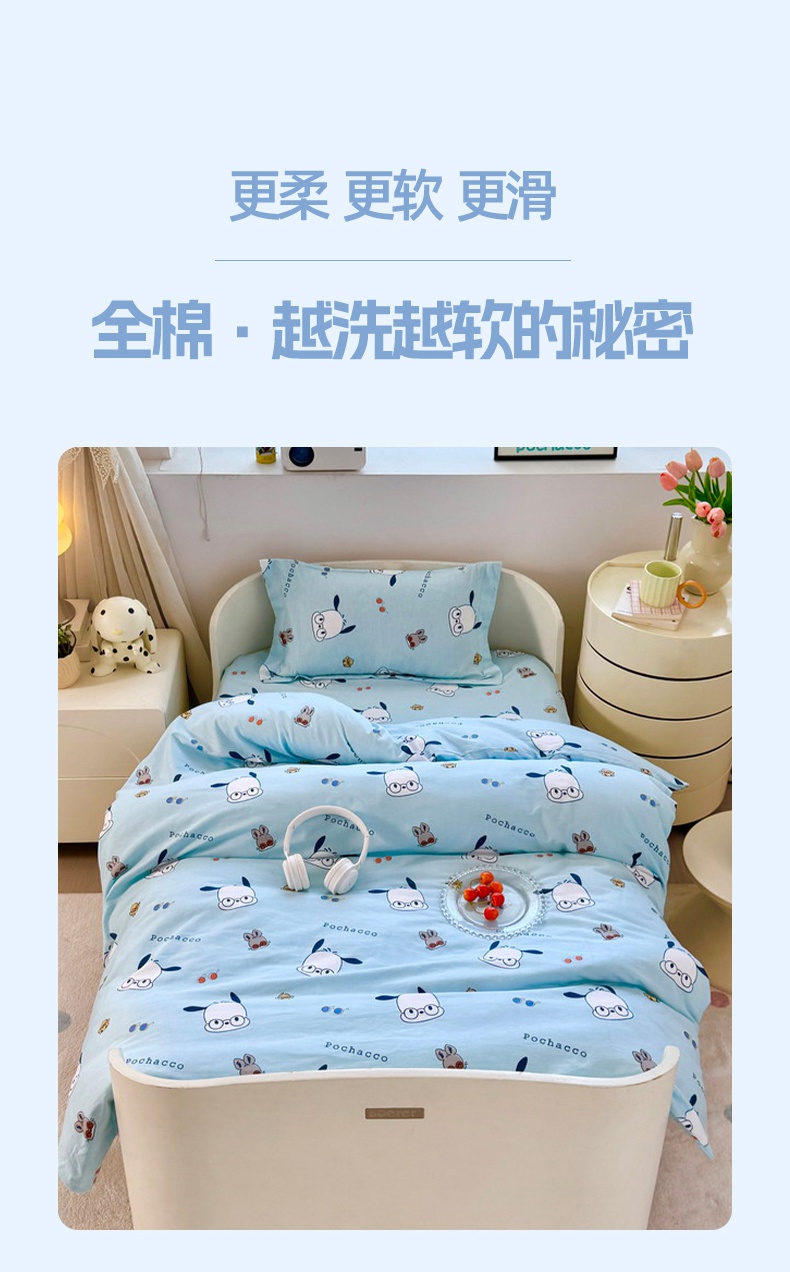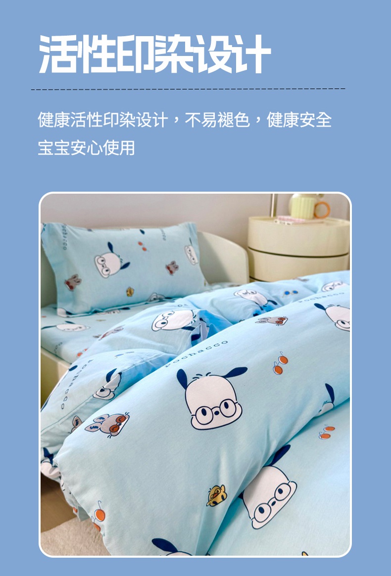 商品名称:蘭菲家纺 2025新款学生季全棉幼儿园三丽鸥三件套小版系列 眼镜狗.蓝