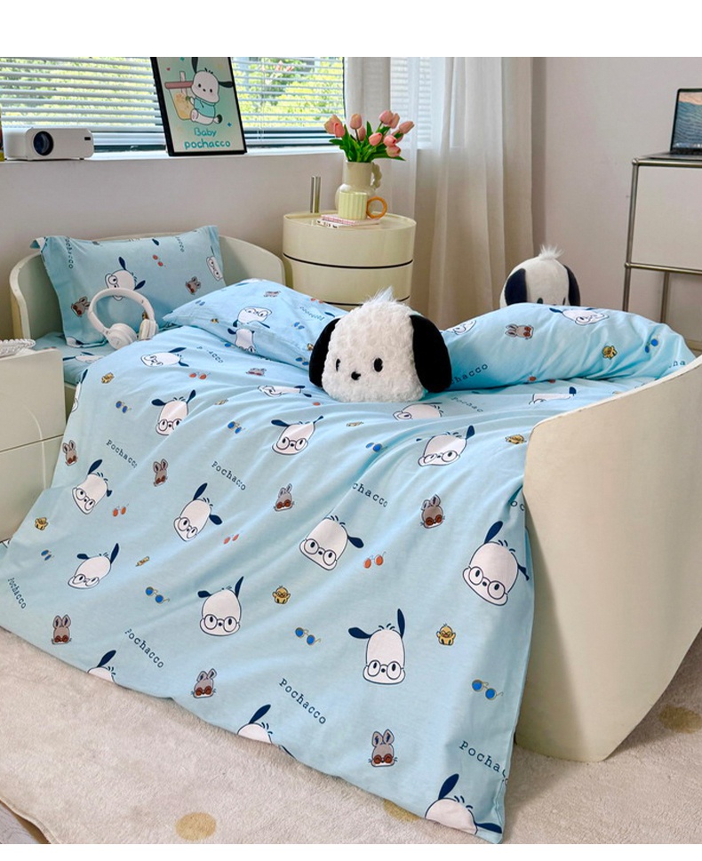 蘭菲家纺 2025新款学生季全棉幼儿园三丽鸥三件套小版系列 眼镜狗.蓝