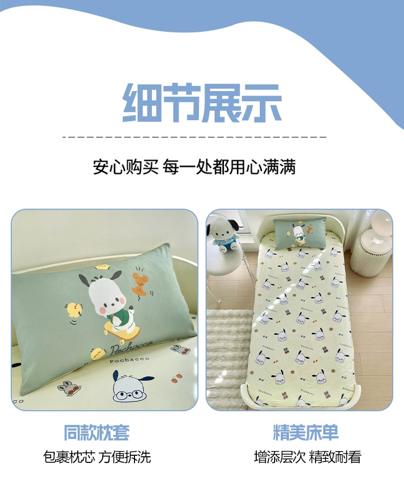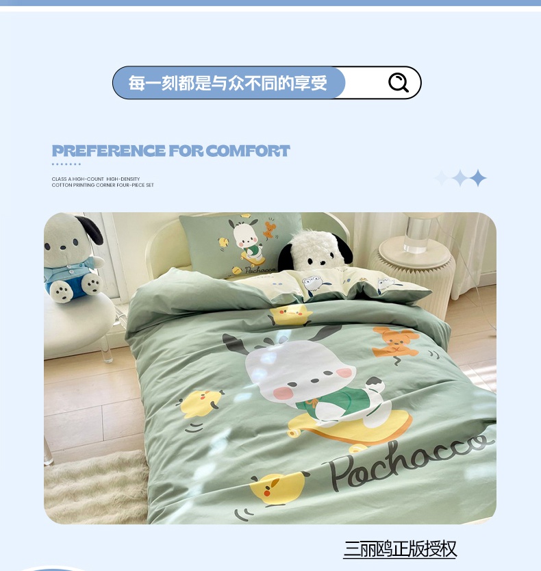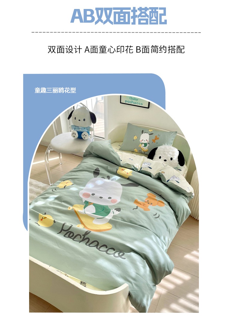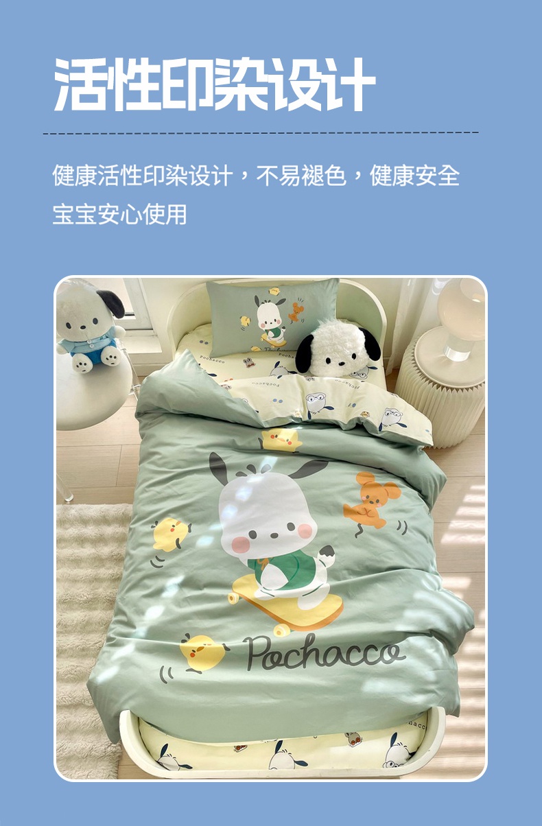 商品名称:蘭菲家纺 2025新款学生季全棉幼儿园三丽鸥三件套大版系列 滑板恰恰