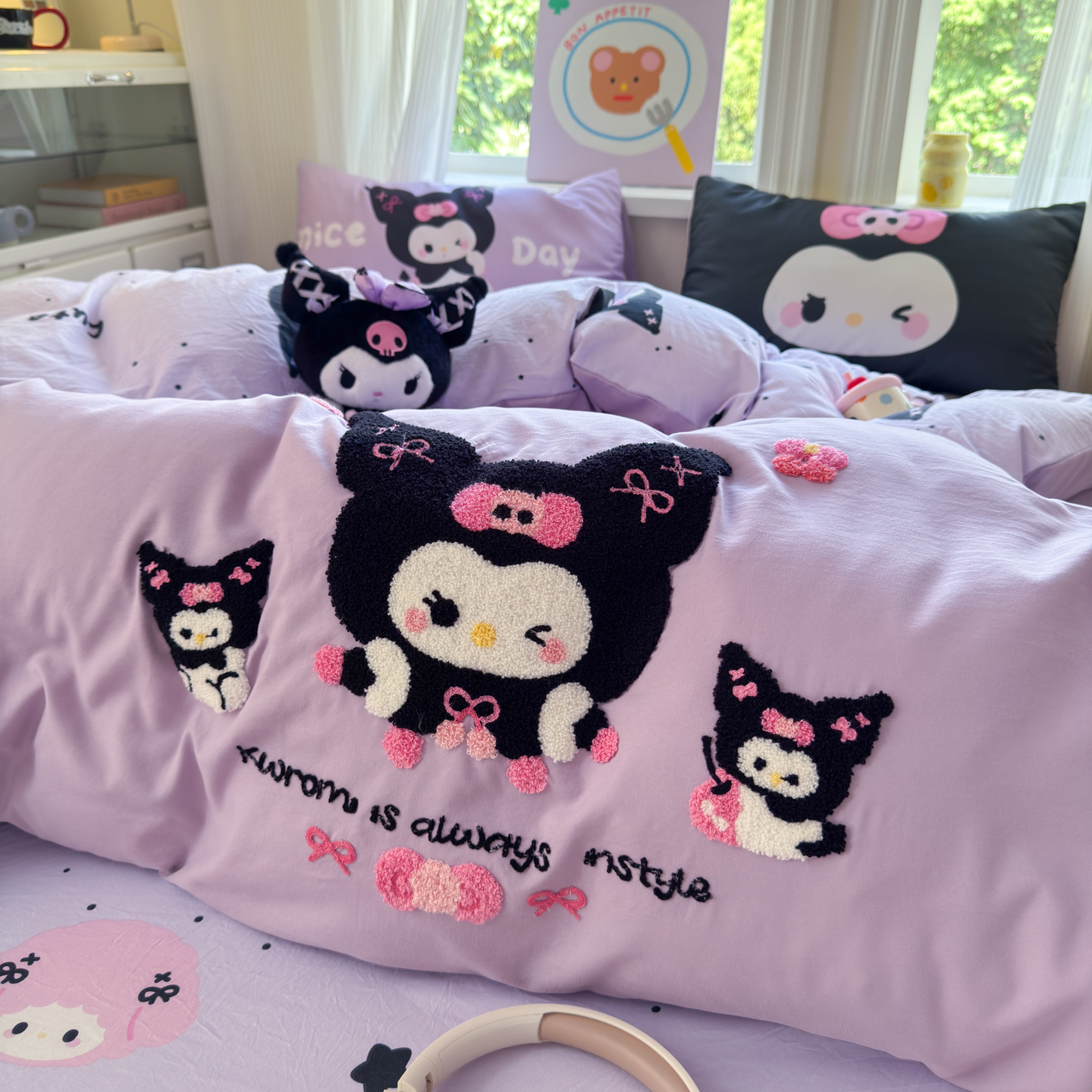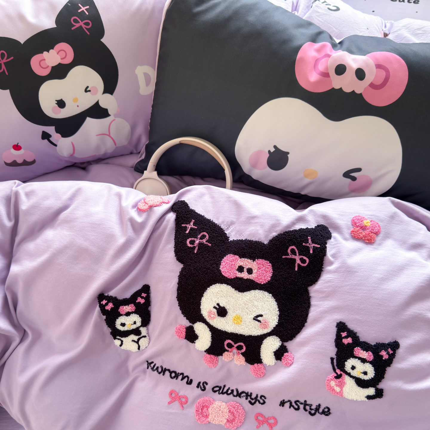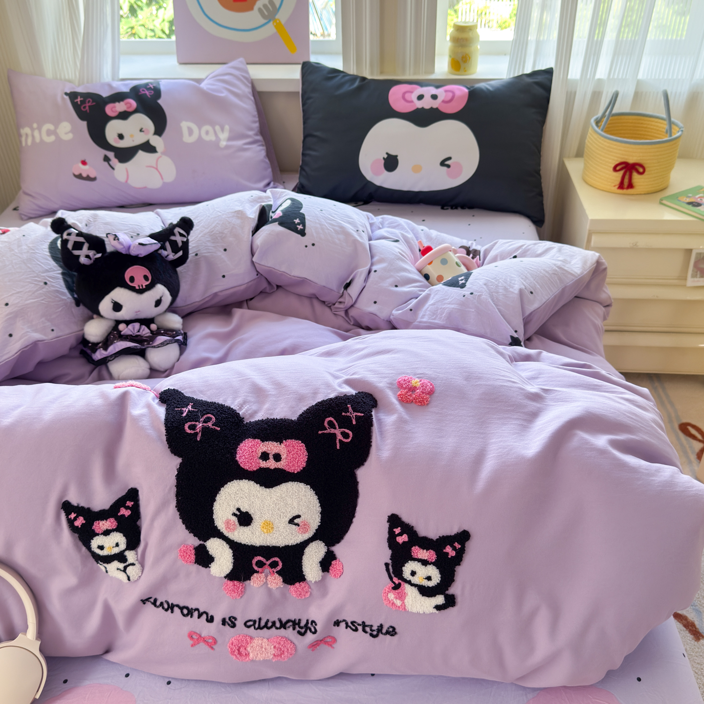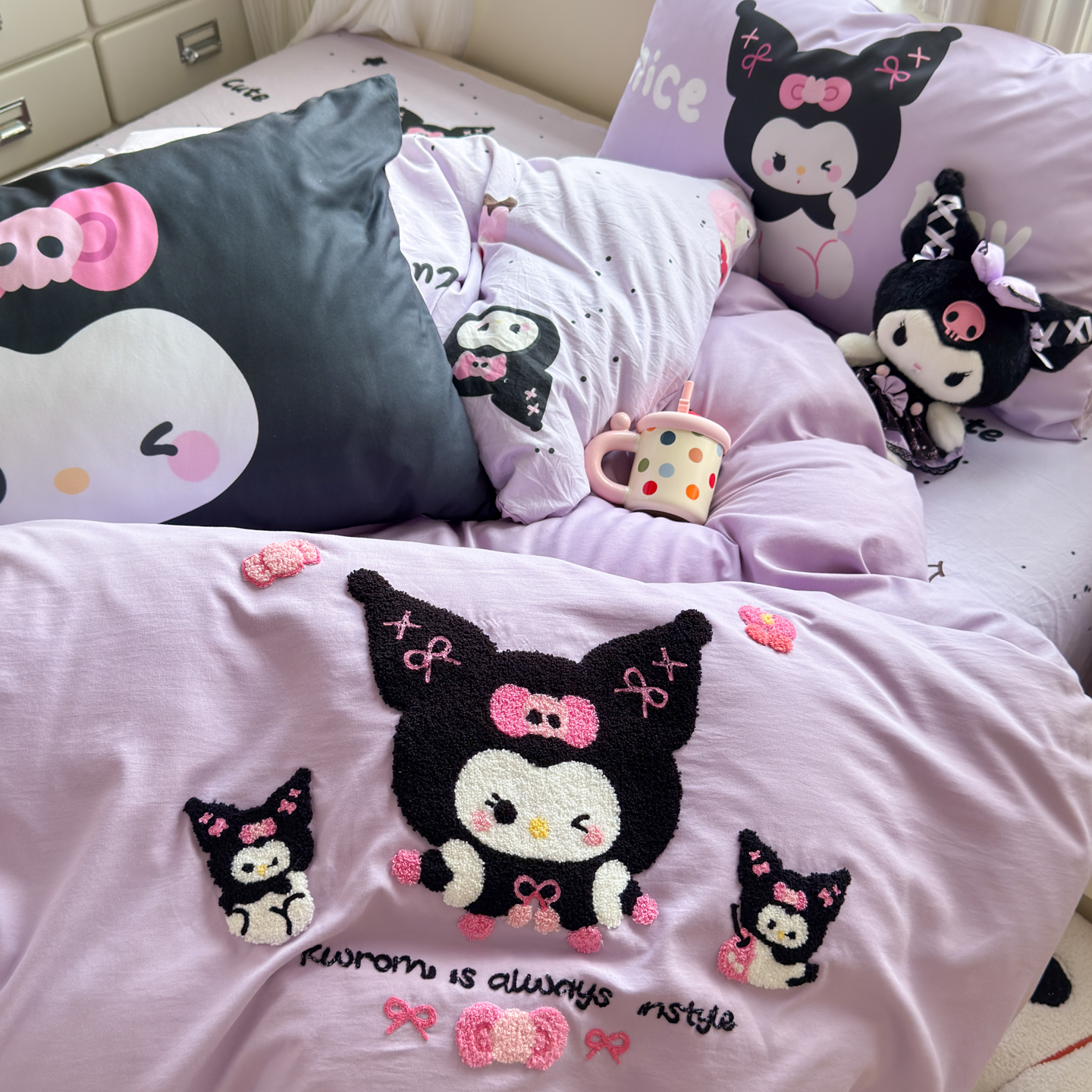 当前位置: 91家纺网 > 商品网购 > 床品套件 > 四件套 > 毛巾绣四件套 > 一霖家纺 2025新款高克重云朵棉毛巾绣印绣四件套-小清新系列-第三波 黑库米米