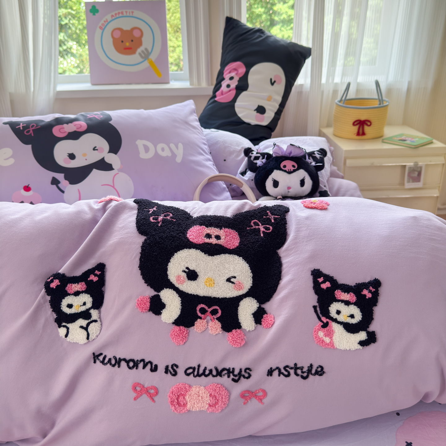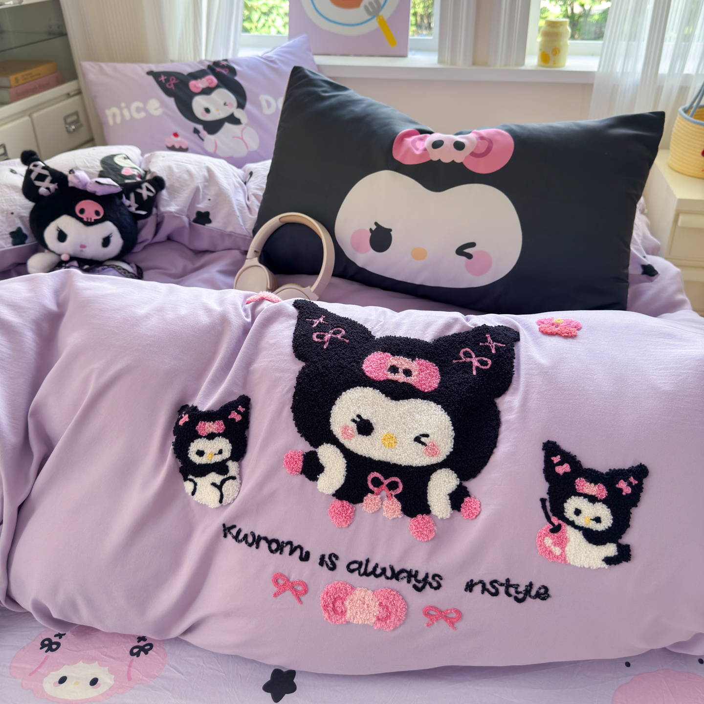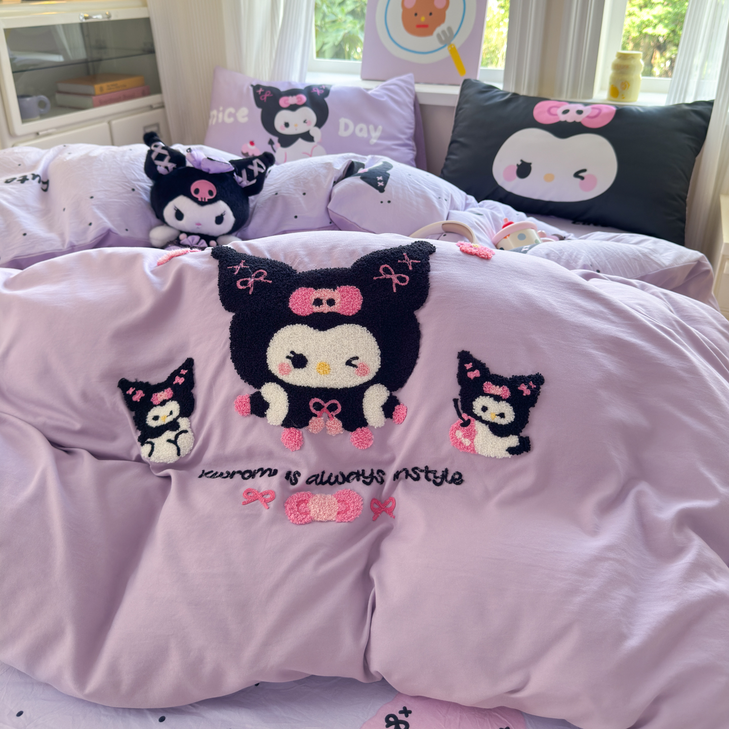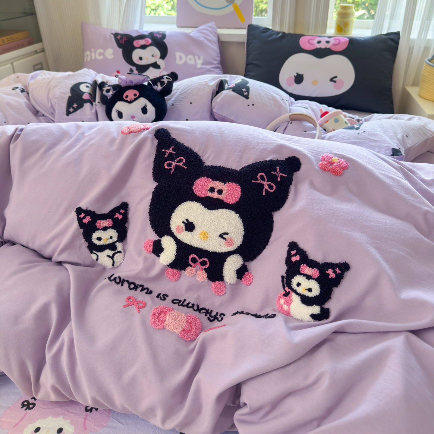 当前位置: 91家纺网 > 商品网购 > 床品套件 > 四件套 > 毛巾绣四件套 > 一霖家纺 2025新款高克重云朵棉毛巾绣印绣四件套-小清新系列-第三波 黑库米米
