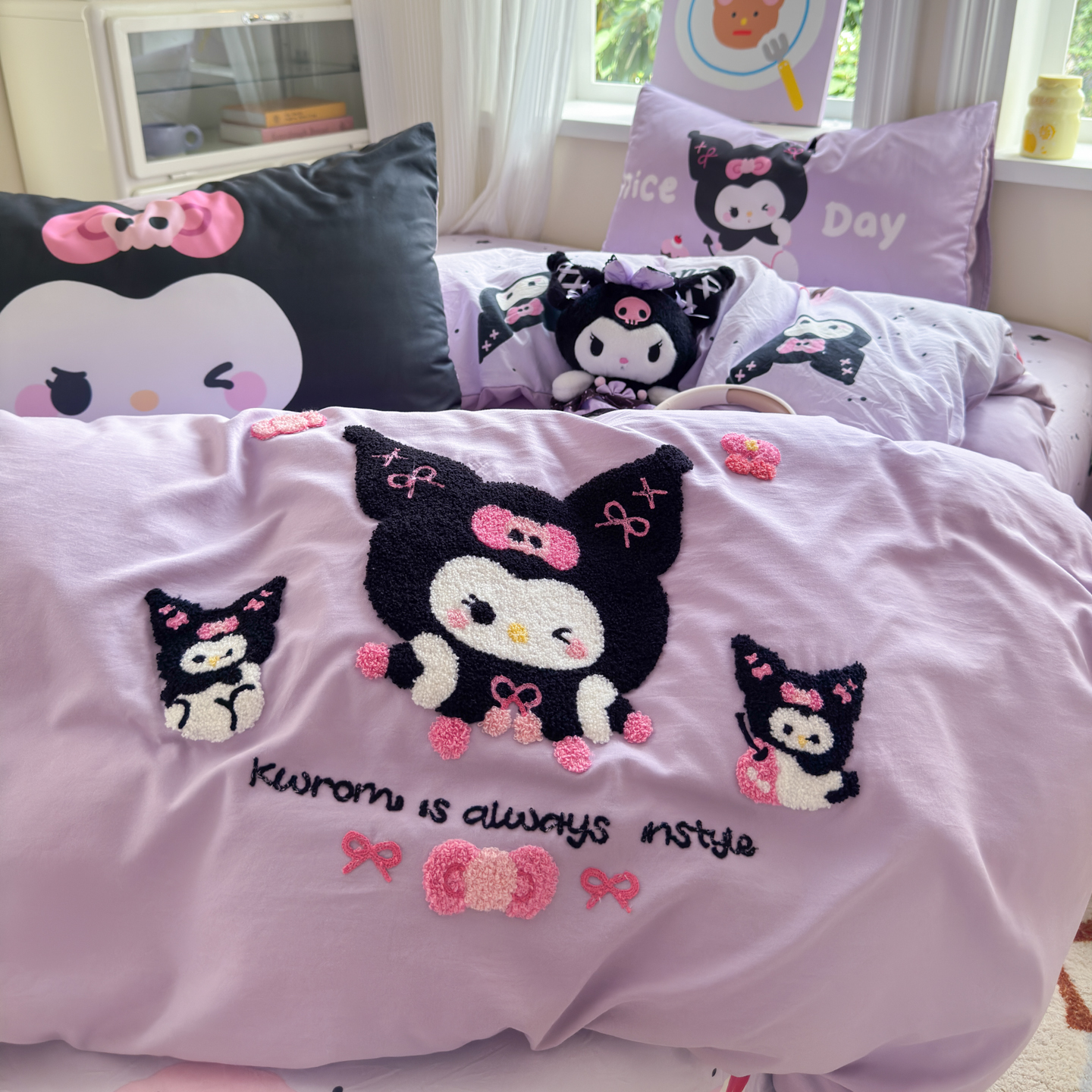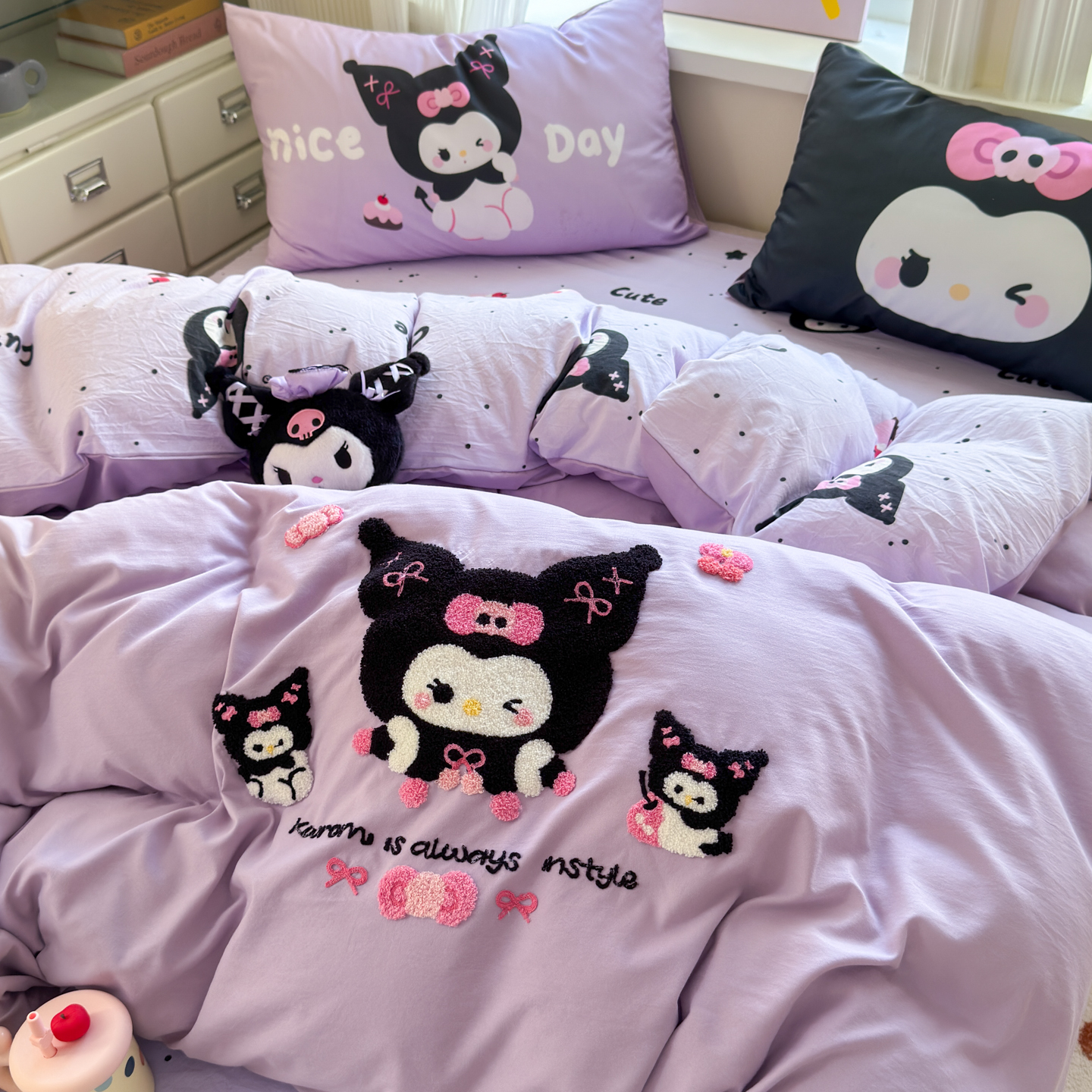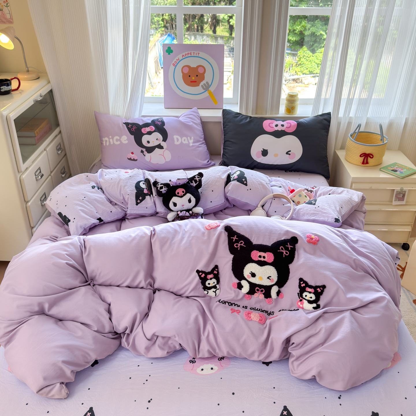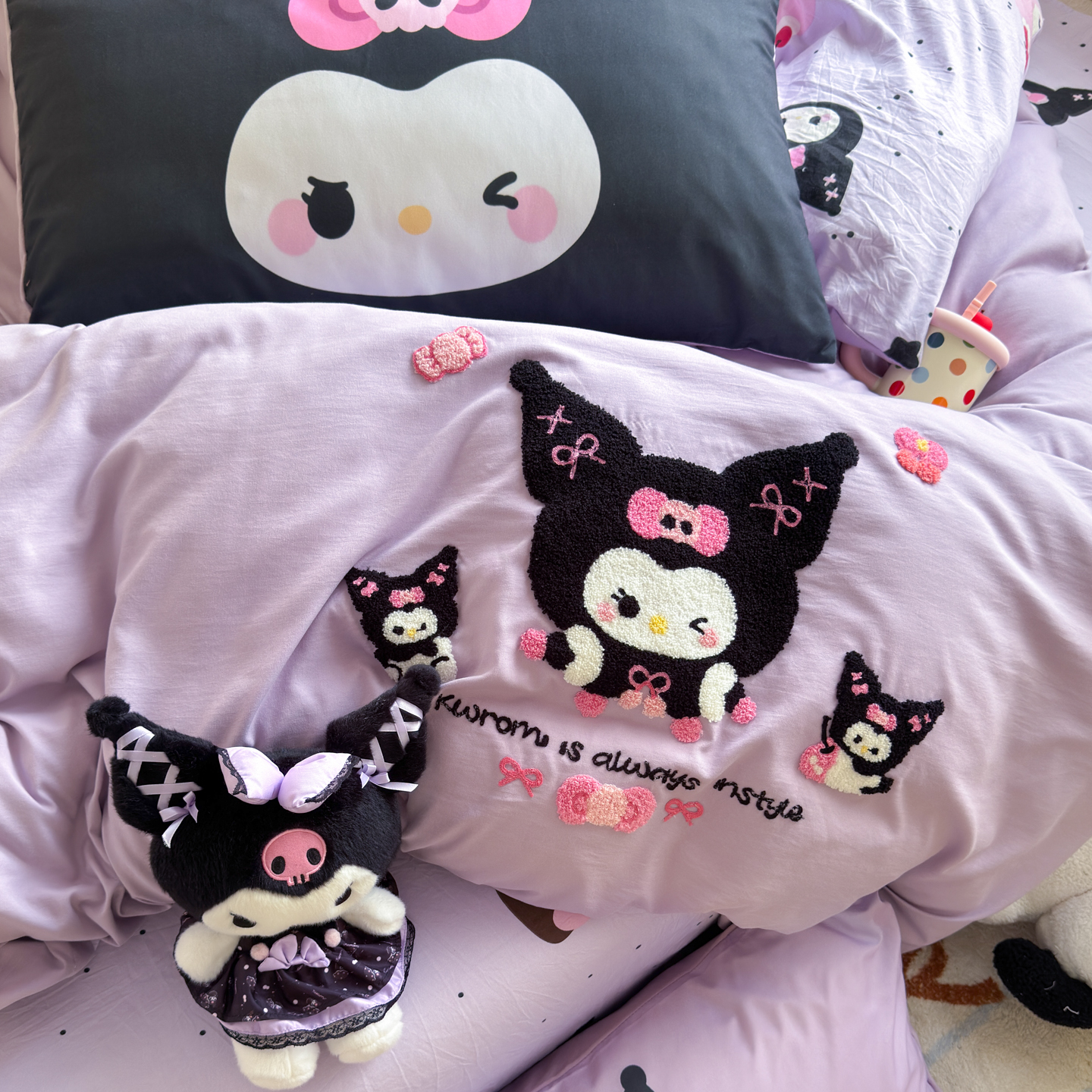 当前位置: 91家纺网 > 商品网购 > 床品套件 > 四件套 > 毛巾绣四件套 > 一霖家纺 2025新款高克重云朵棉毛巾绣印绣四件套-小清新系列-第三波 黑库米米