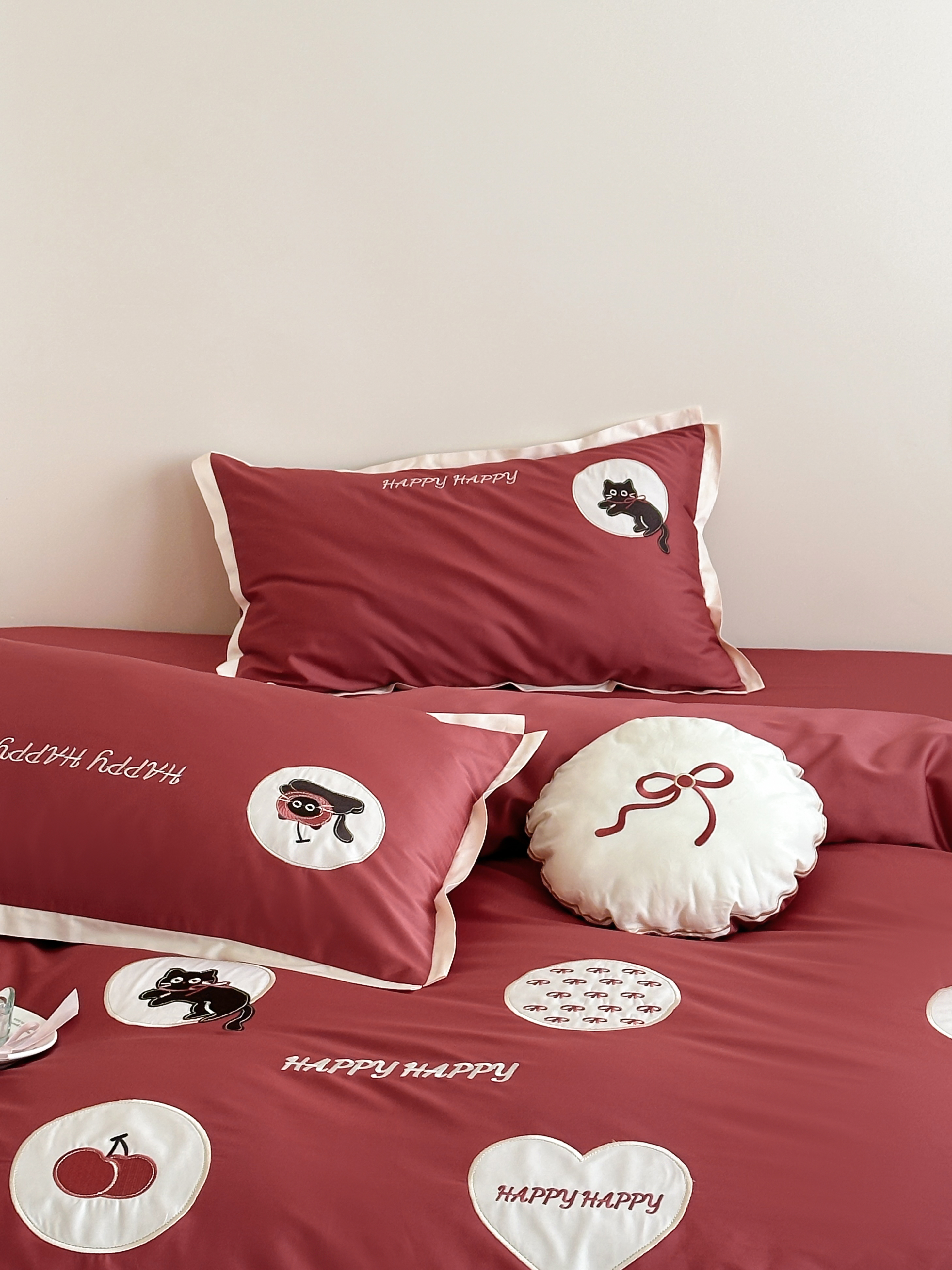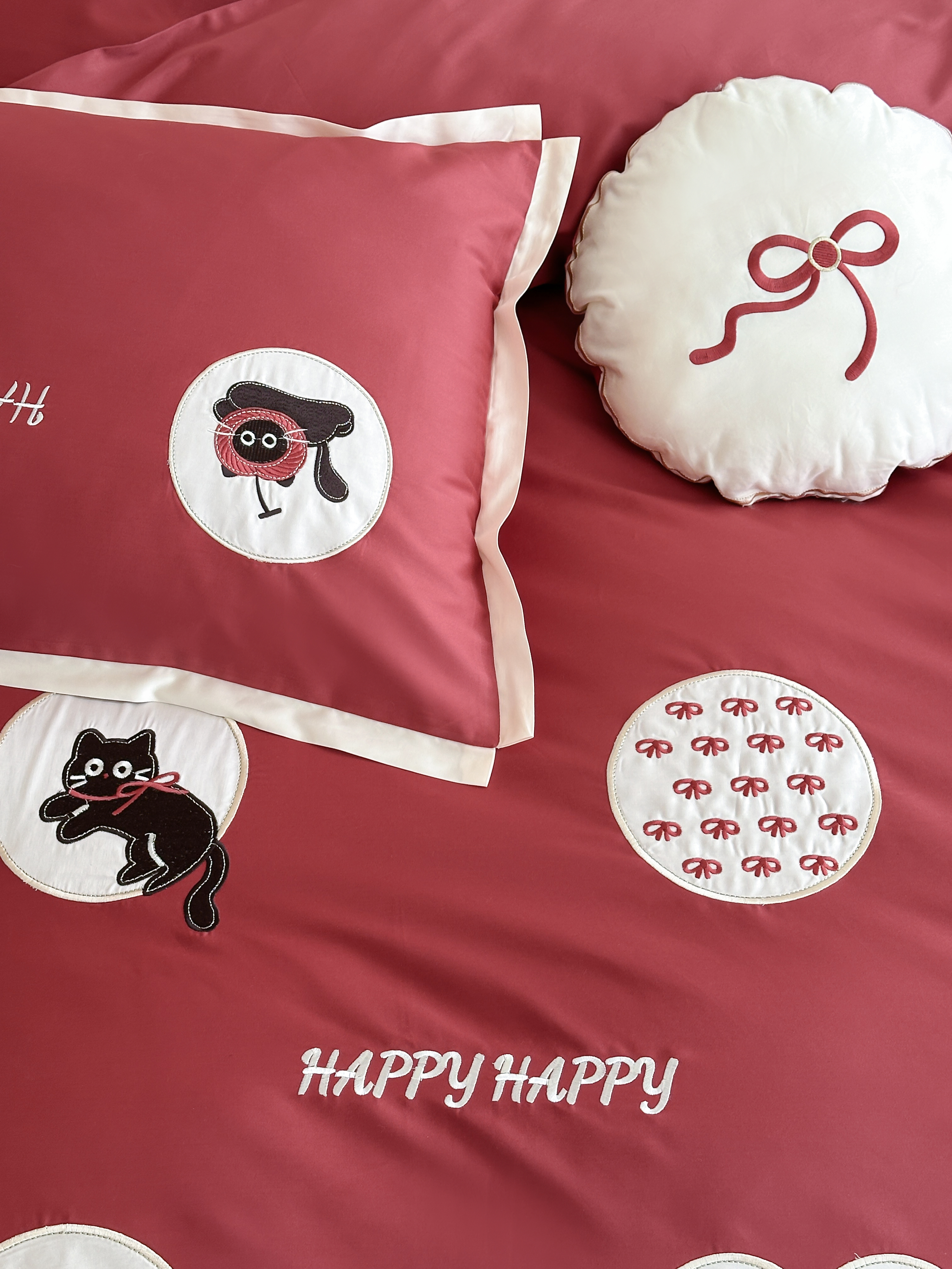 商品名称:紫桐 Lila lndus 2025新款50支双股长绒棉纯棉四件套 假日猫咪-红