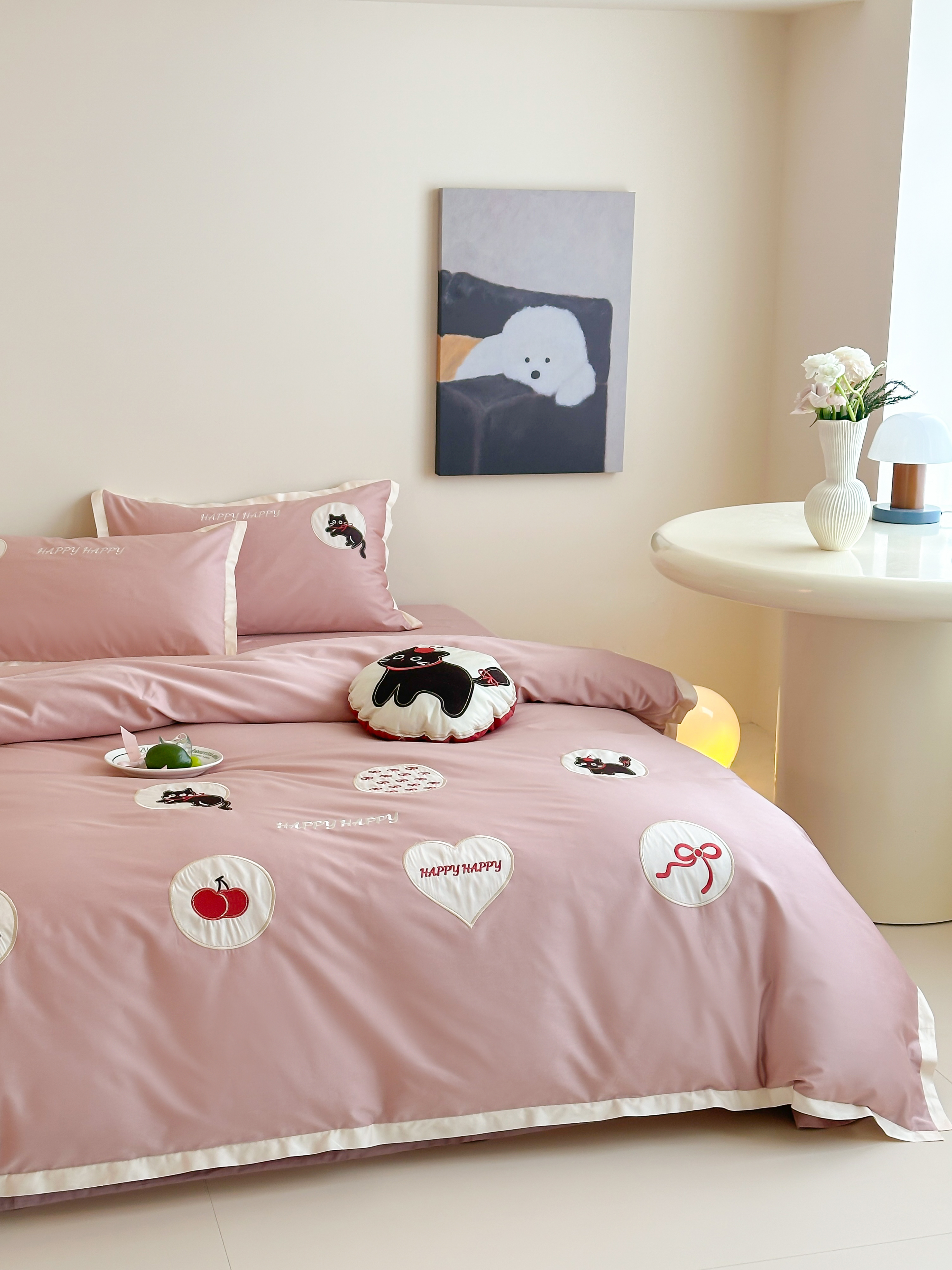 (总)紫桐 Lila lndus2025新款绣花款四件套-苹果狗,白拼粉,白拼绿
