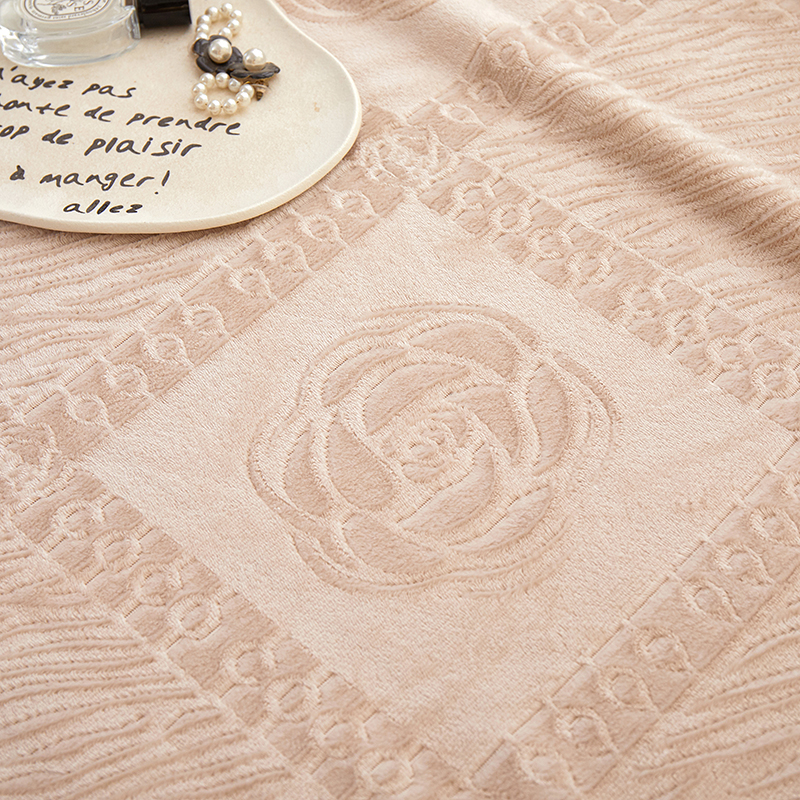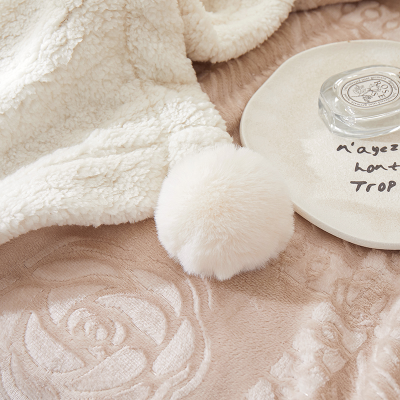 楼兰公主2025新款雪兔绒小香风提花雕花毯 山茶花奶白拼香槟