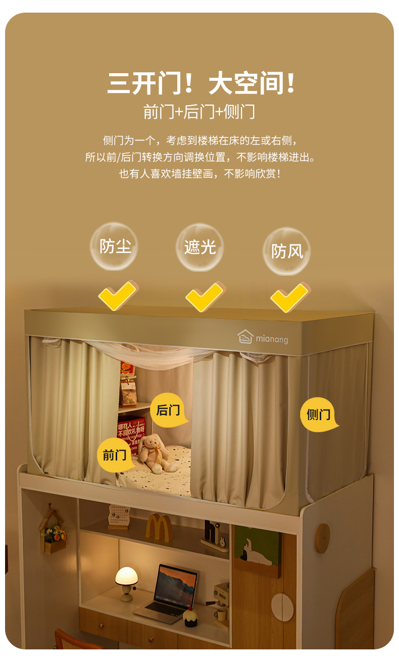 • 91家纺网 家纺一手货源 找家纺 卓尔居 2025新款学生遮光床帘蚊帐-遮光大师系列 米色