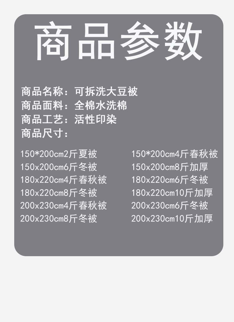 180x220cm被套+4斤大豆春秋被