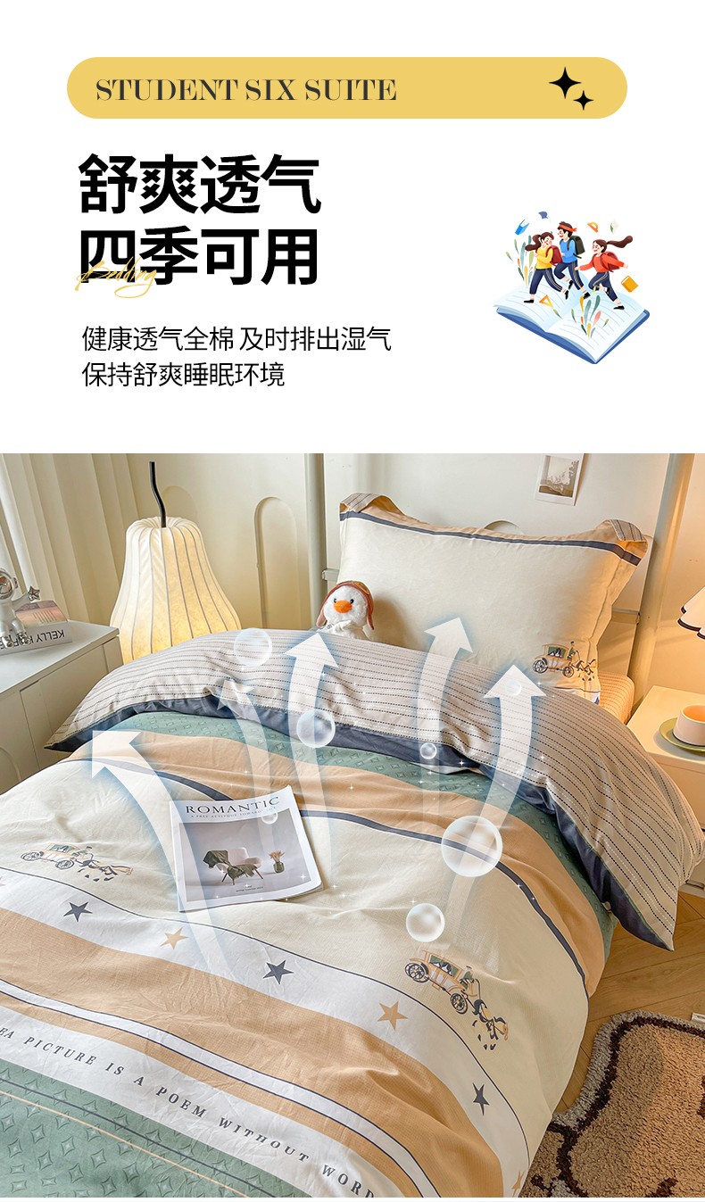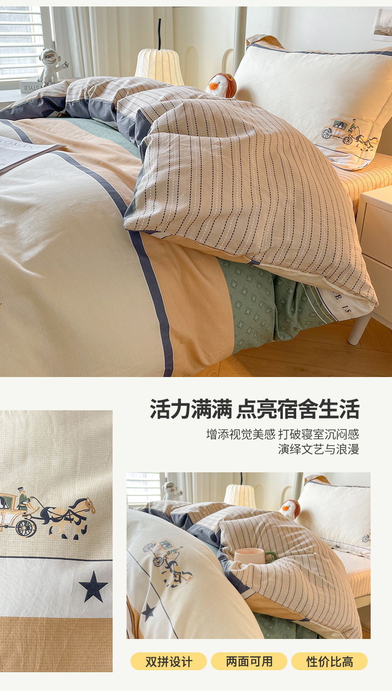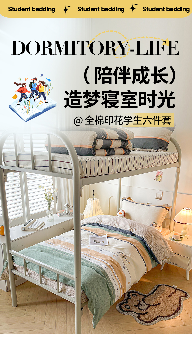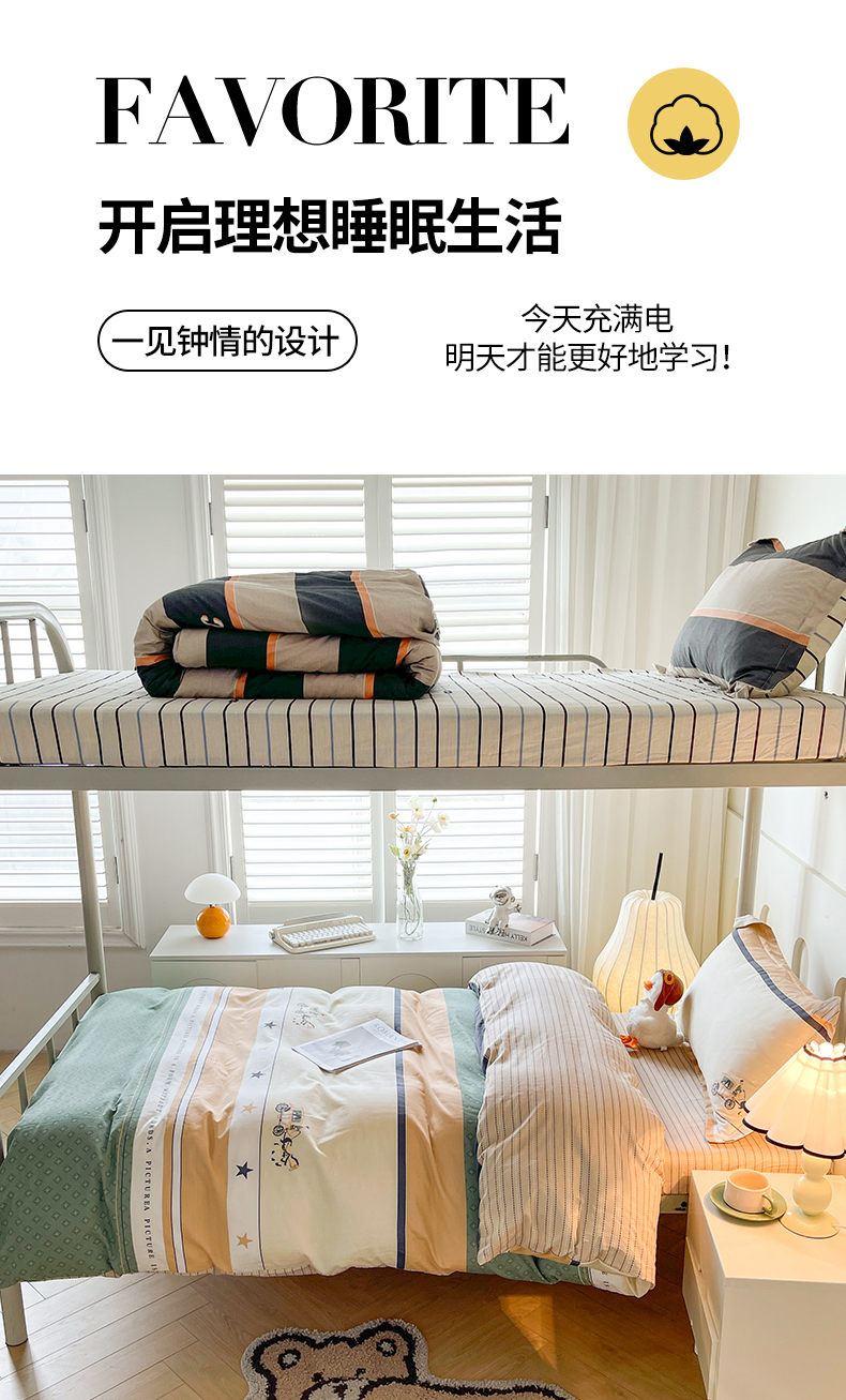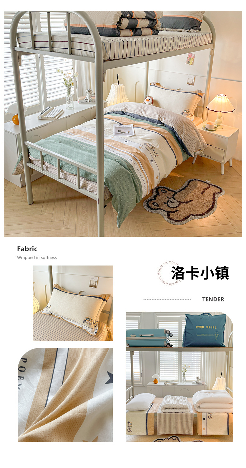 当前位置: 91家纺网 > 商品网购 > 床品套件 > 三件套 > 慕木家纺 2025新款12868全棉印花学生上下铺三件套大礼包系列 洛卡小镇