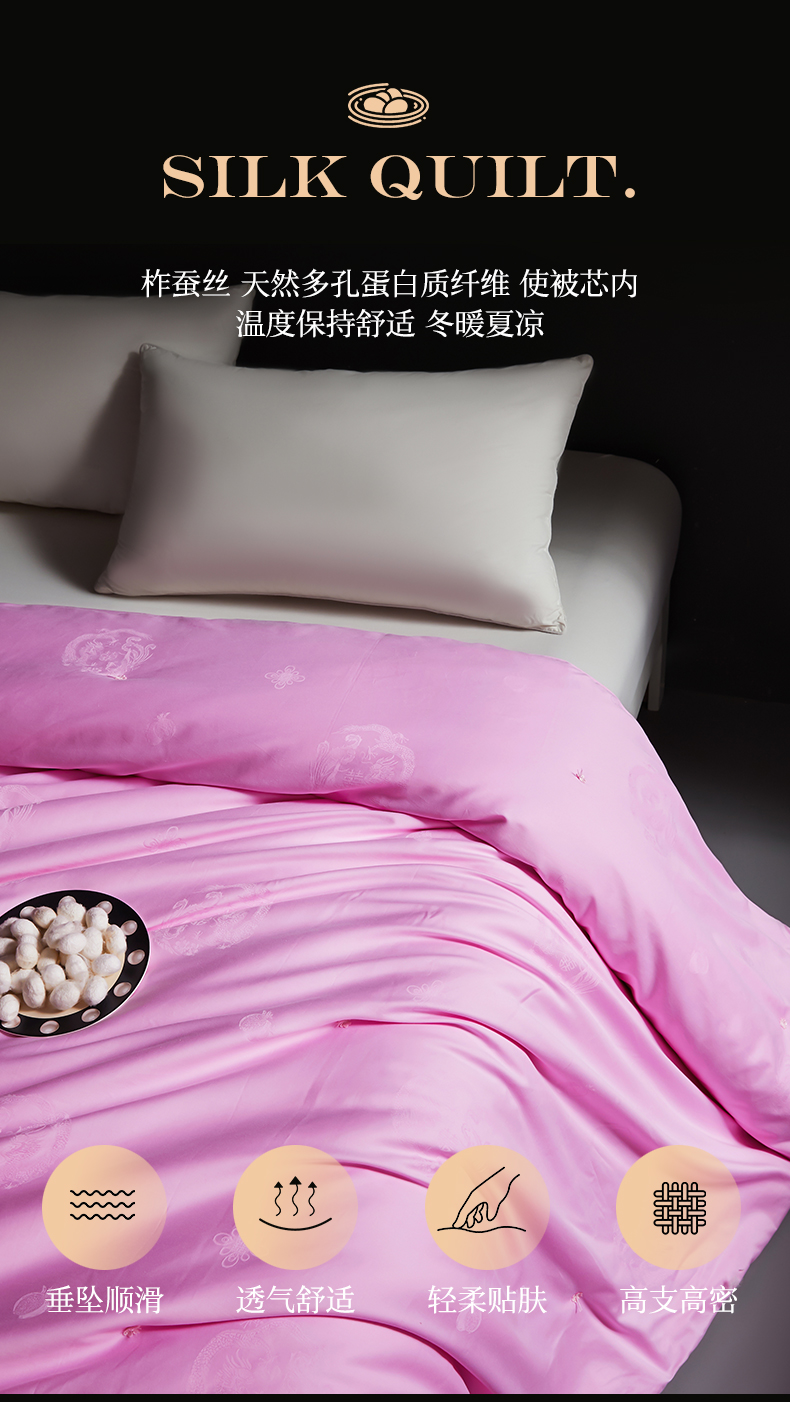 • 91家纺网 家纺一手货源 找家纺 (总)金同成家纺 2025新款100%纯桑蚕丝被纯棉春秋冬季婚庆子母被喜被,丁香玉,静雅灰,蜜糖粉,香槟金,雪莹白,喜庆红