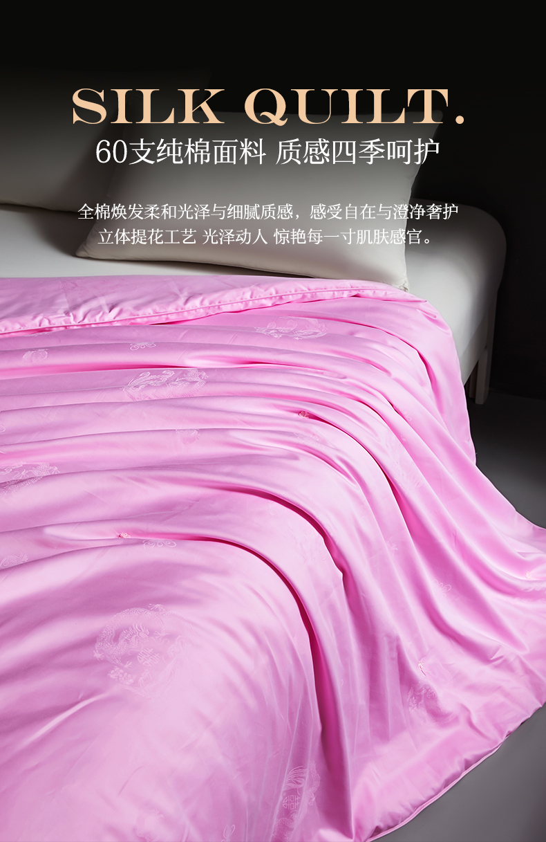 • 91家纺网 家纺一手货源 找家纺 金同成 2025新款婚庆被冬被子母被春秋被四季被60支全棉龙凤喜字提花蚕丝被 蜜糖粉