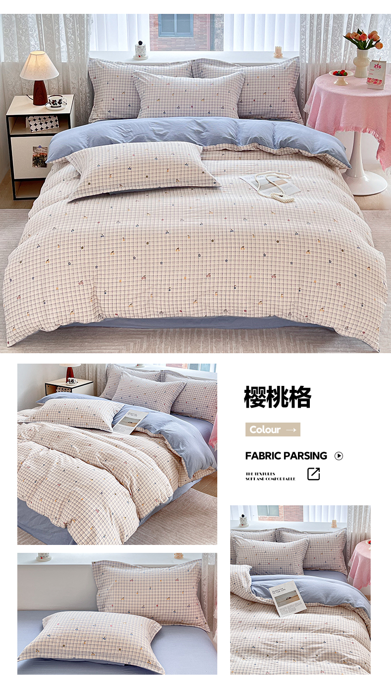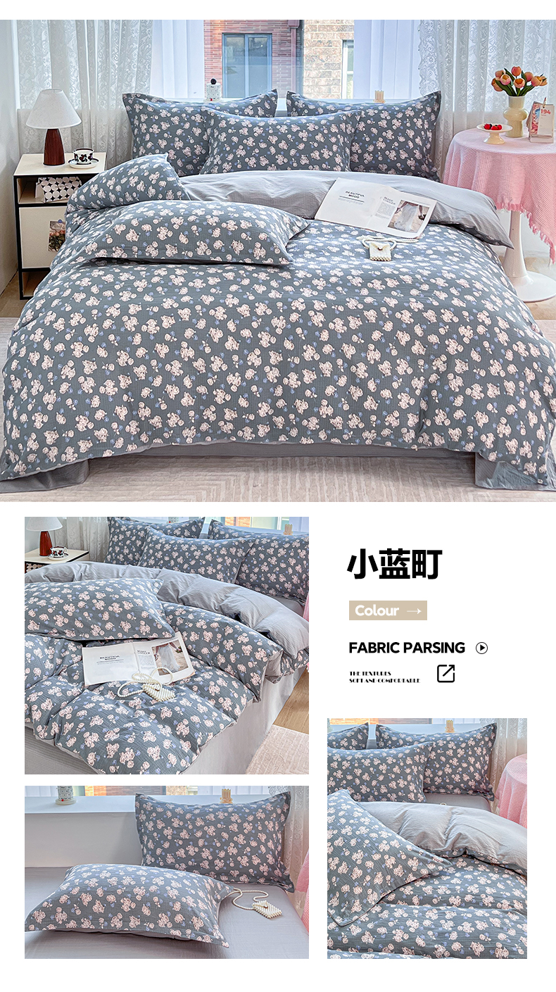 (总)麦田家纺 2025新款A类云感木棉皱皱双层纱印花四件套,春意浓,繁花,花颜,简意,开心小熊,腊肠犬,浪漫花语,免挽星辰,甜心格,小蓝町,樱桃格,紫韵