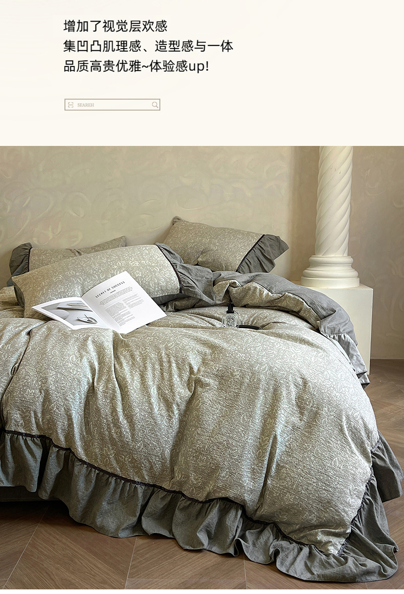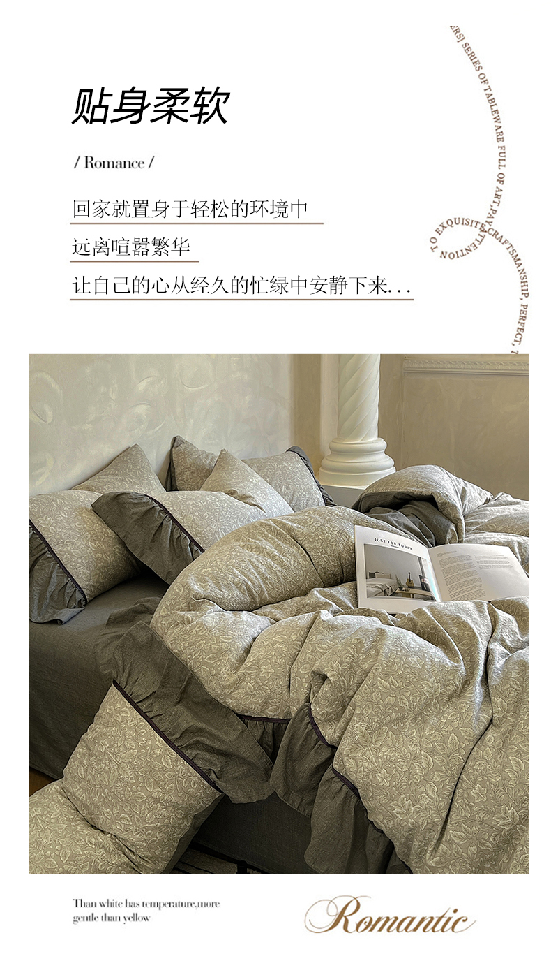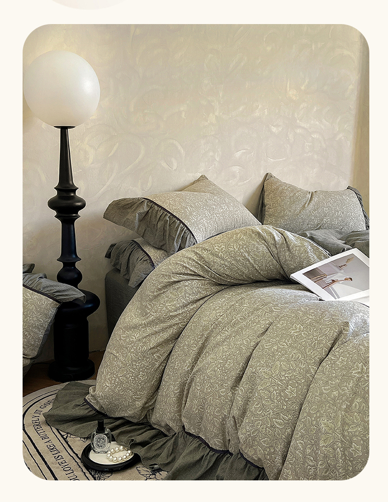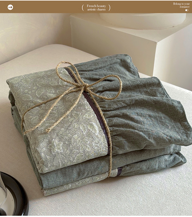 当前位置: 91家纺网 > 商品网购 > 床品套件 > 四件套 > 其它四件套 > 春光里 2025新款高克重亚麻皱皱纱四件套 青隐
