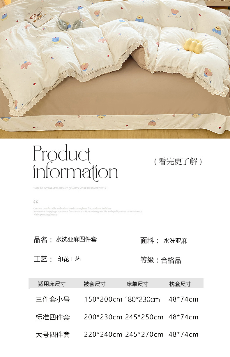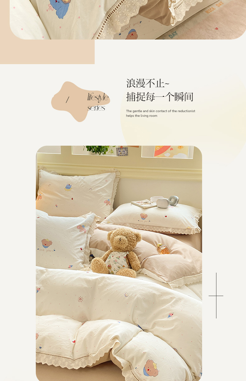 商品名称:大麦家纺 25年新款高克重印花水洗棉花边四件套 晚安小眠