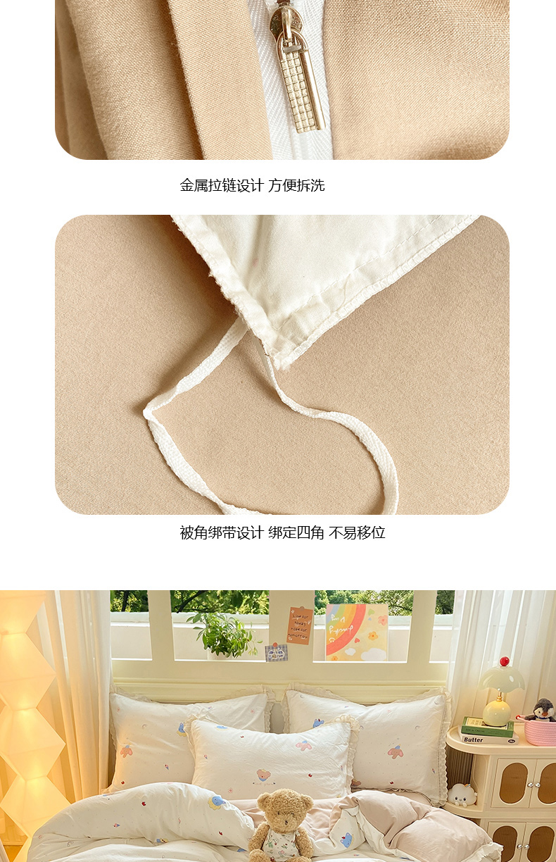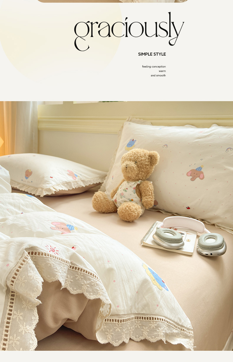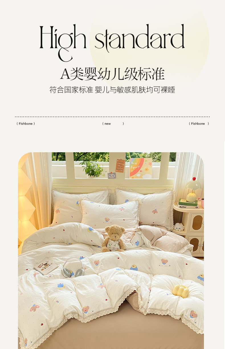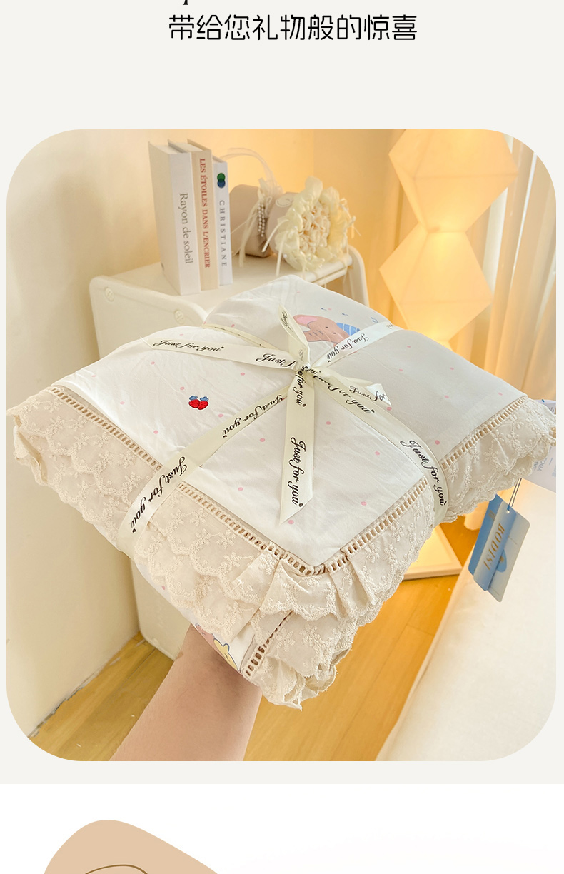大麦家纺 25年新款高克重印花水洗棉花边四件套 晚安小眠