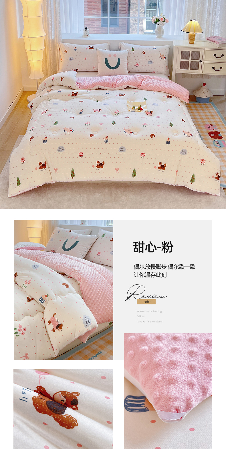 • 91家纺网 家纺一手货源 找家纺 天瑜家纺 2025新款针织棉豆豆绒大豆被冬被被子被芯 豚豚米