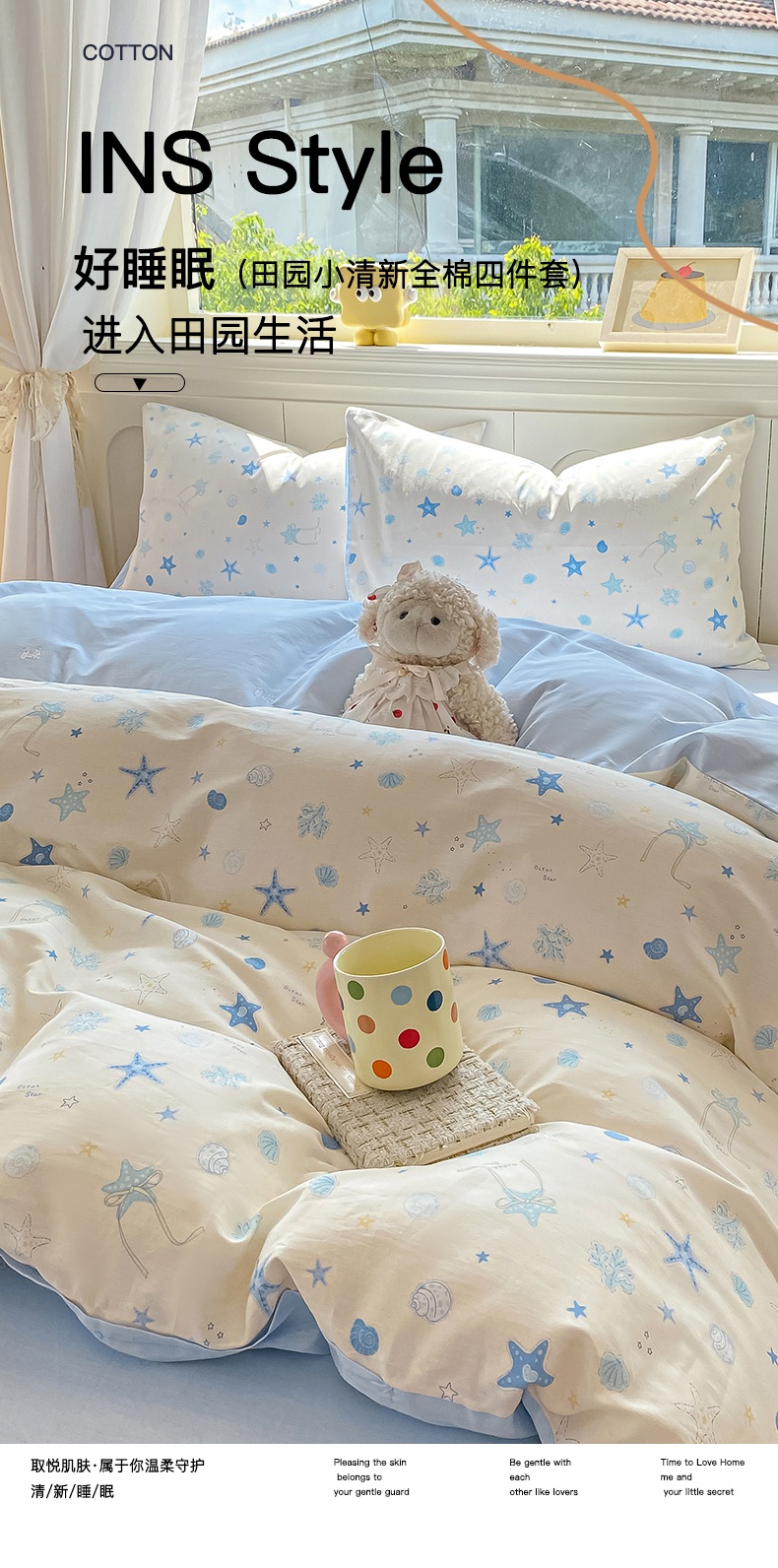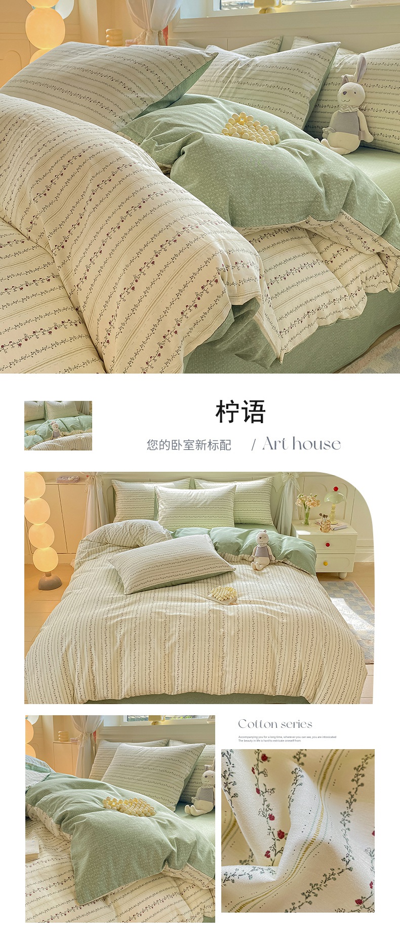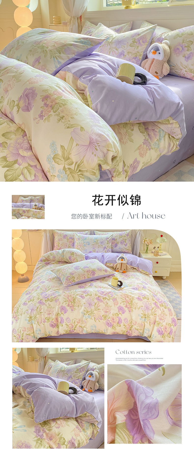 商品名称:黑马家居 2025新款13070全棉田园小清新四件套系列 花漾