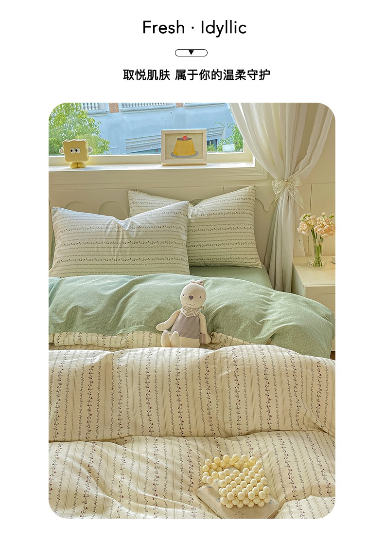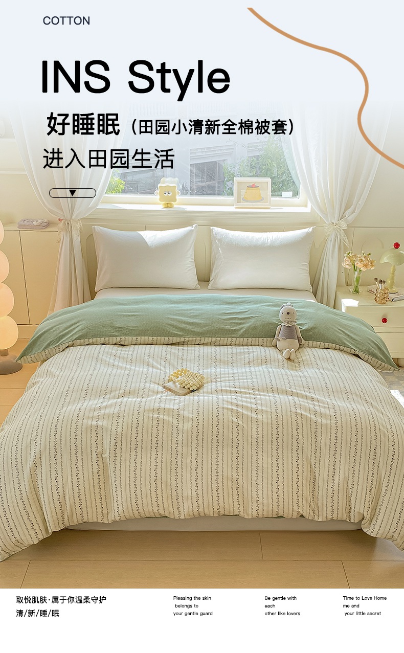 商品名称:黑马家居 2025新款13070全棉田园小清新单品被套系列 柠语