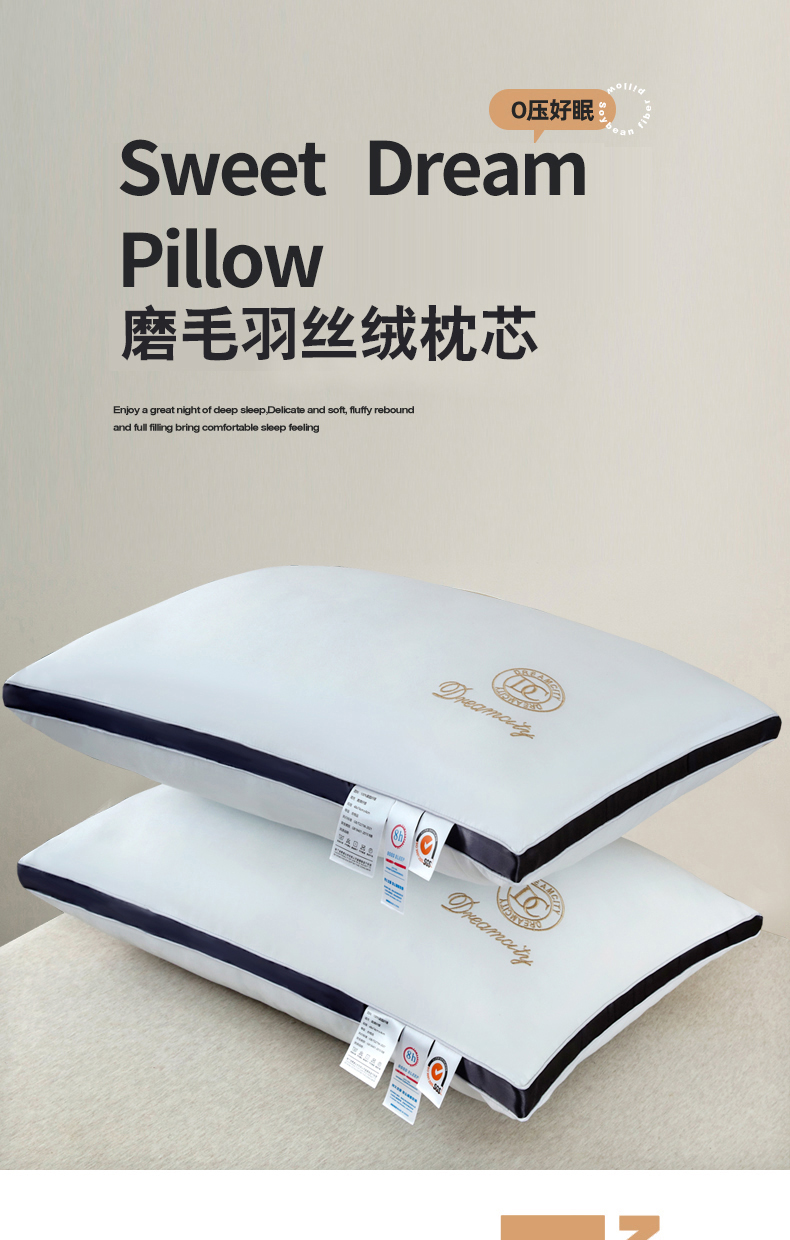 商品名称:永乐枕芯 2025新款DC磨毛羽丝绒枕枕头枕芯 咖啡金0.85kg