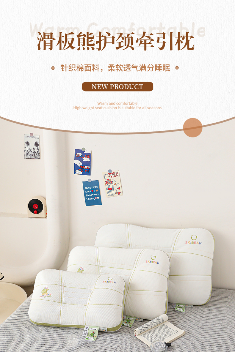 商品名称:晚儿 2025新款滑板熊护颈枕头枕芯 滑板熊-粉