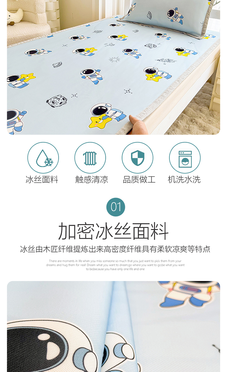 当前位置: 91家纺网 > 商品网购 > 床上用品 > 凉席 > 冰丝席 > 萌宝家纺 2025新款小清新卡通学生宿舍凉席幼儿园小学生冰丝席冰藤软席 太空漫步