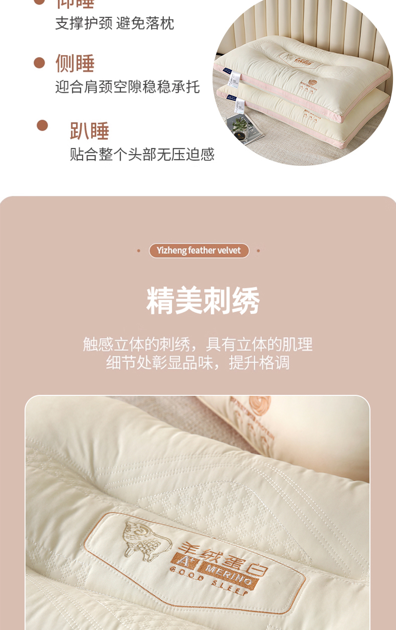 商品名称:永乐枕芯 2025新款羊绒蛋白枕枕头枕芯 粉色