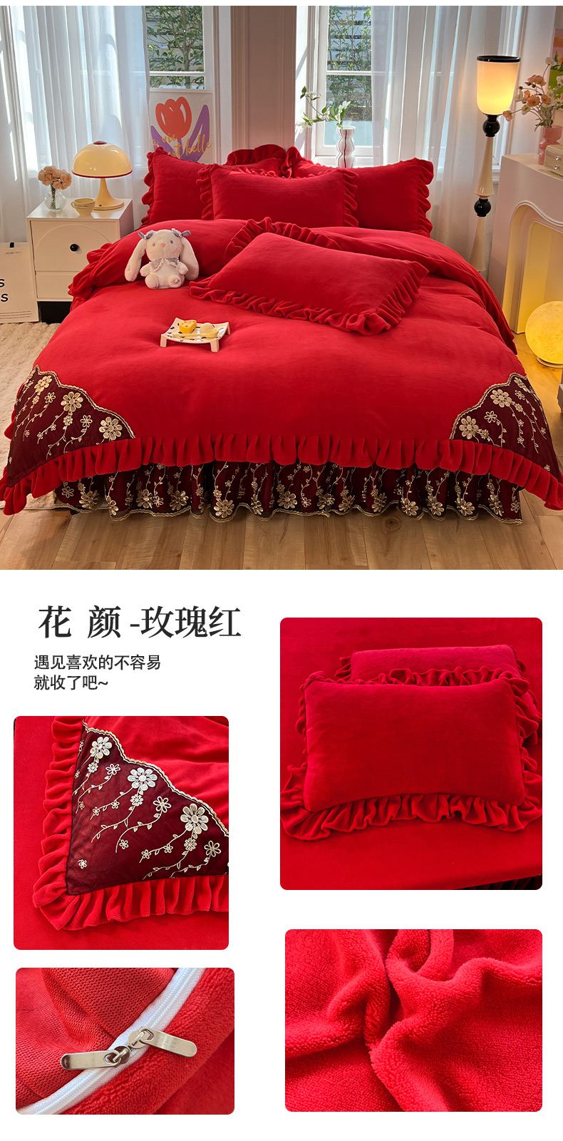 商品名称:唐人居 2025新款加厚牛奶绒床裙款四件套--花颜系列 花颜-奶黄