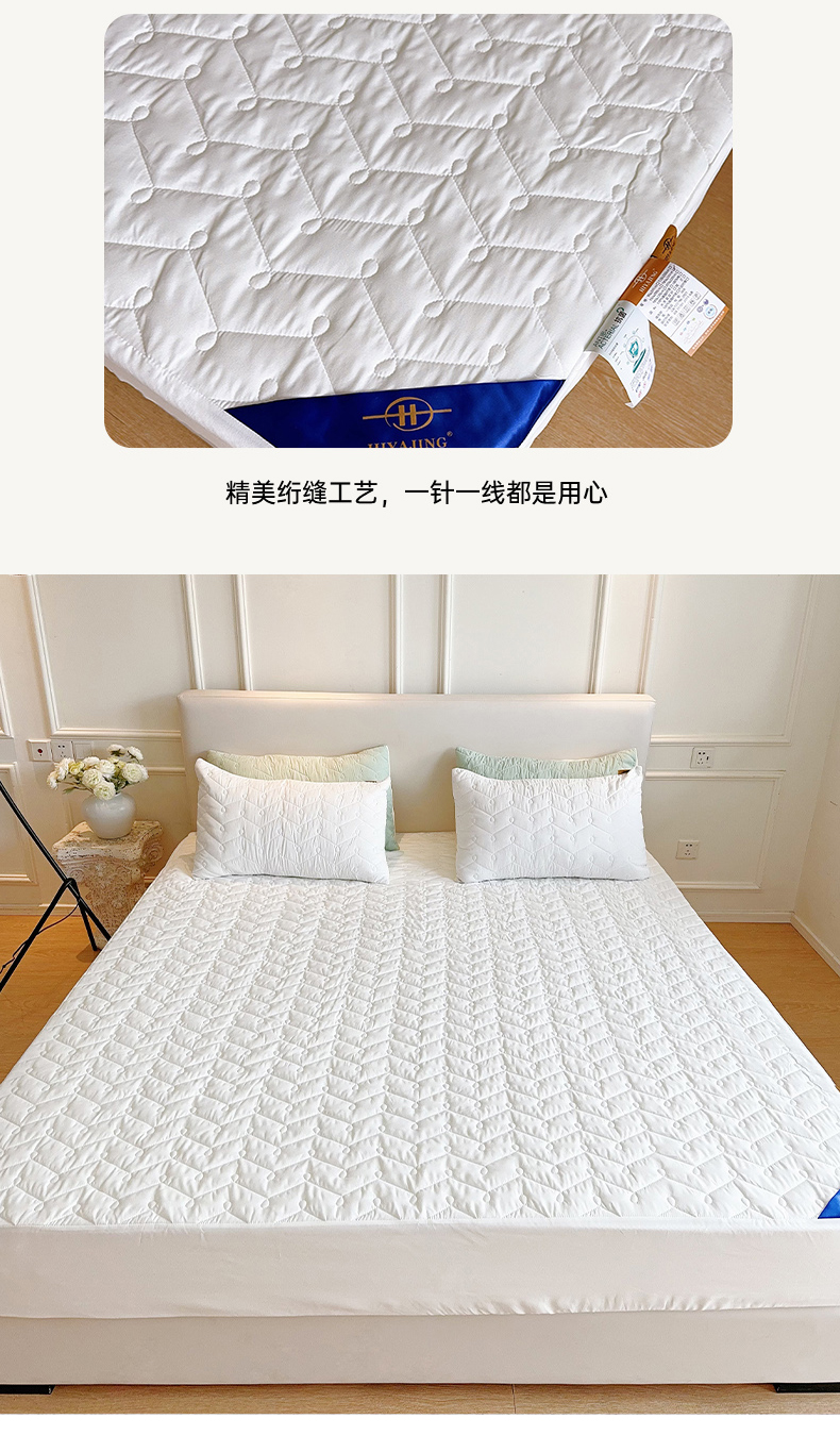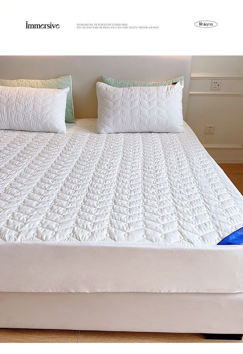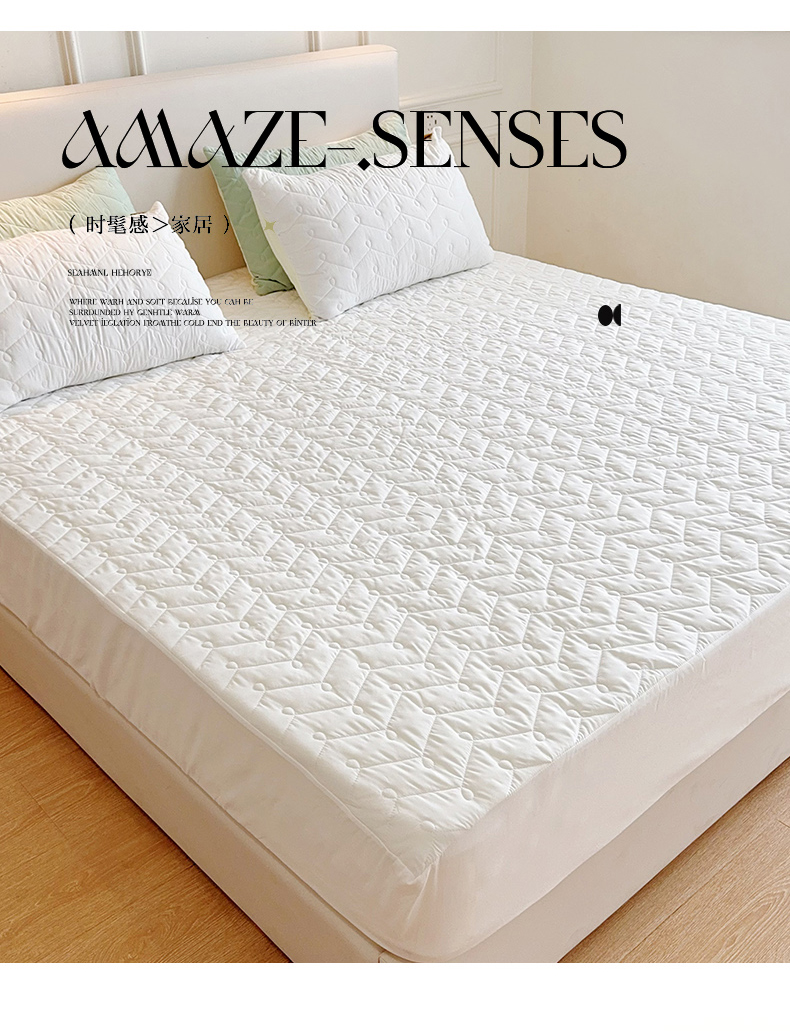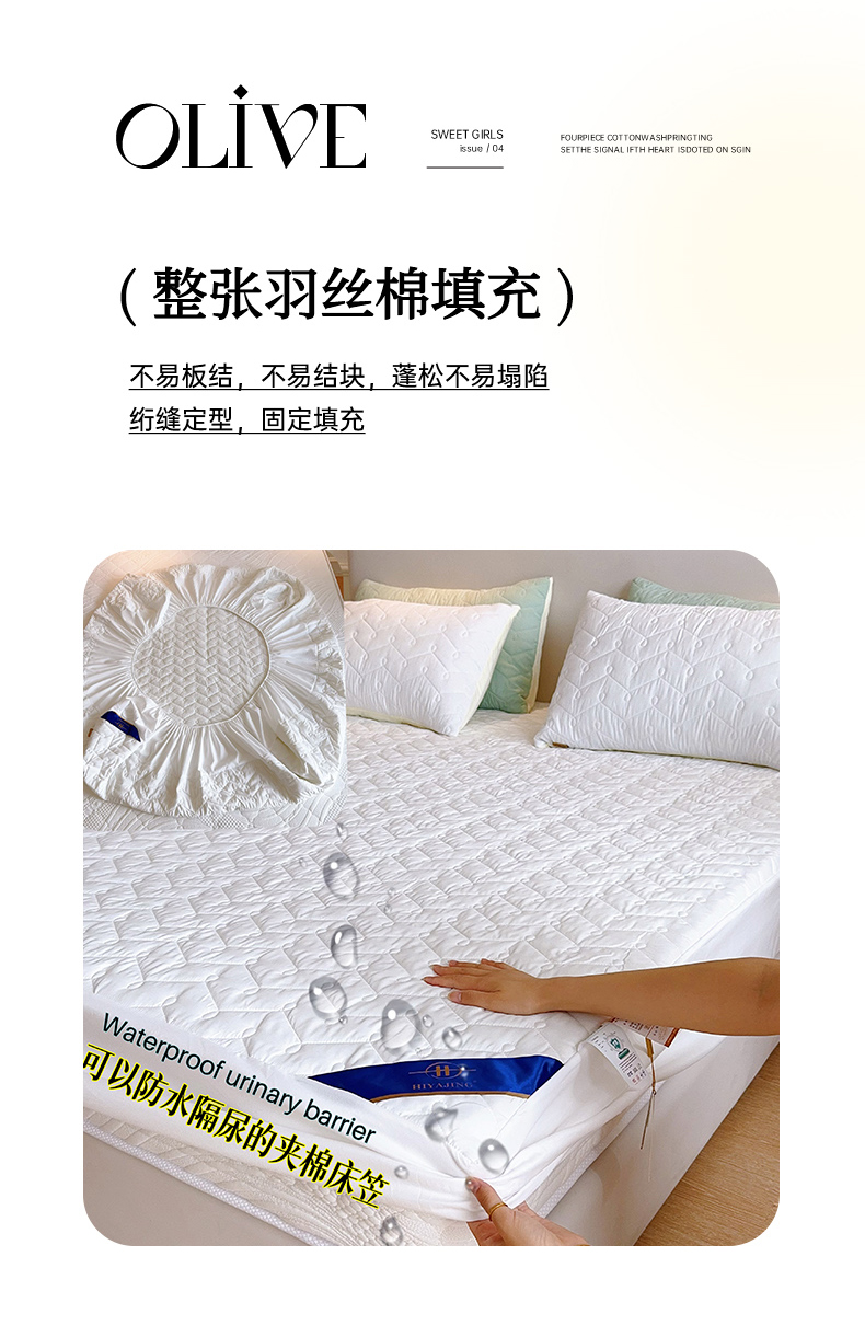 兜米2025新品供跨境外贸A类防水隔尿夹棉床笠加厚席梦思床垫保护罩 本白