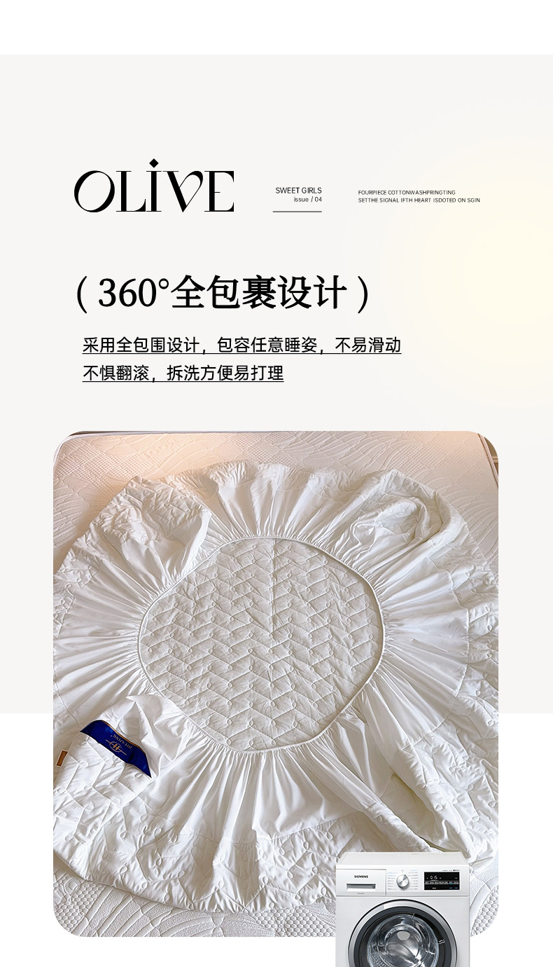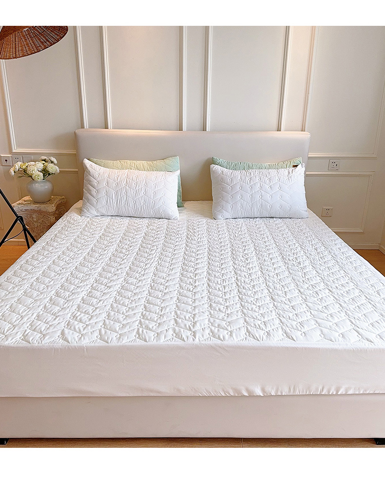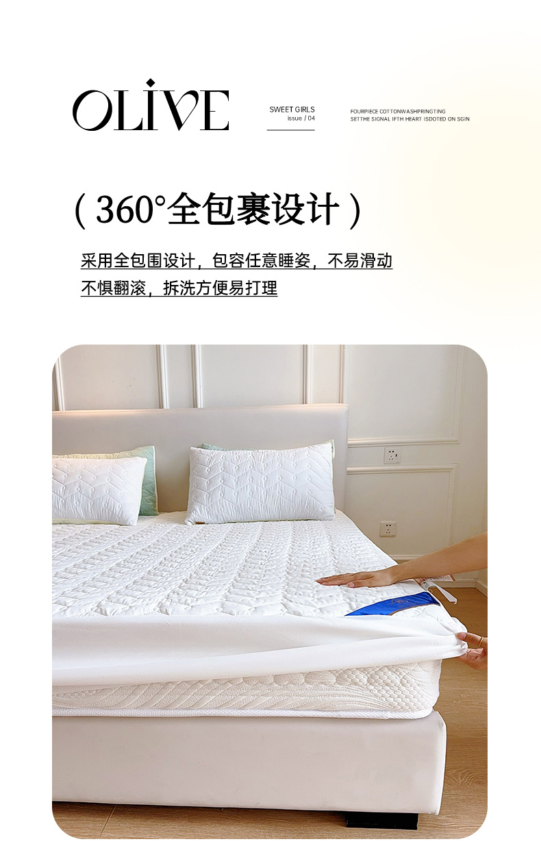 兜米2025新品供跨境外贸A类防水隔尿夹棉床笠加厚席梦思床垫保护罩 本白