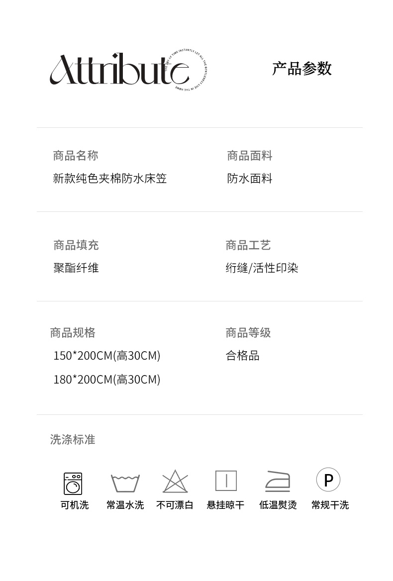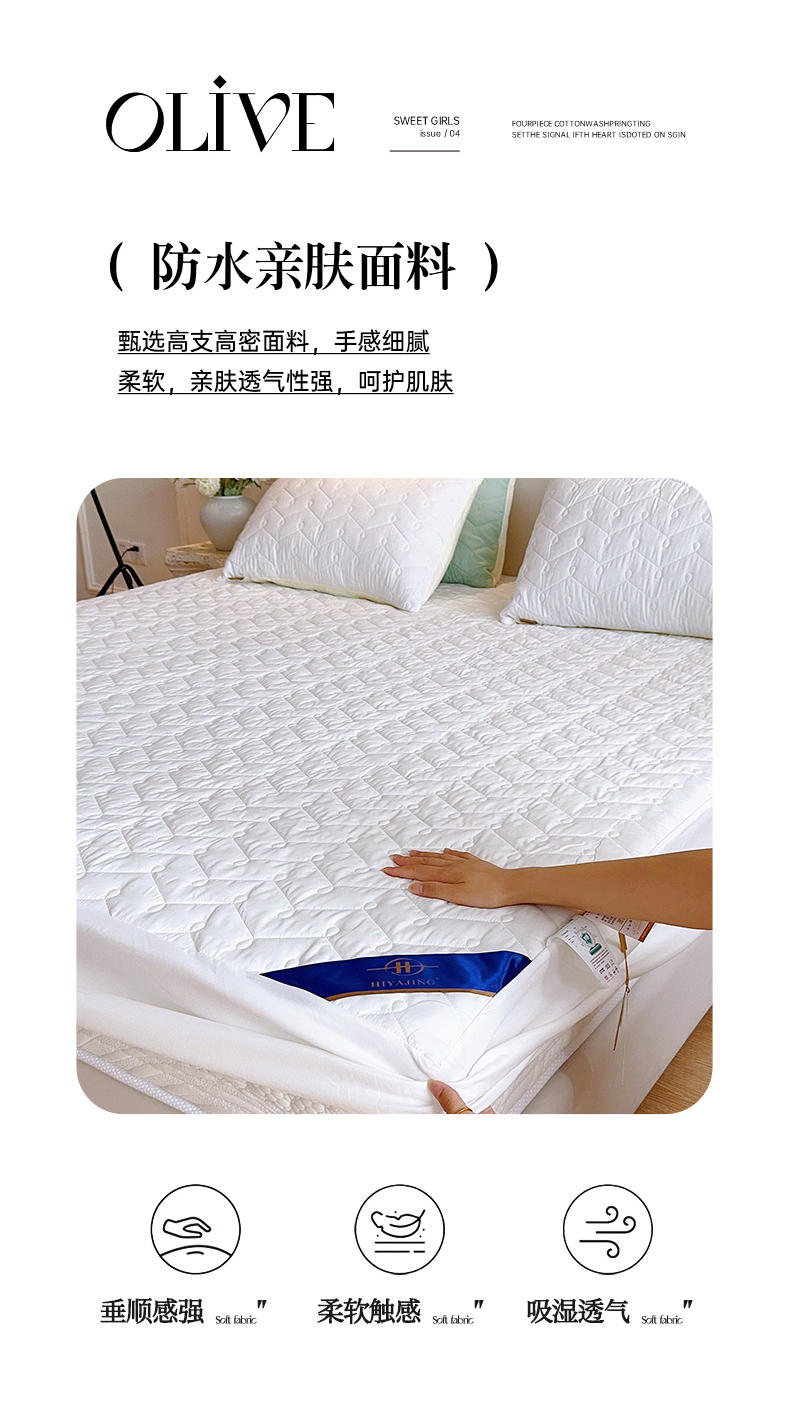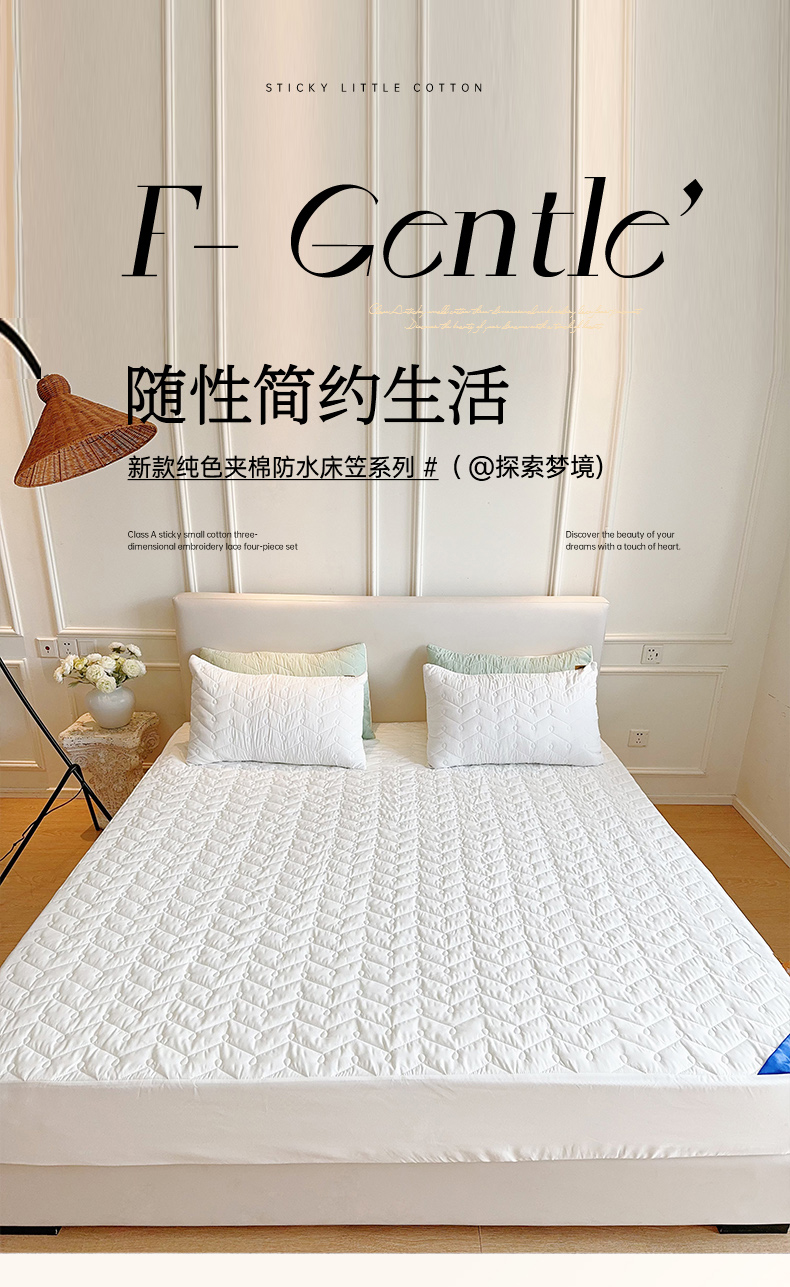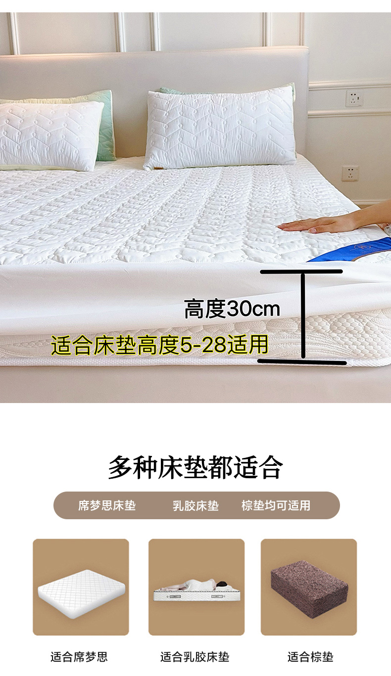 商品名称:兜米2025新品供跨境外贸A类防水隔尿夹棉床笠加厚席梦思床垫保护罩 本白
