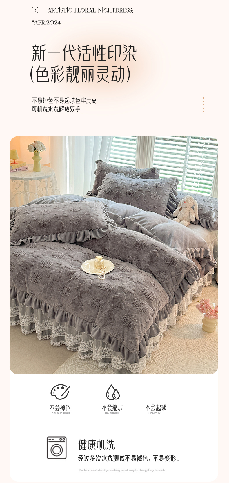 (总)唐人居 2026春夏新款皱皱水洗棉花边床盖四件套,安妮,半亩花田,宝格丽曼,彩色波点,初见,繁花,芬德拉,花影,卡地,玫瑰园,柔心花影,幸运小马,音乐派对,音乐企鹅