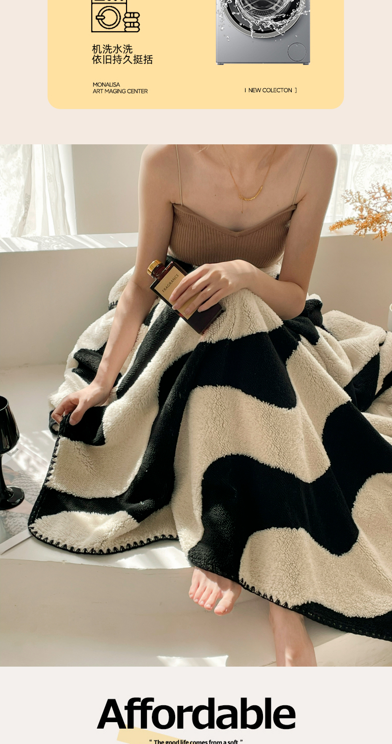 (总)晚爱家纺(原晚安家居) 2025新款跨境多功能盖毯沙发毯双面印花舒棉绒毛毯,波浪纹,黑蝴蝶,蝴蝶树,节节高,山茶花,四叶草,小布布,小熊猫
