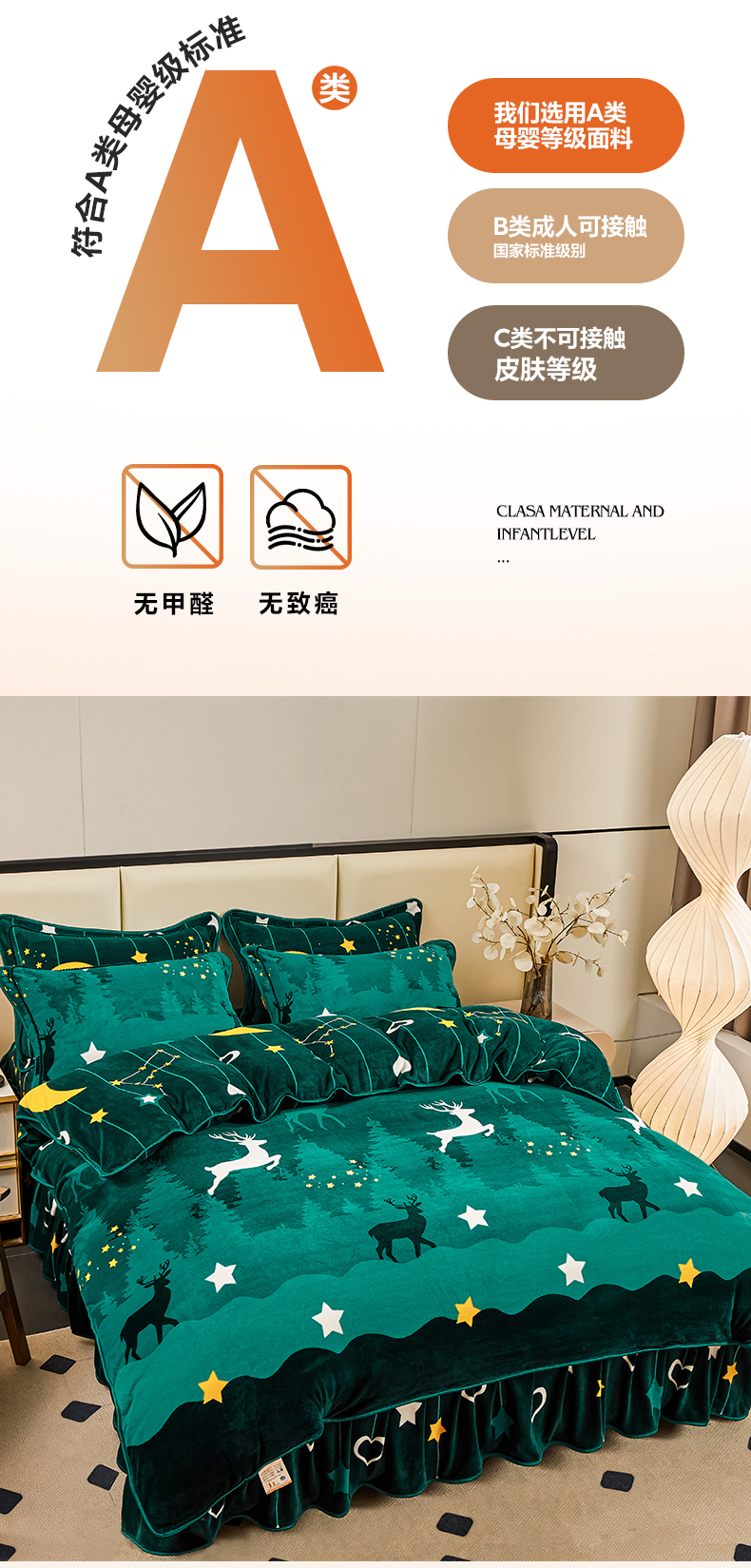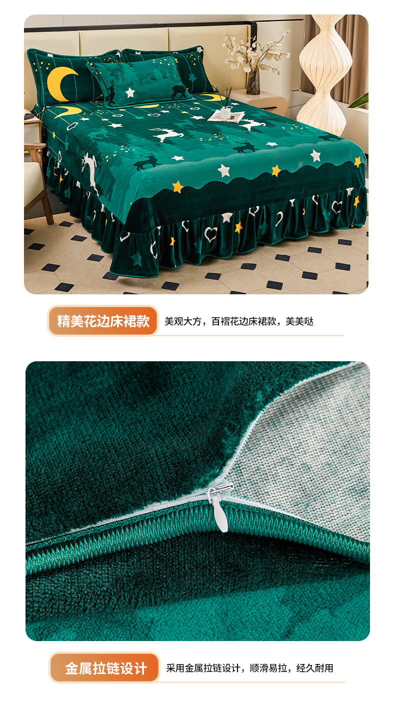 当前位置: 91家纺网 > 商品网购 > 床品套件 > 四件套 > 牛奶绒四件套 > 博兰蒂 2025新款床裙款高克重牛奶绒印花四件套 迷情鹿