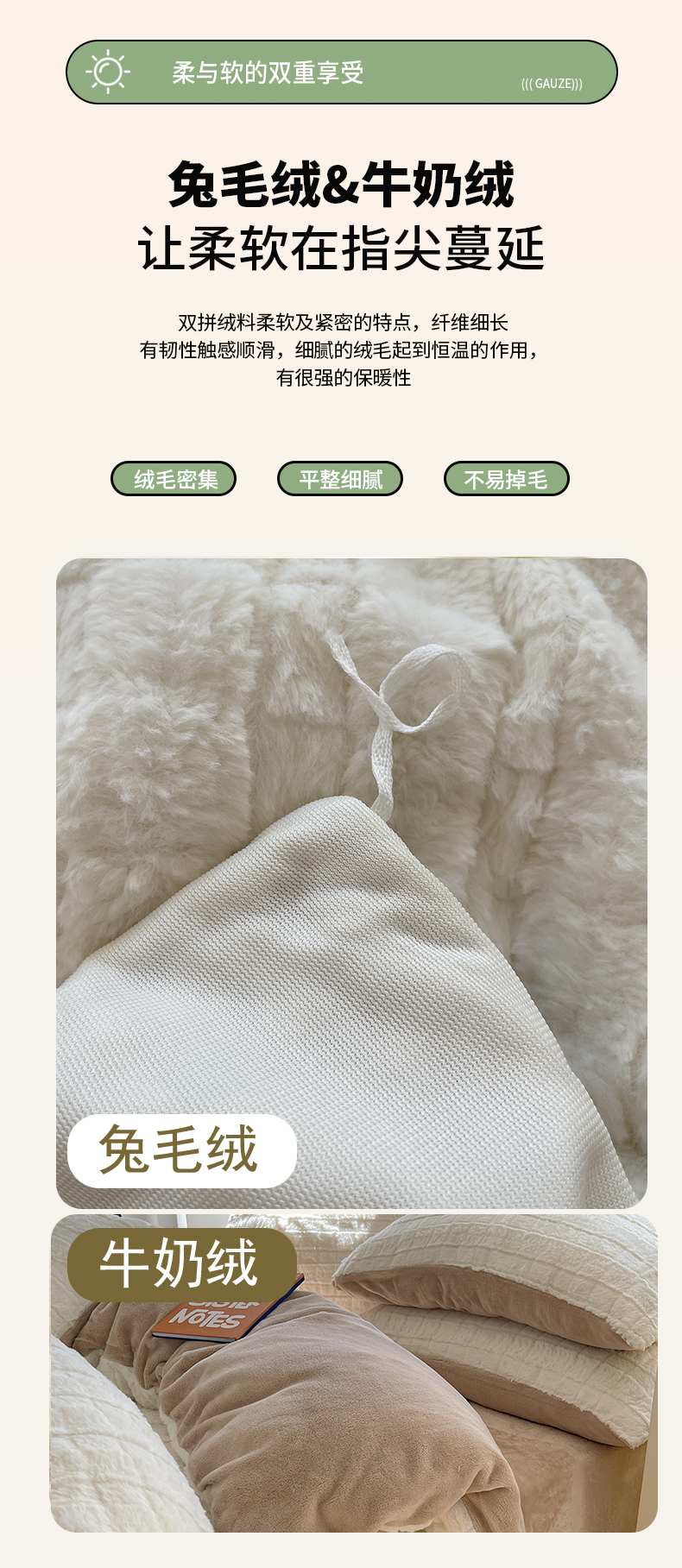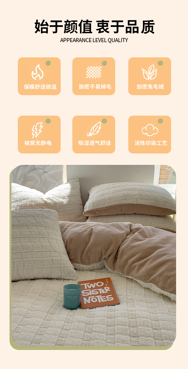 当前位置: 91家纺网 > 商品网购 > 床品套件 > 四件套 > 牛奶绒四件套 > 金爱家 2025新款全消光牛奶绒A类纯色獭兔毛绒立体牛奶绒四件套 奶白咖