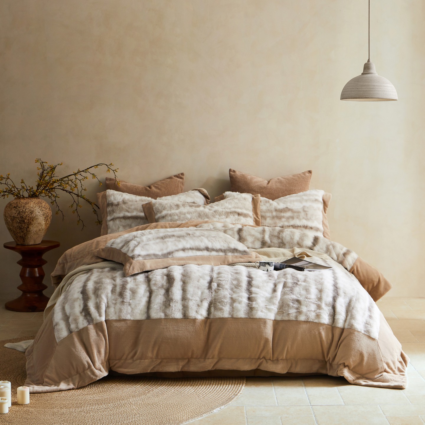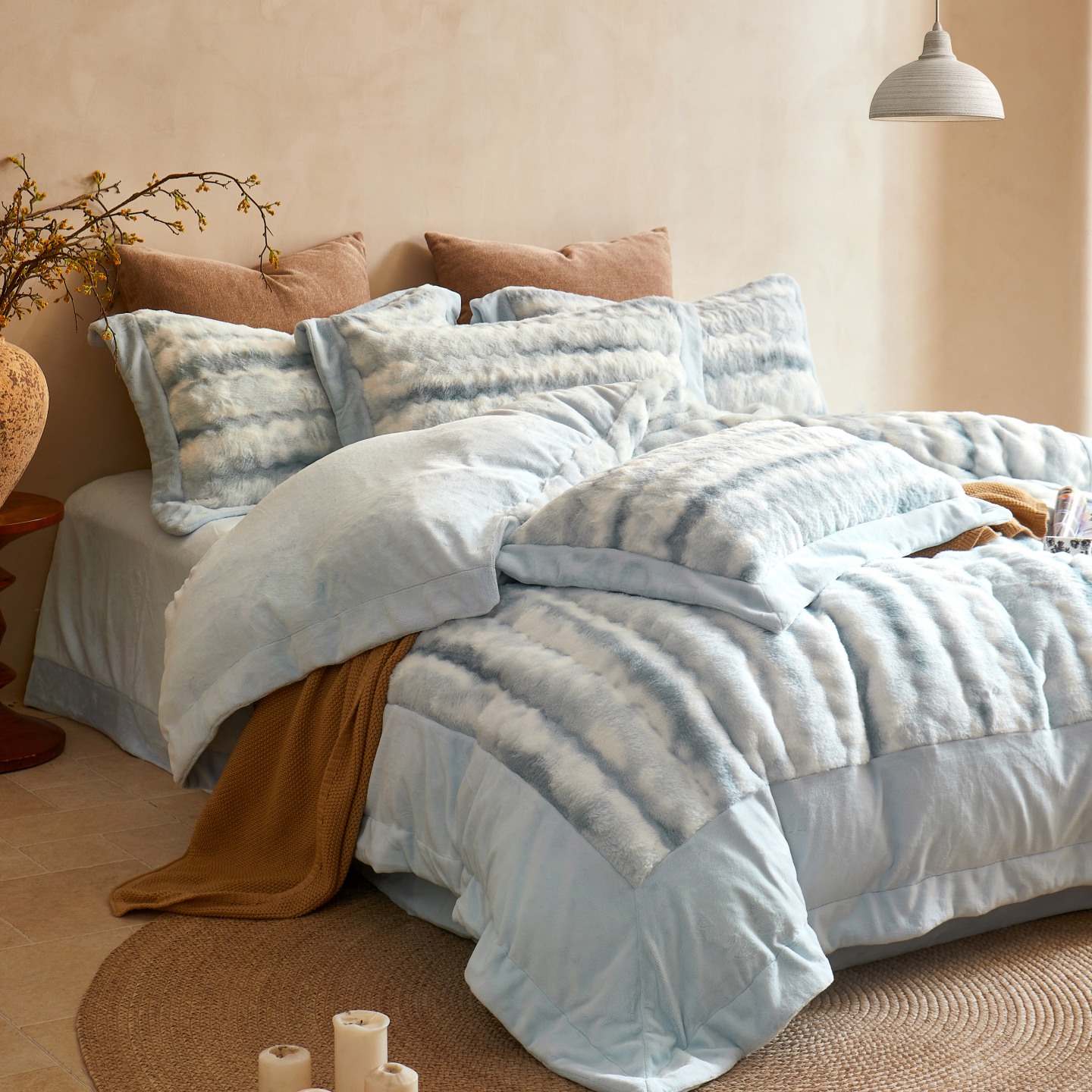 商品名称:时亿家居 2025新款360g兔毛绒拼接牛奶绒四件套系列 浅咖(拿铁咖)