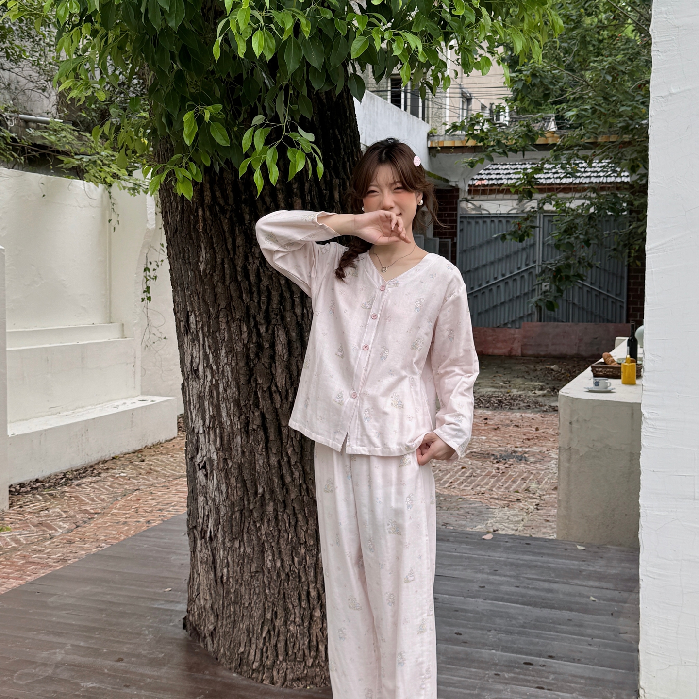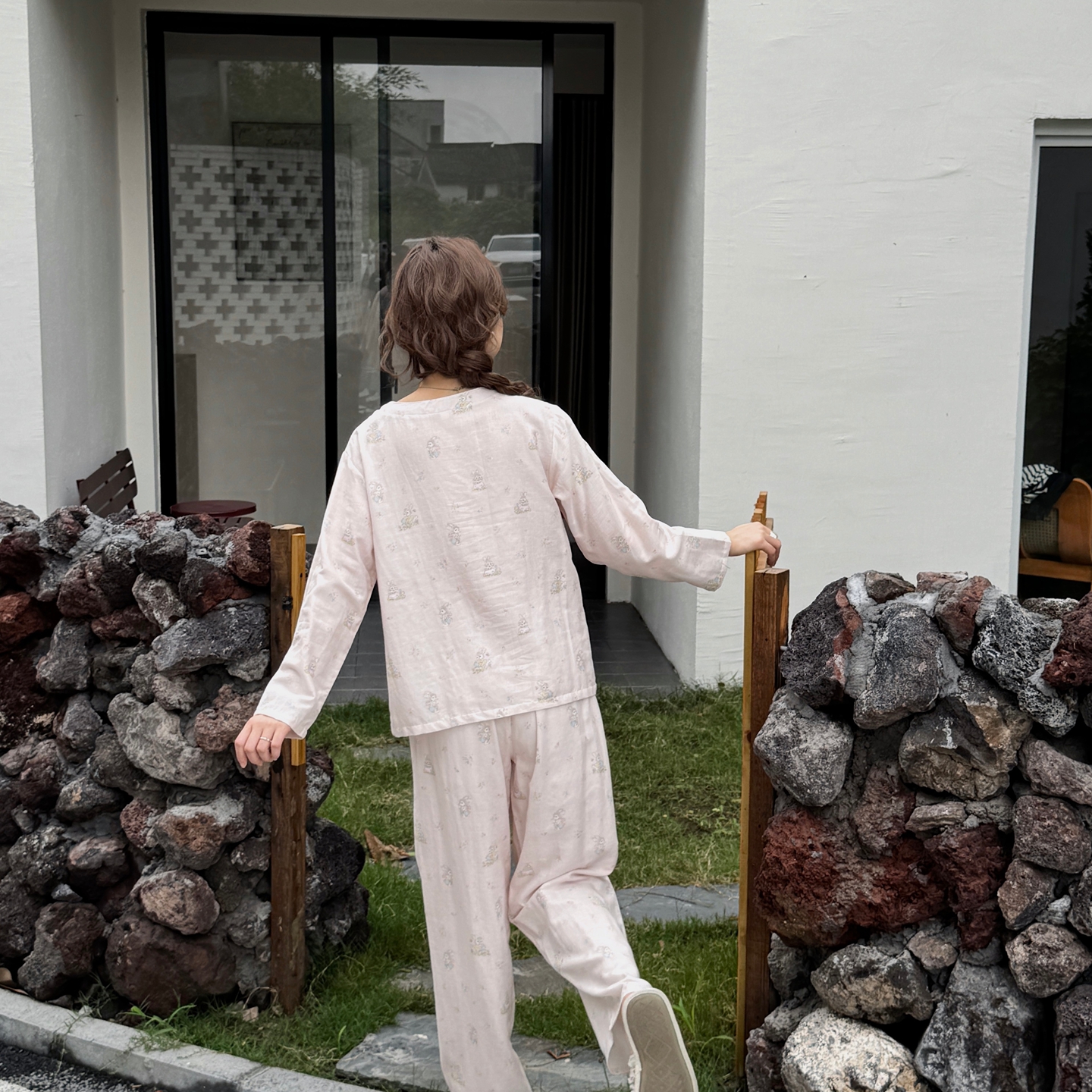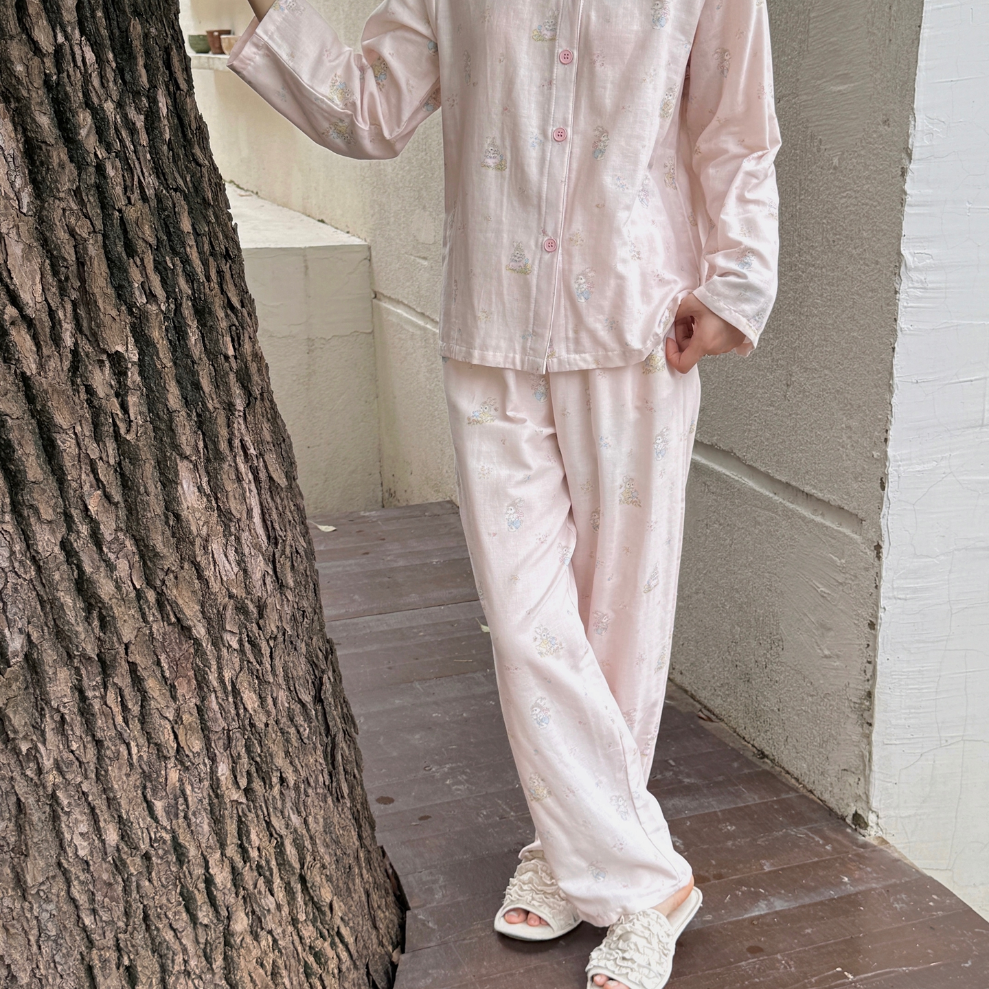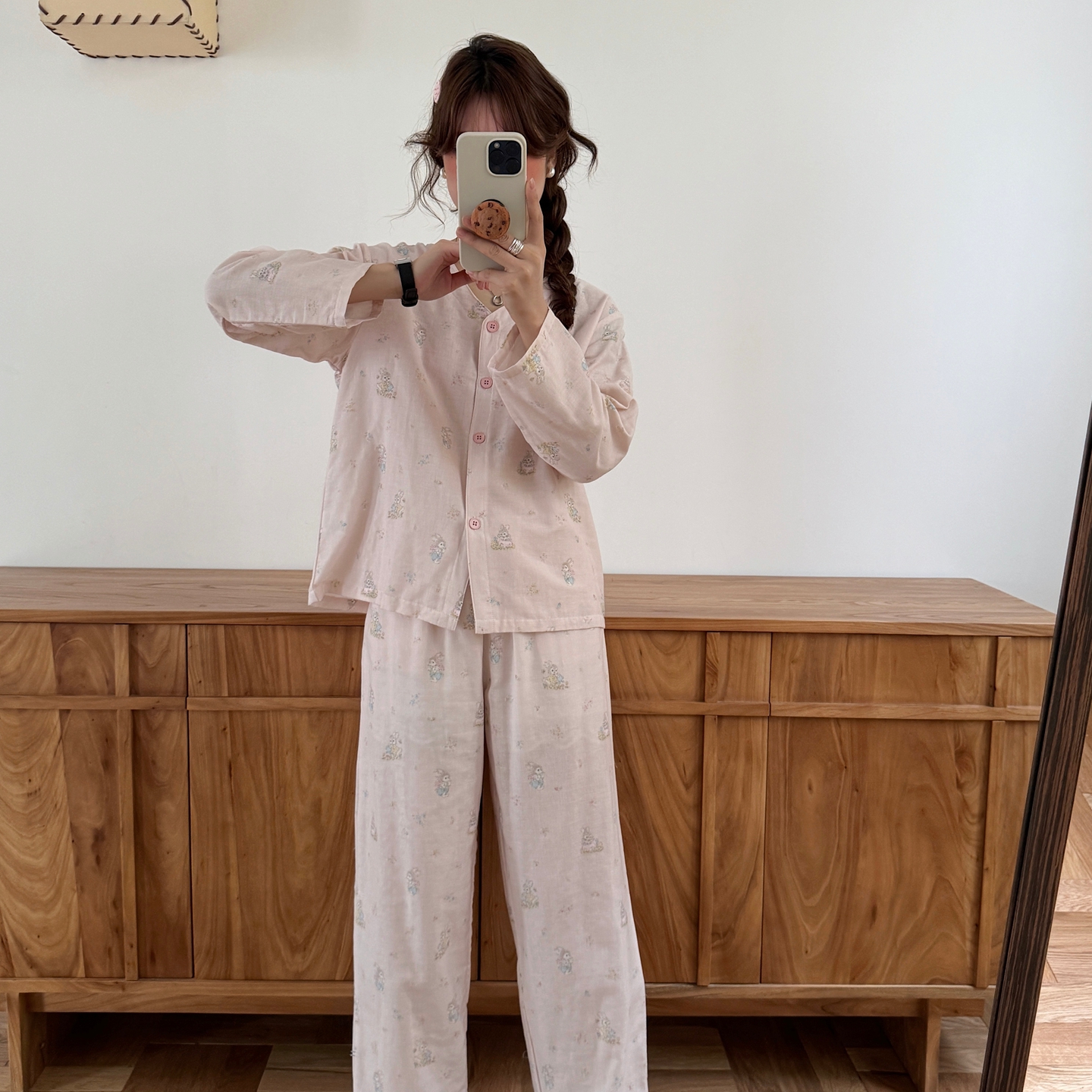 (总)纽约生活 2025新款绉布圆领开扣长袖长裤(会员-5),波比熊,黑碎花猫咪,蝴蝶结粉熊,花花狗,蓝碎花,塞纳花房