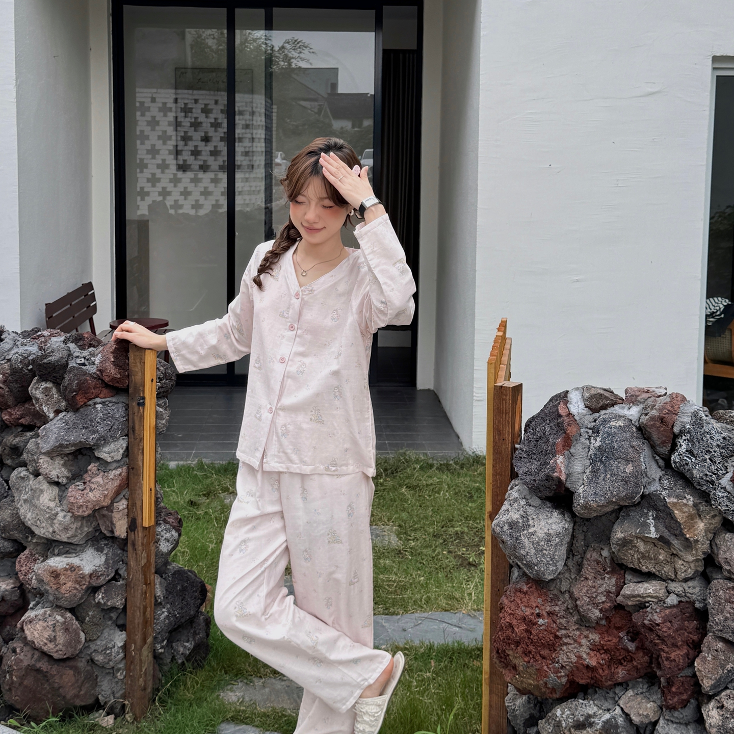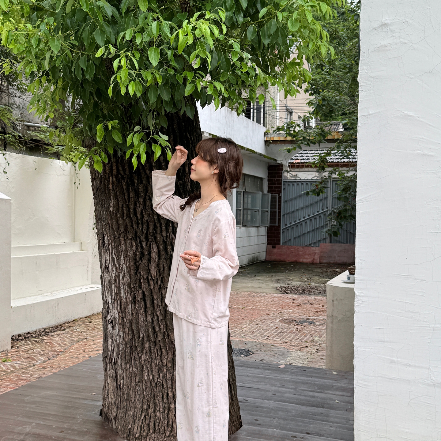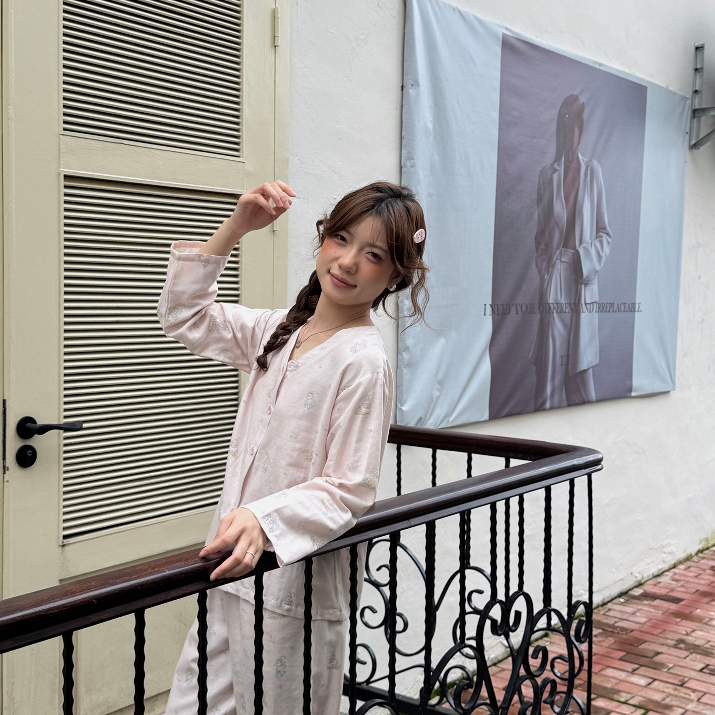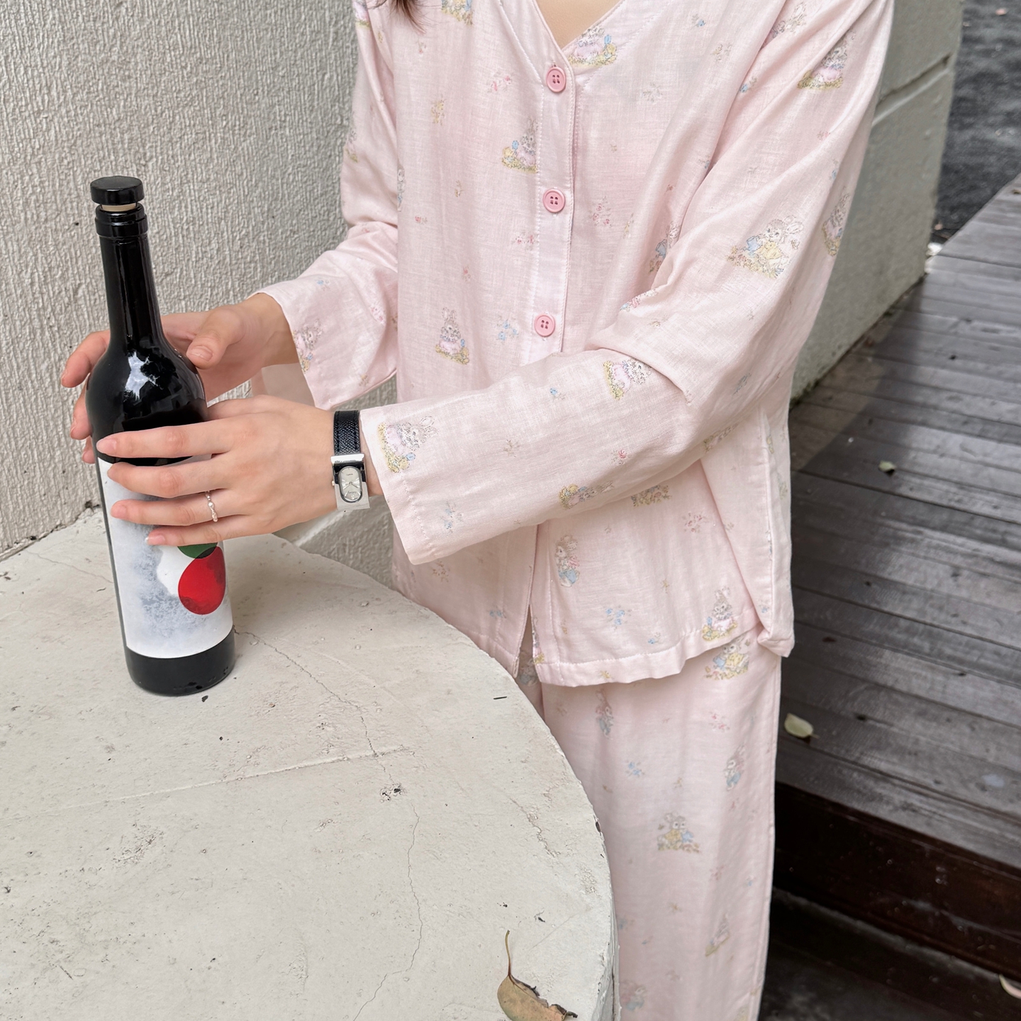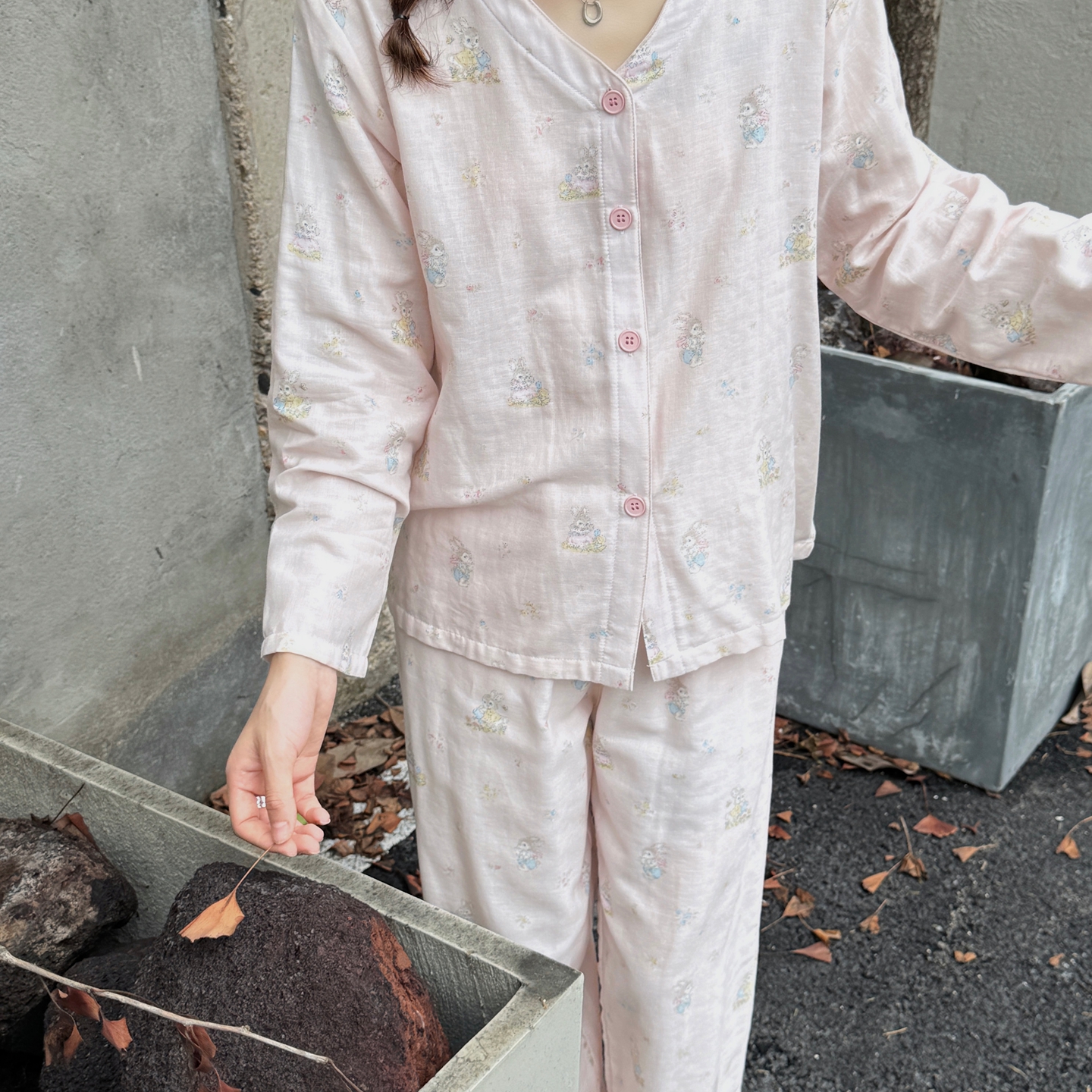 (总)纽约生活 2025新款绉布圆领开扣长袖长裤(会员-5),波比熊,黑碎花猫咪,蝴蝶结粉熊,花花狗,蓝碎花,塞纳花房