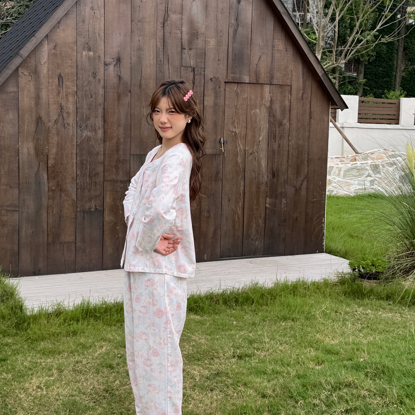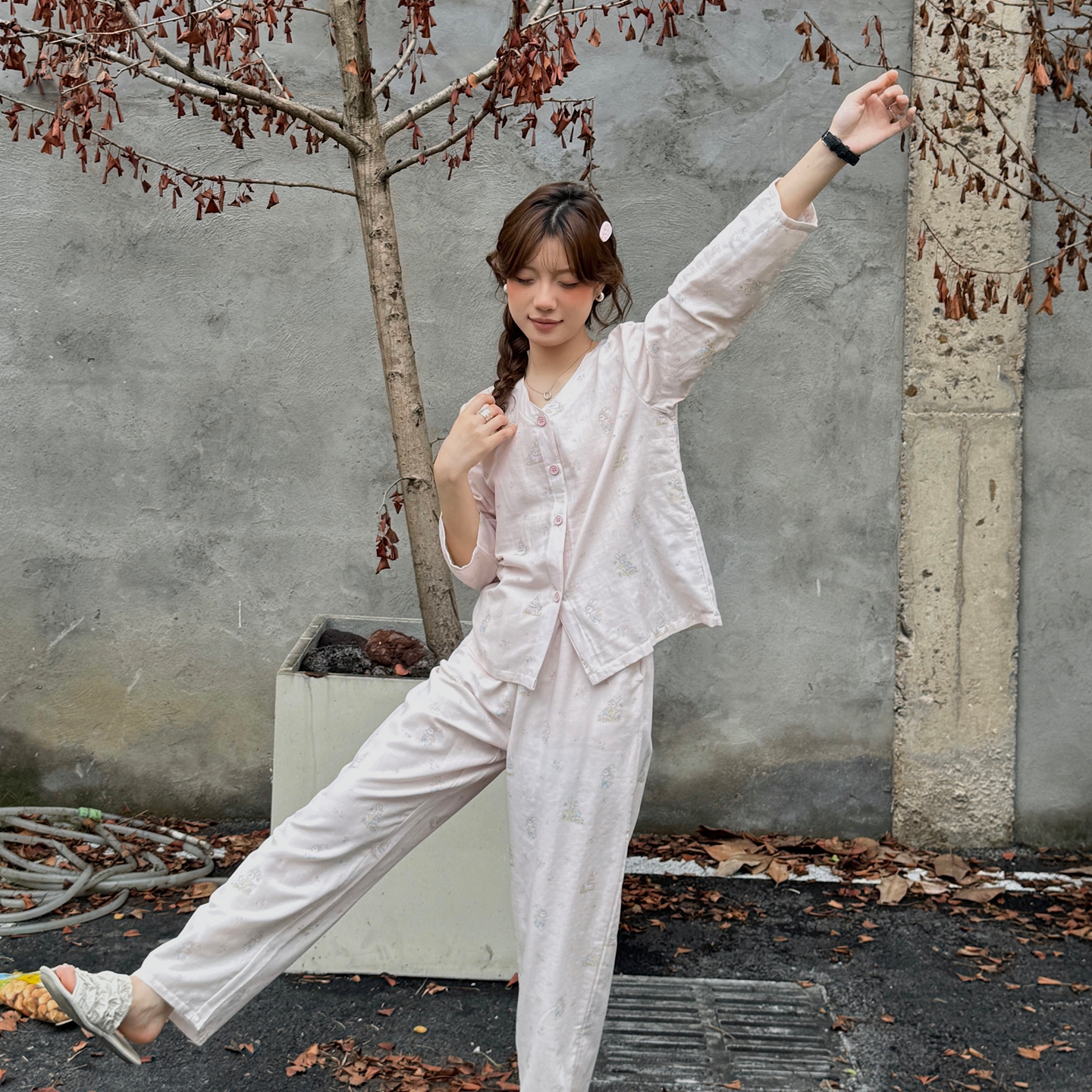 (总)纽约生活 2025新款有氧纱南法蕾丝西装领长袖长裤(会员-5),冰碎紫花,初禾,杉野蓝,兔影繁花,烟雨蝴蝶