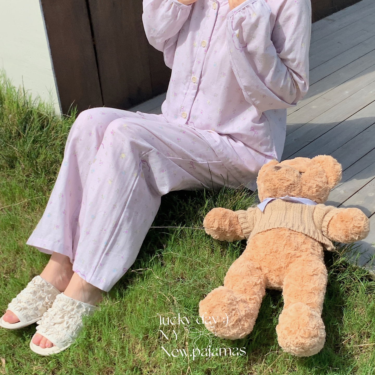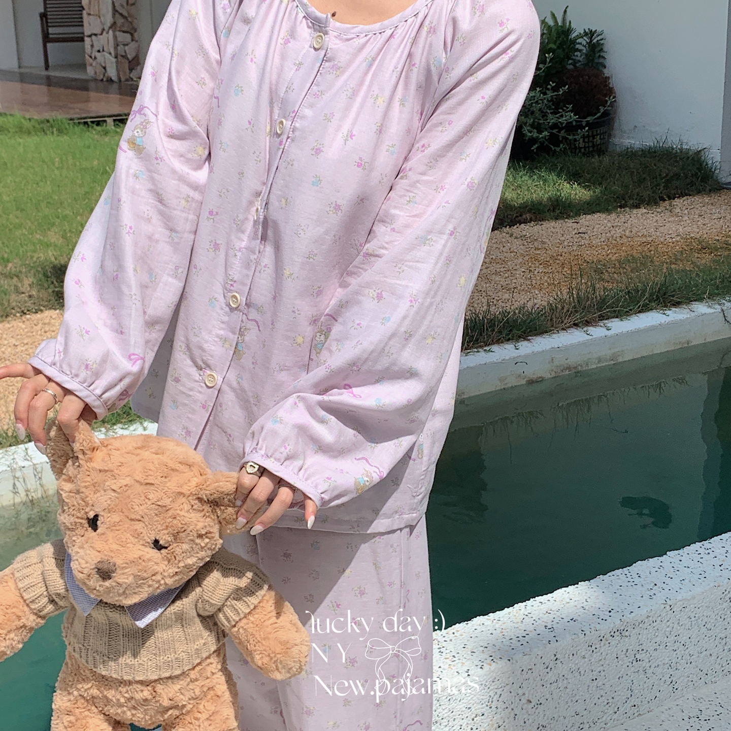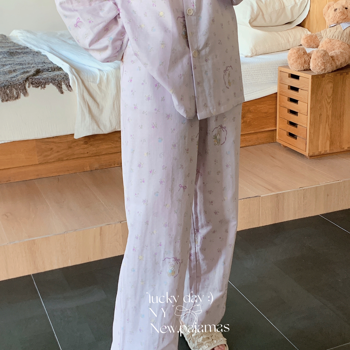 (总)纽约生活 2025新款绉布圆领开扣长袖长裤(会员-5),波比熊,黑碎花猫咪,蝴蝶结粉熊,花花狗,蓝碎花,塞纳花房
