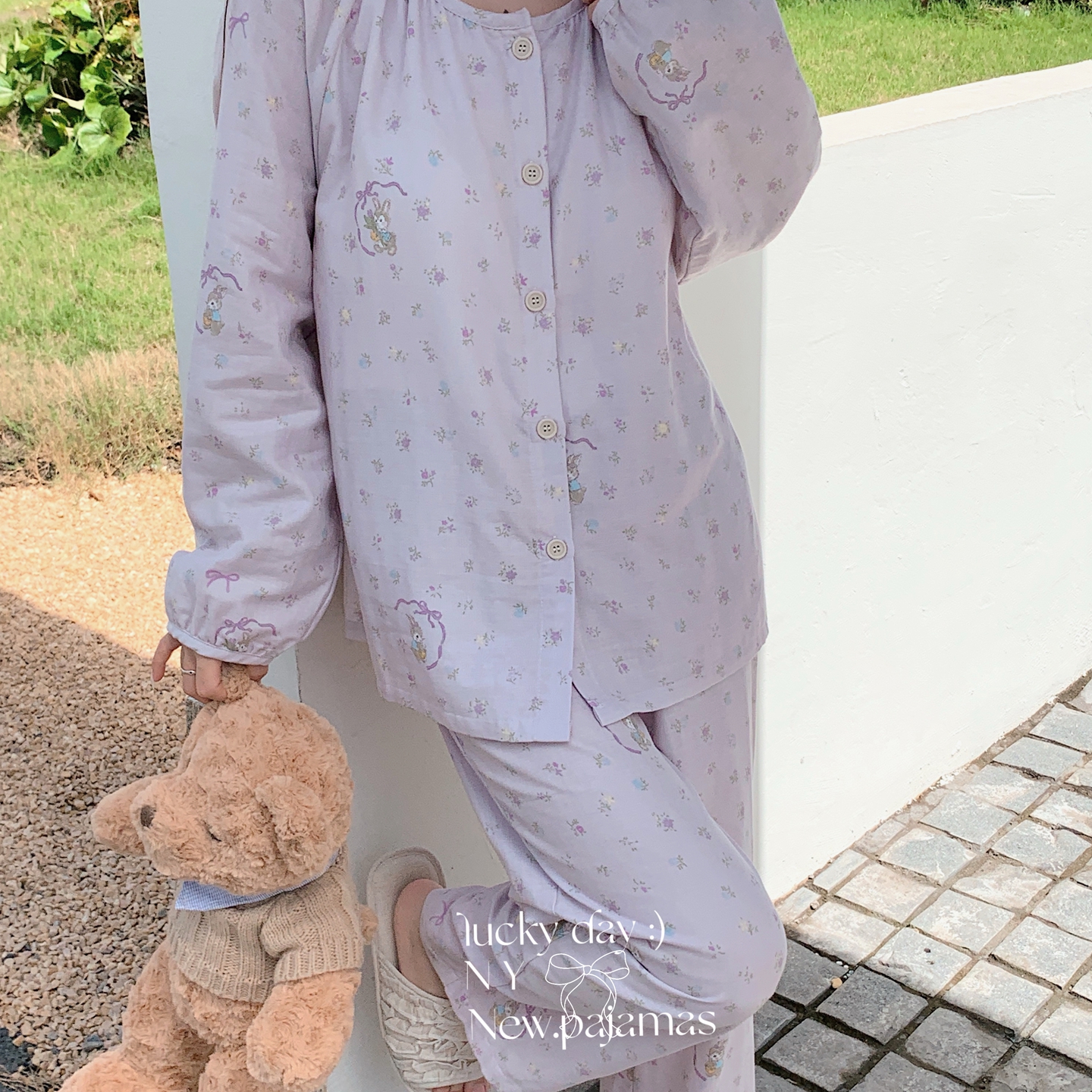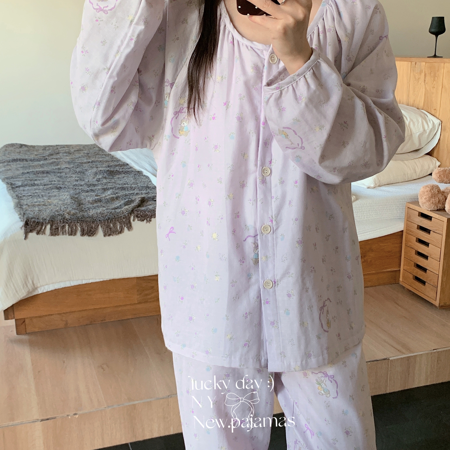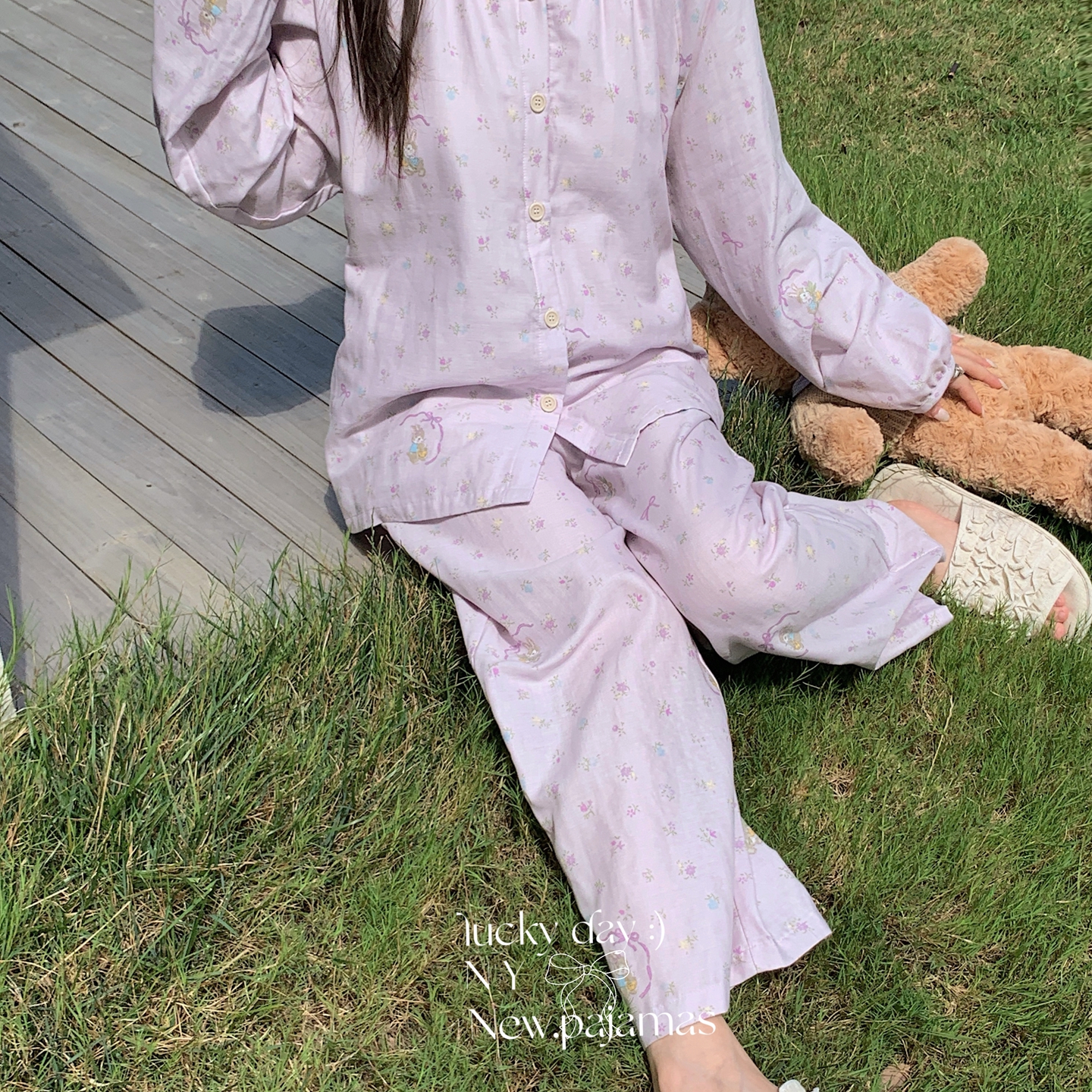 (总)纽约生活 2025新款绉布圆领开扣长袖长裤(会员-5),波比熊,黑碎花猫咪,蝴蝶结粉熊,花花狗,蓝碎花,塞纳花房