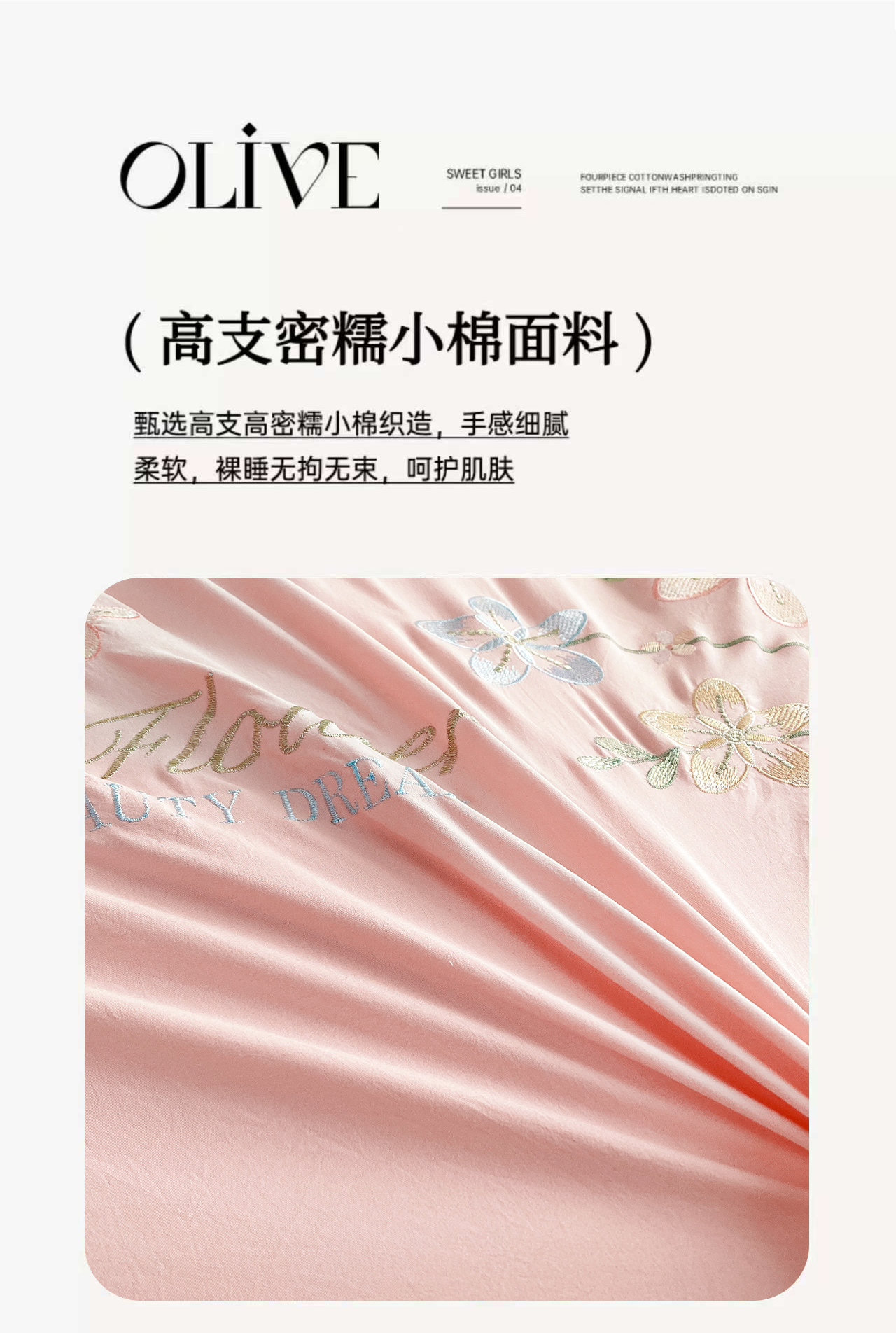 (总)大麦乐田 2025新款糯小棉立体绣花吊边四件套-手捧花