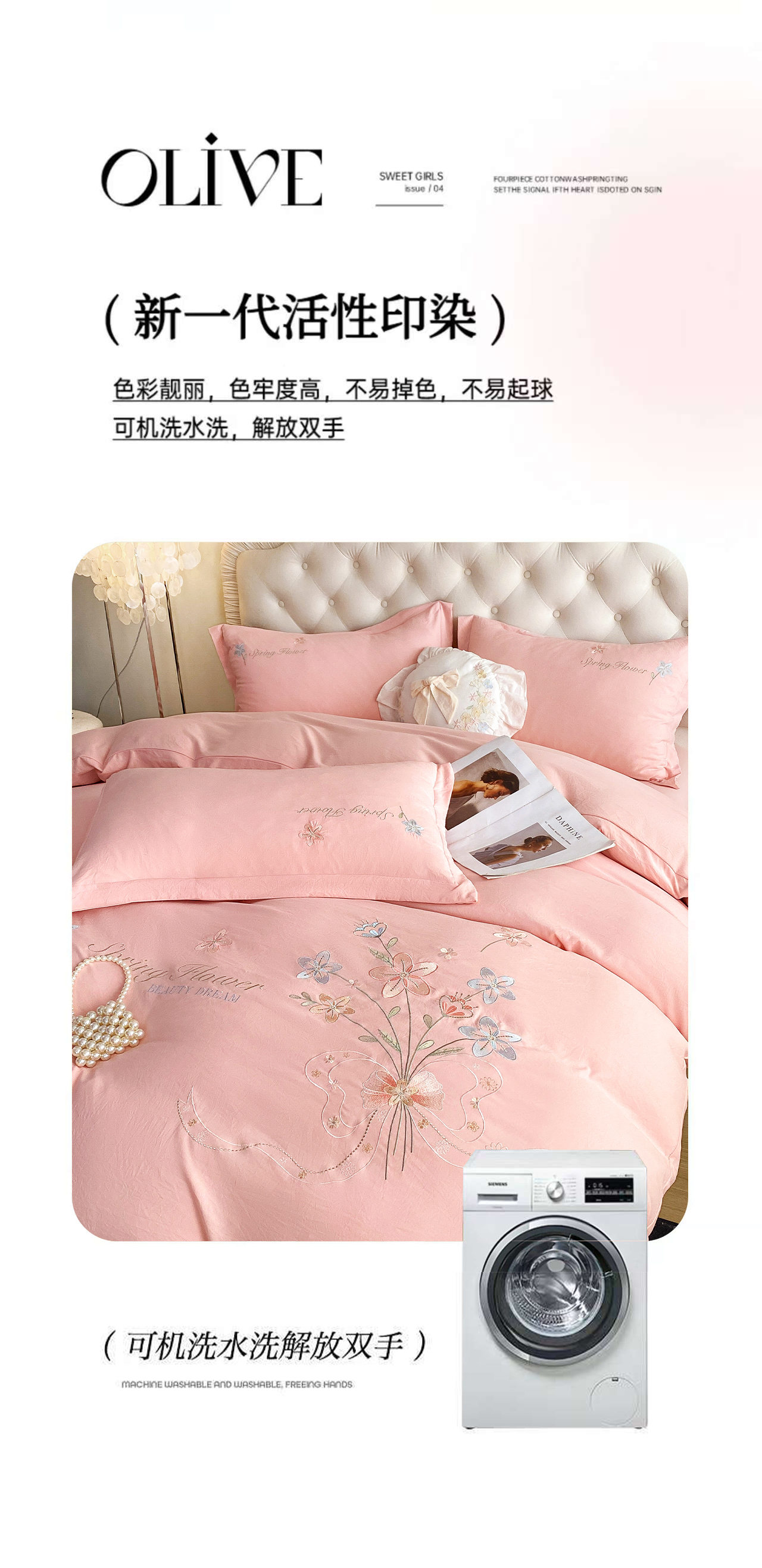(总)大麦乐田 2025新款四季亲肤磨毛立体花刺绣工艺款四件套-花香蝶舞,花香蝶舞-香粉玉,花香蝶舞-宾利兰,花香蝶舞-梦幻紫,花香蝶舞-绅士灰,花香蝶舞-奶茶绿,花香蝶舞-大红