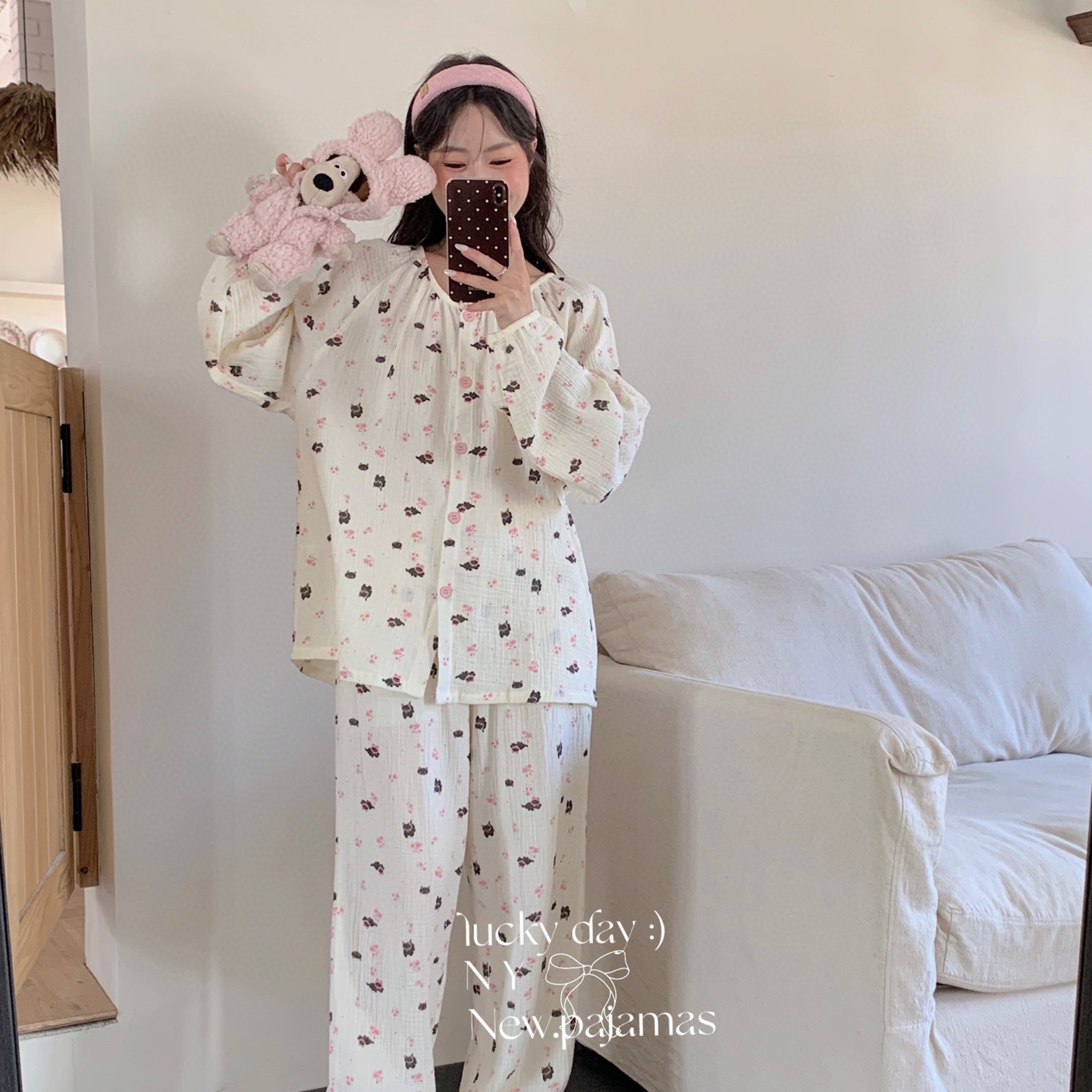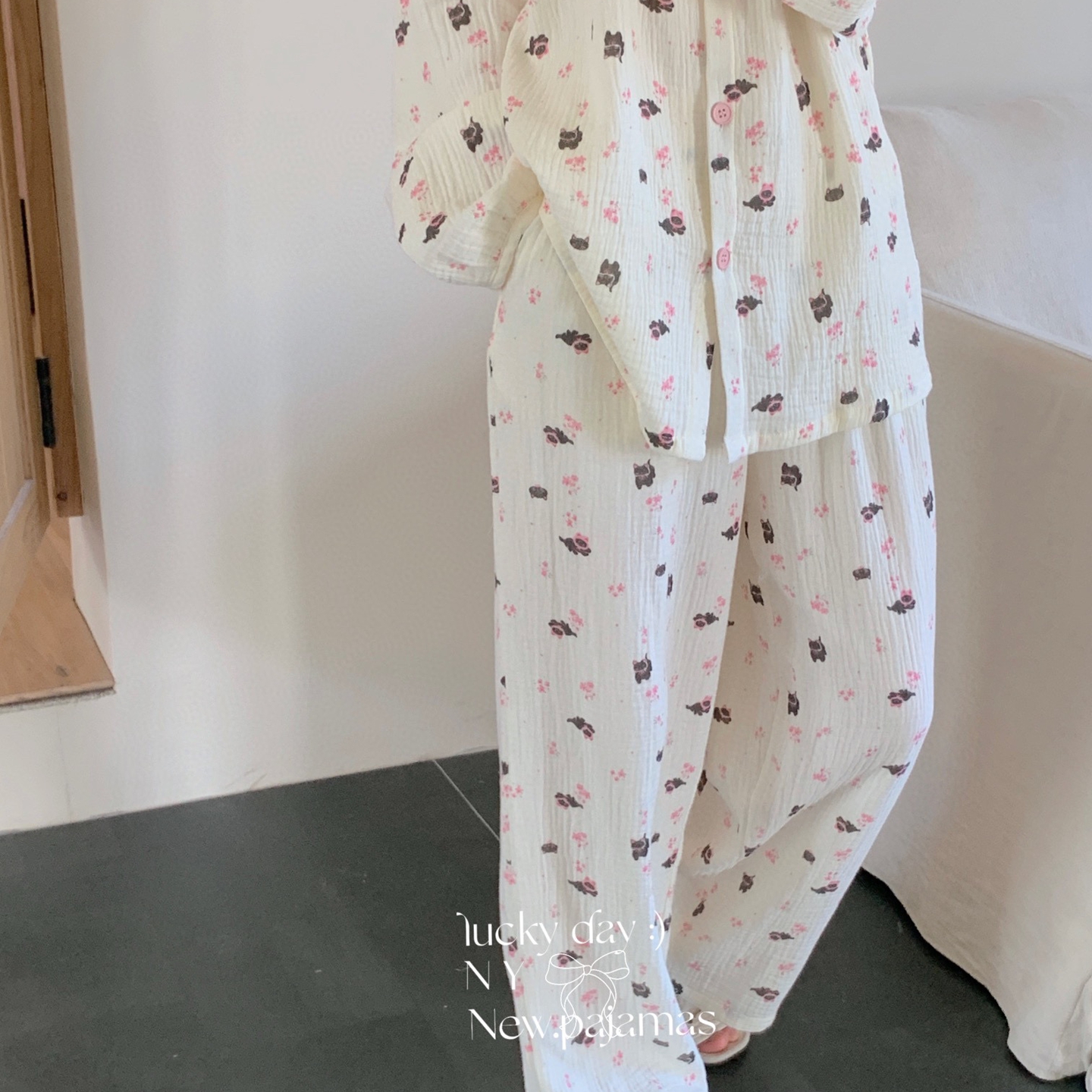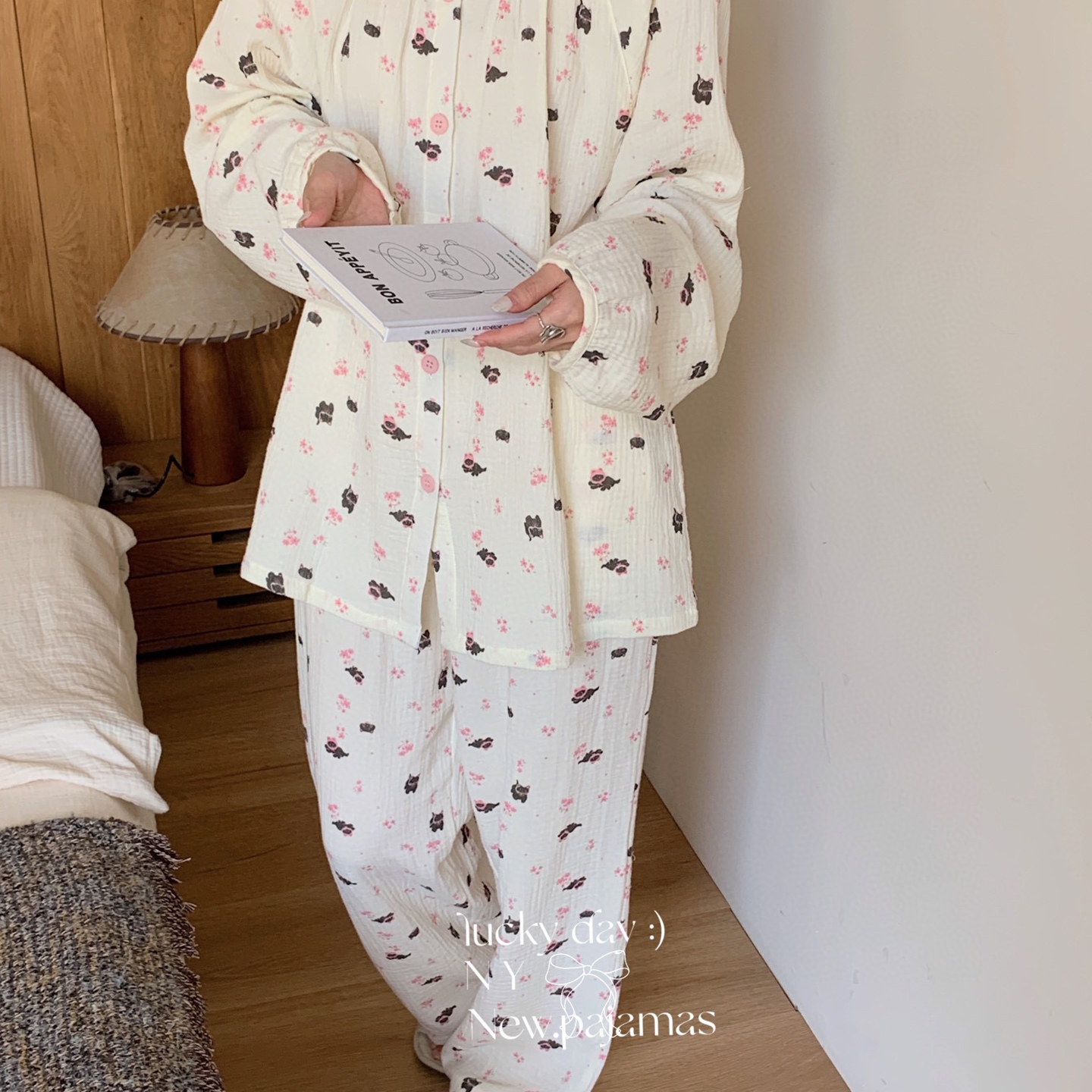 当前位置: 91家纺网 > 商品网购 > 居家日用 > 睡衣/家居服套装 > 纽约生活 2025新款绉布圆领开扣长袖长裤(会员-5) 黑碎花猫咪