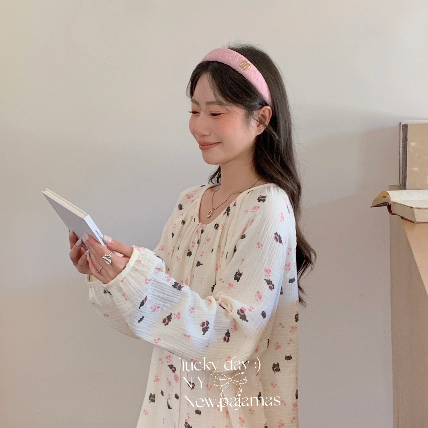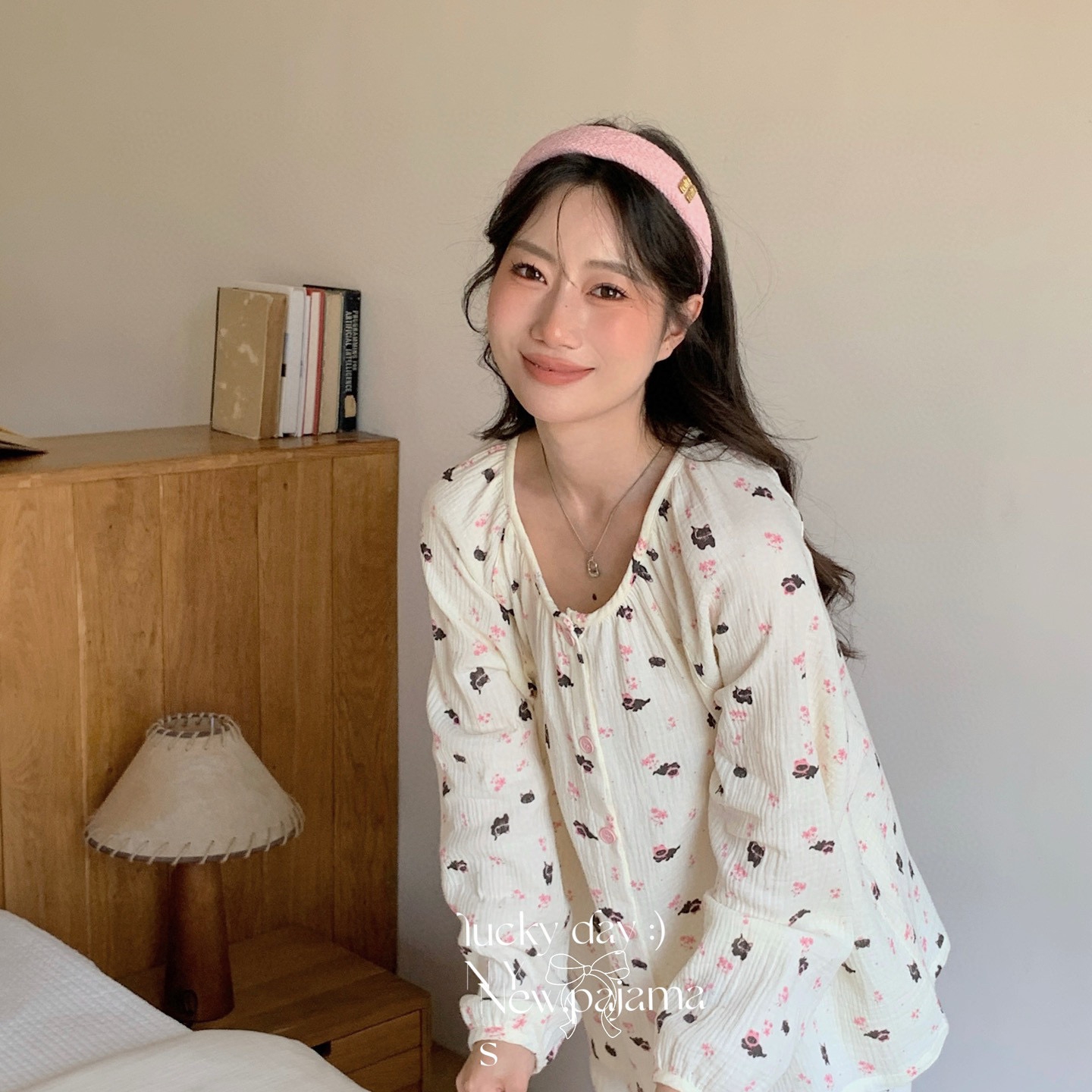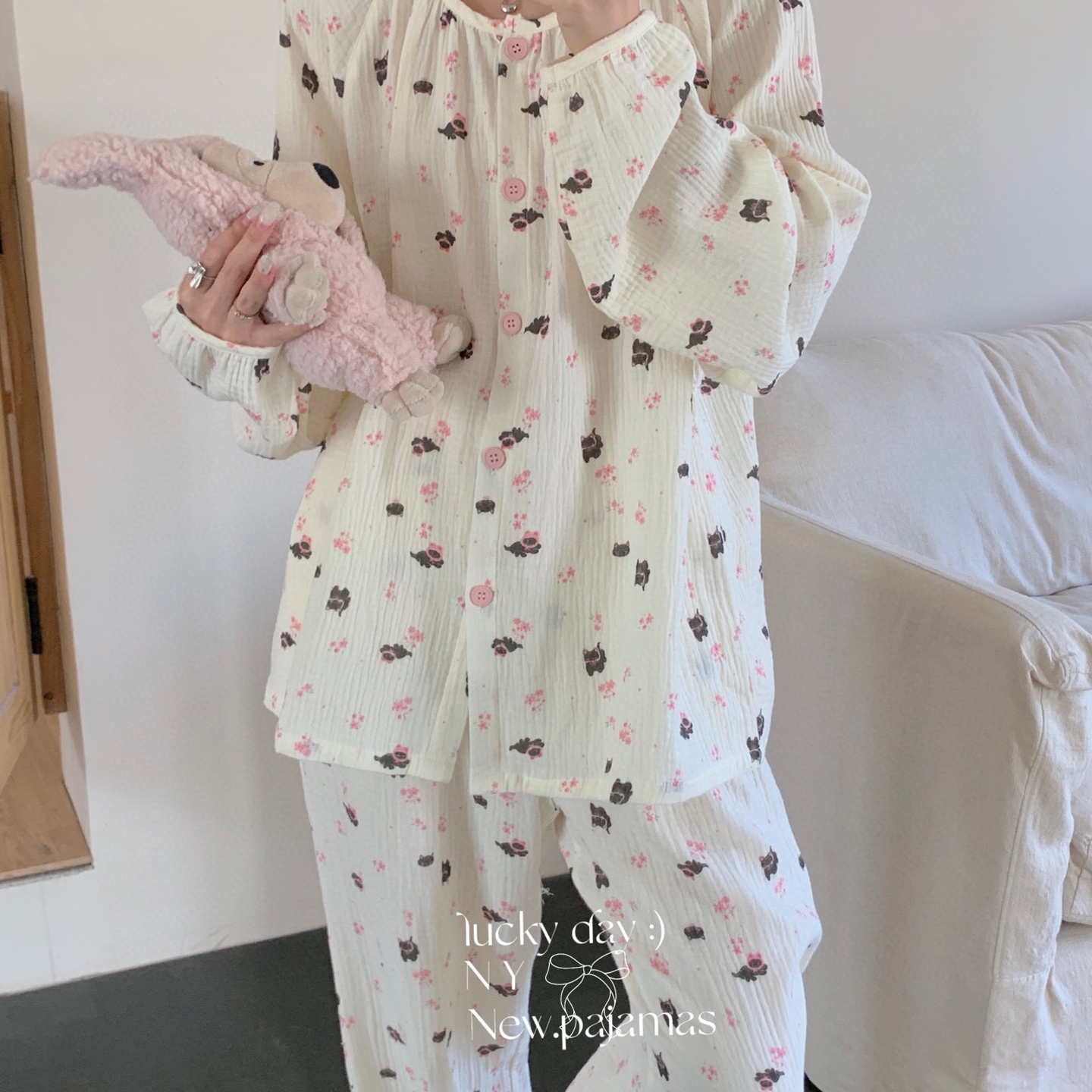 当前位置: 91家纺网 > 商品网购 > 居家日用 > 睡衣/家居服套装 > 纽约生活 2025新款绉布圆领开扣长袖长裤(会员-5) 黑碎花猫咪