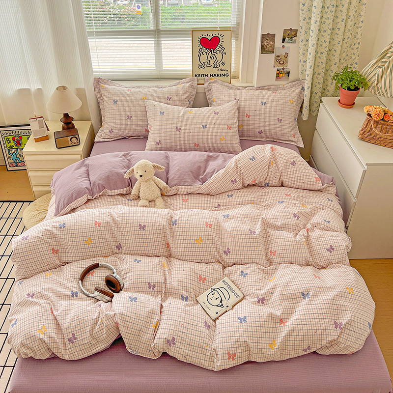 (总)梦纤绒 2026新款全棉纯棉印花四件套,方格律,粉底花,格语,蝴蝶结蓝,花海小宠,花眠小宠,花束,方格眠,花样年华,花语,花园兔,可爱皮皮狗,恐龙世界,蓝格童伴,森林兔,条纹鼠,贴贴熊,星月方格