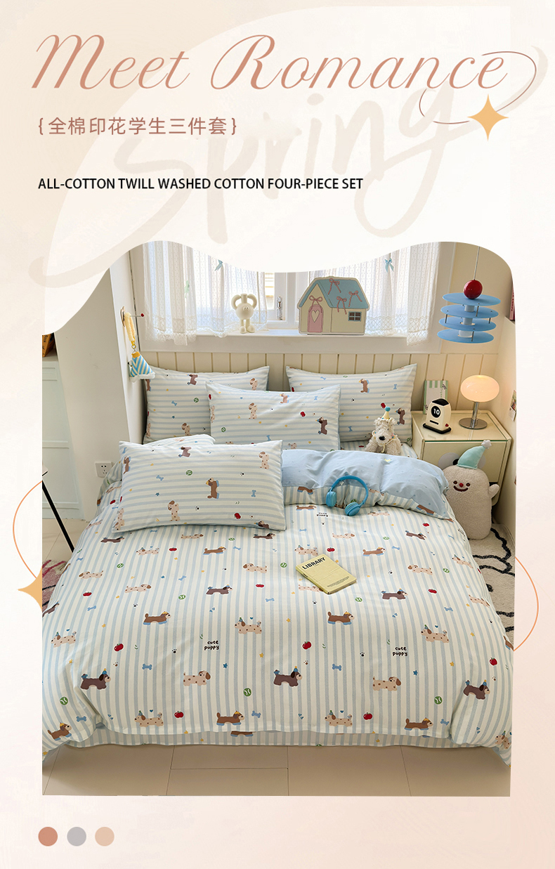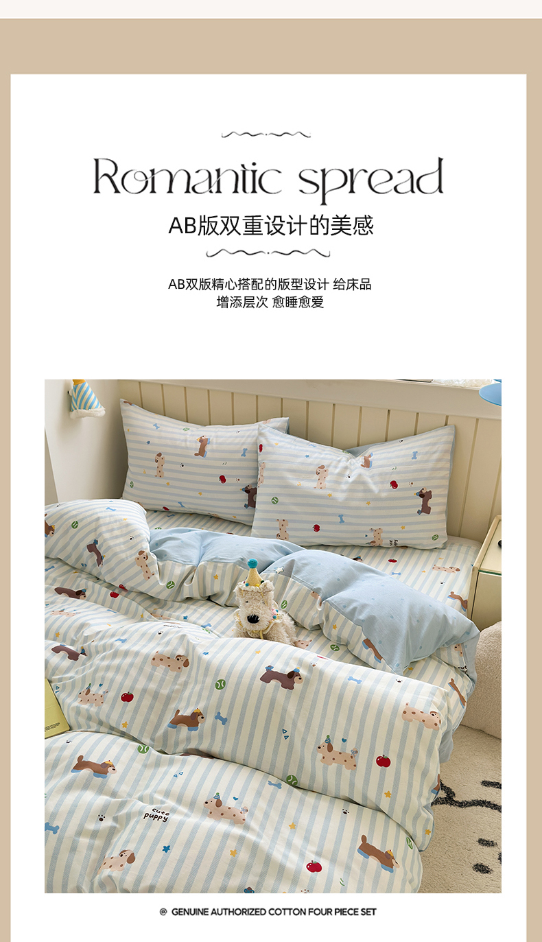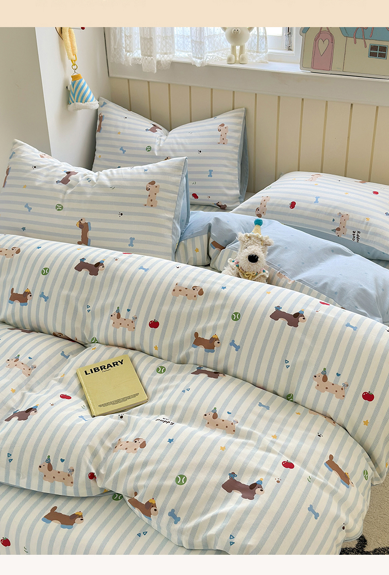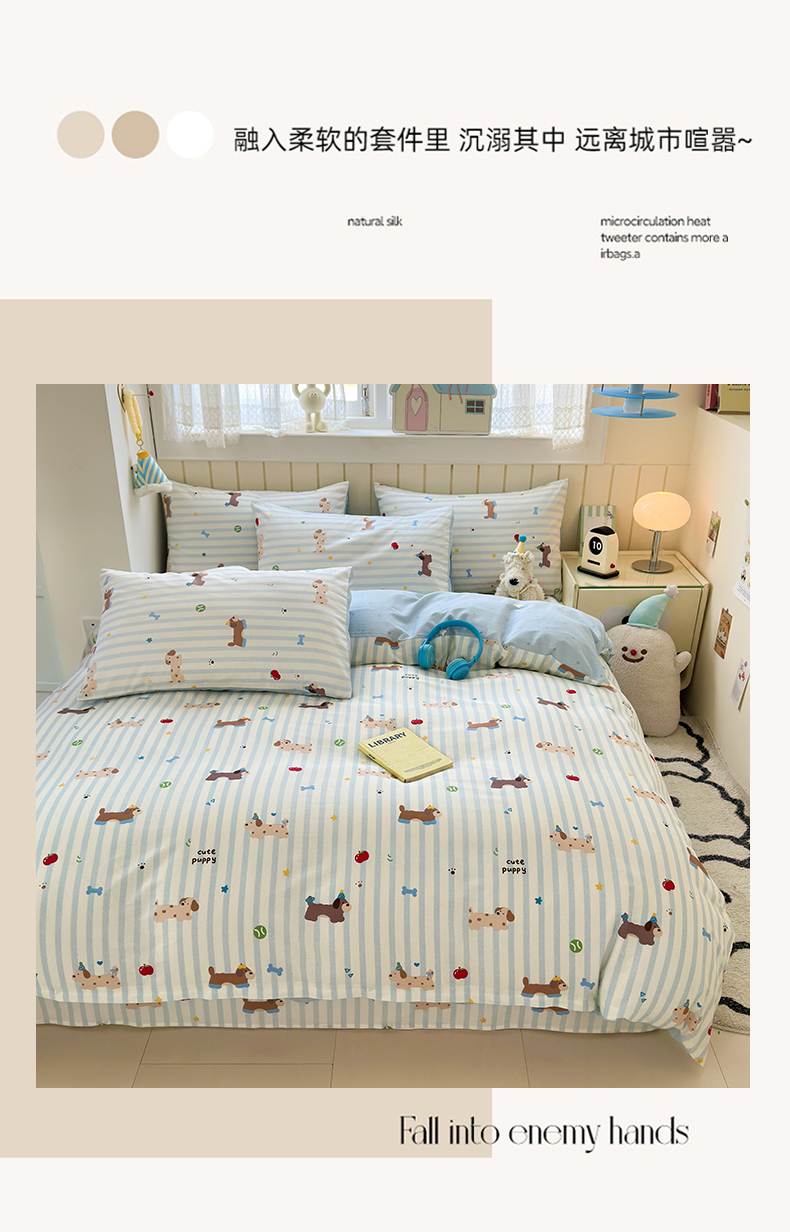 当前位置: 91家纺网 > 商品网购 > 床品套件 > 四件套 > 全棉普通四件套 > 曼之夏 2025新款全棉纯棉40支学生季卡通印花四件套 椰蓝小腊肠