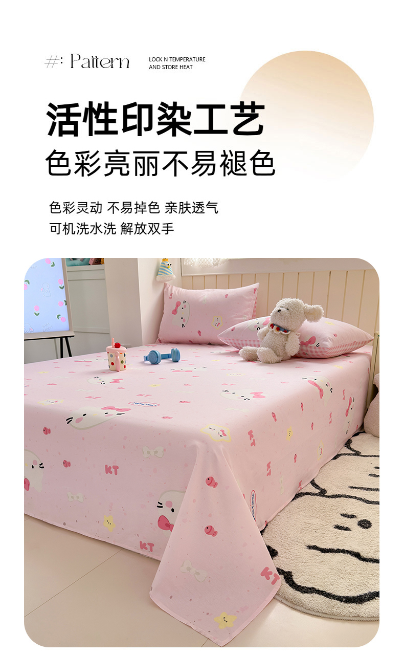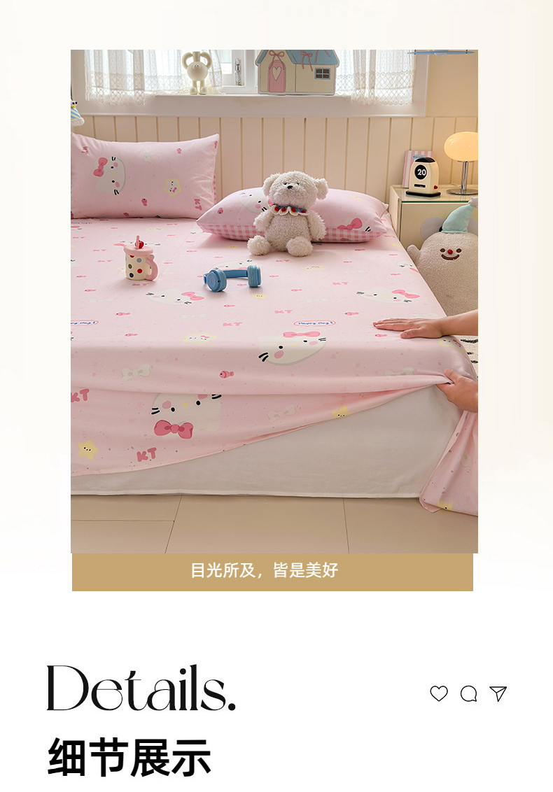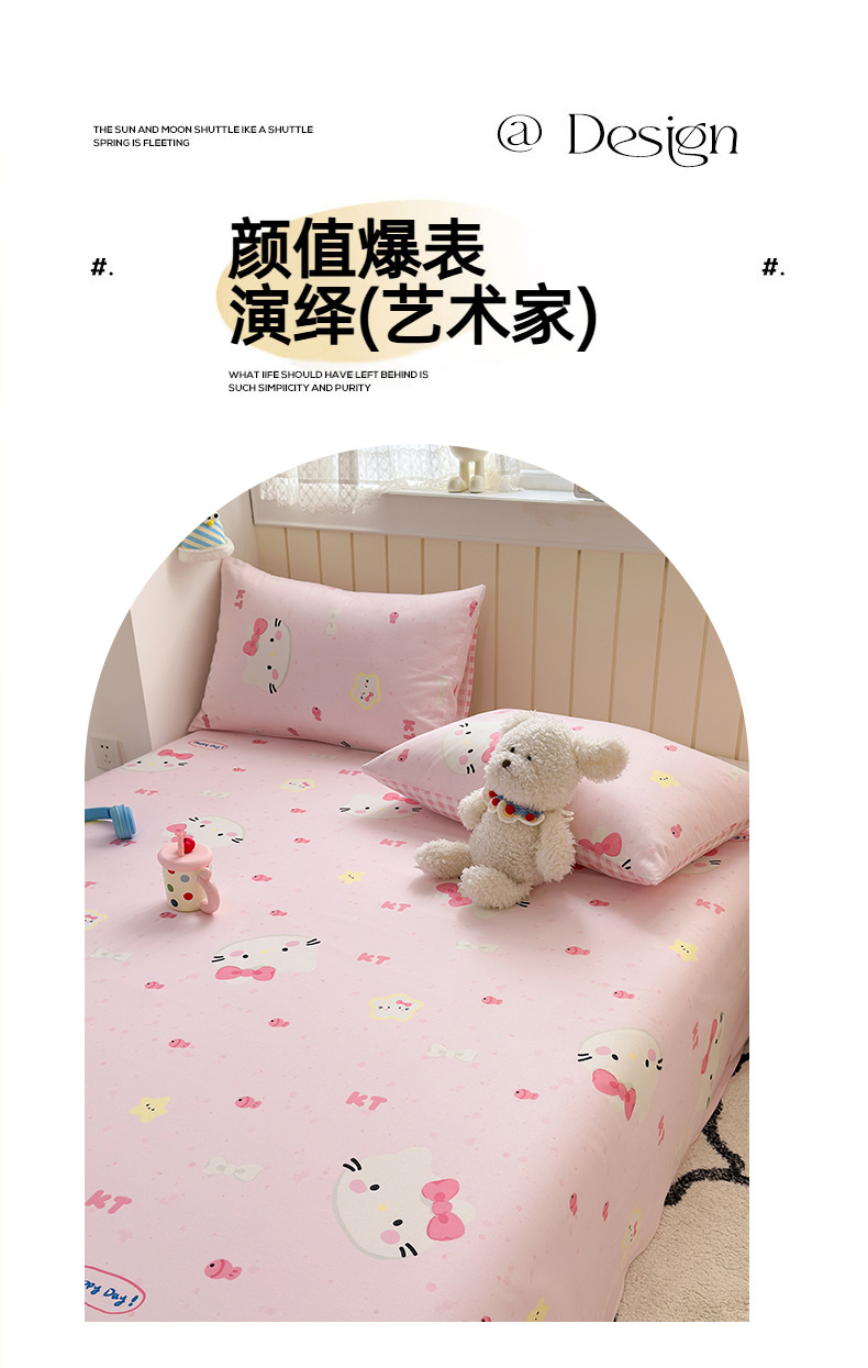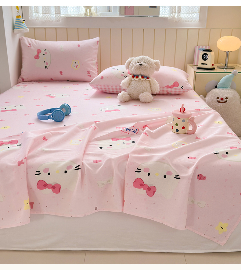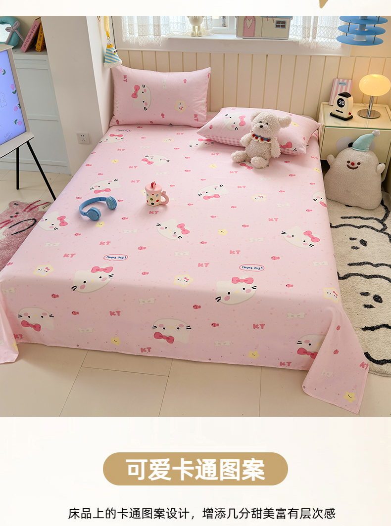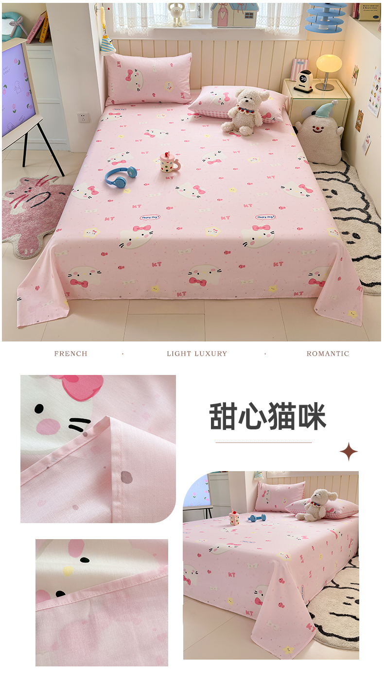 • 91家纺网 家纺一手货源 找家纺 曼之夏 2025新款全棉纯棉40支学生季卡通印花床单单床单床单单件 甜心猫咪