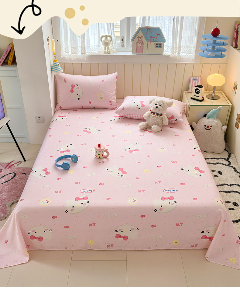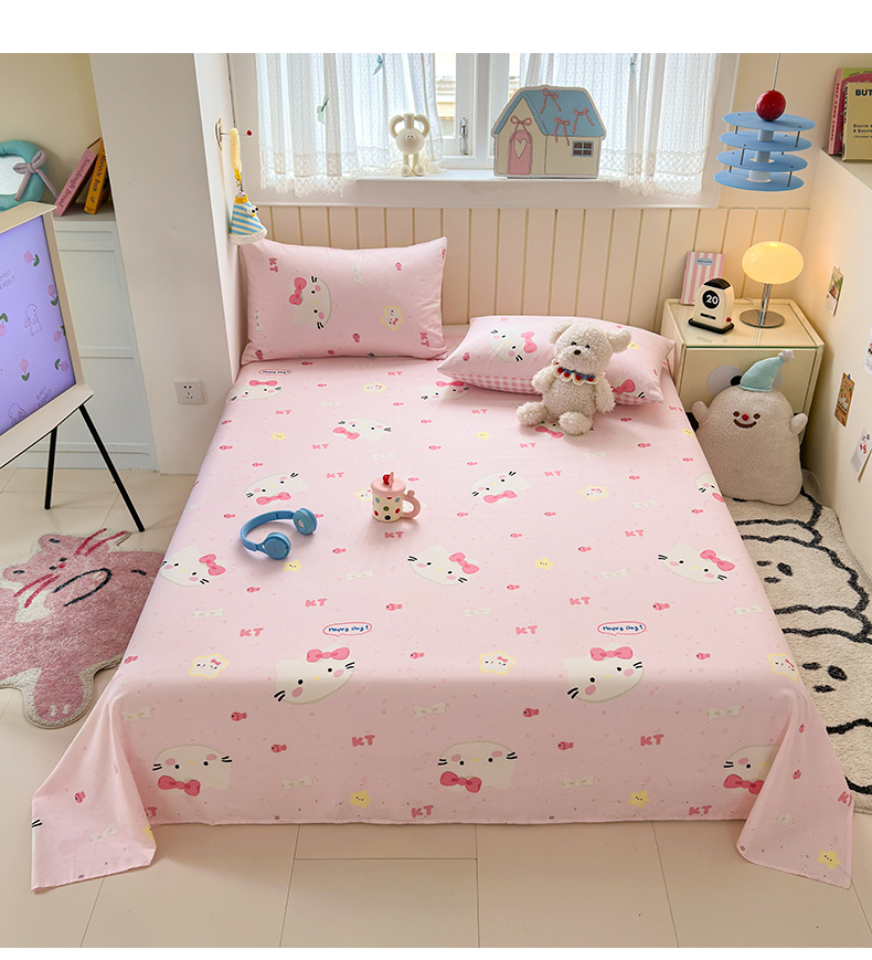 曼之夏 2025新款全棉纯棉40支学生季卡通印花床单单床单床单单件 甜心猫咪