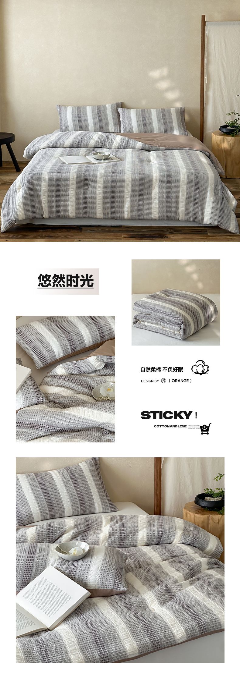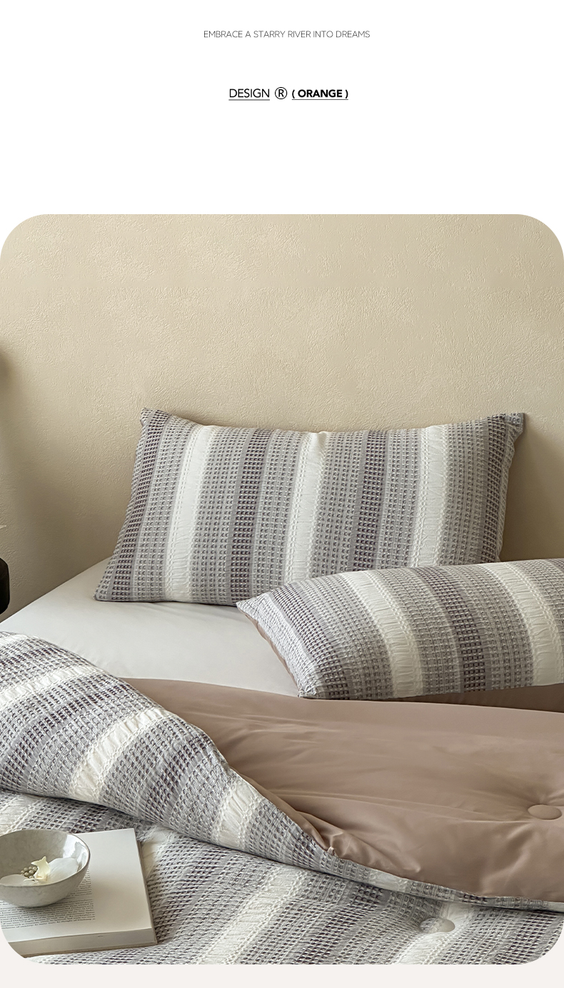 (总)一加一 2026新款全棉无印超柔水洗色织凉感夏被四件套-日式云柔,冬至白,秋分白,秋分咖,小满灰,小满棕