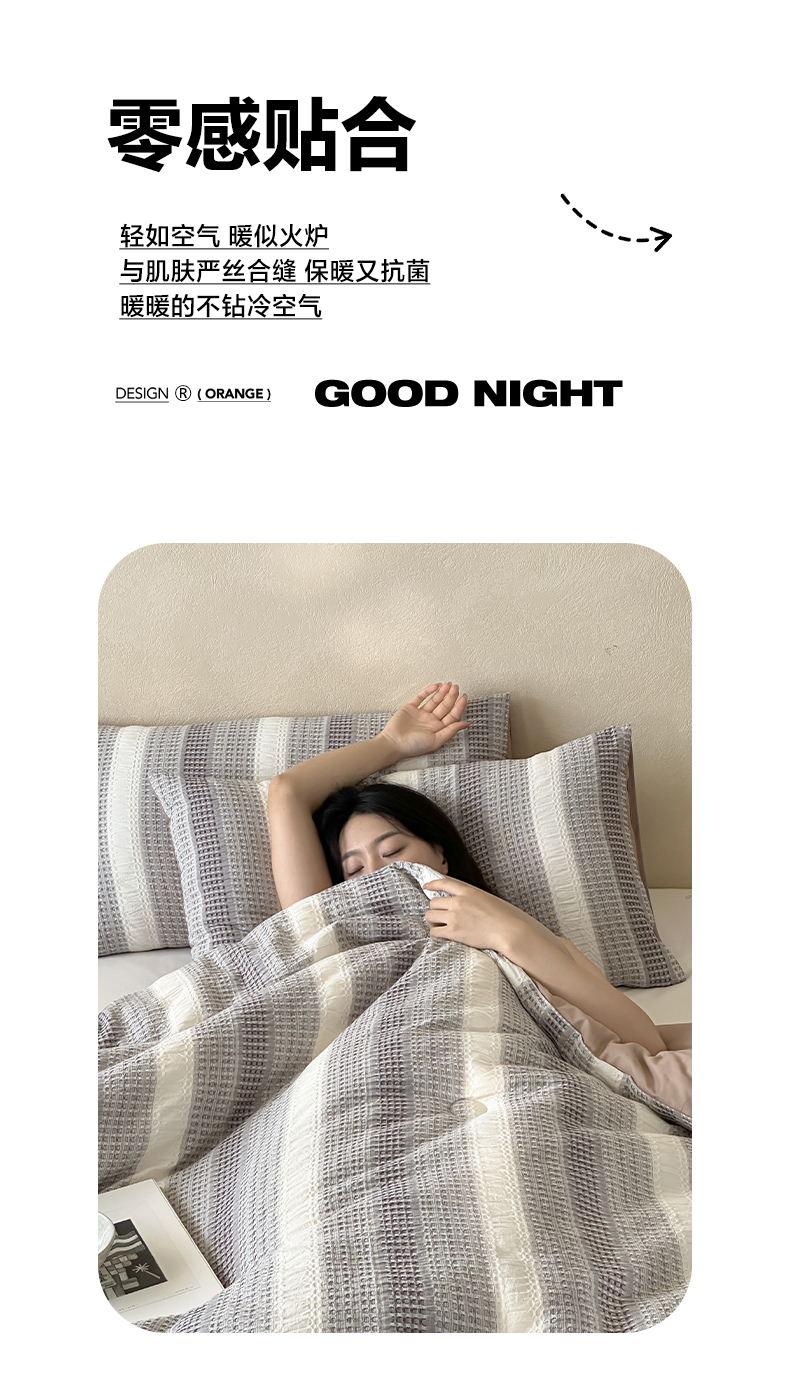 商品名称:一加一 2025新款全棉色织简约风艾阳绒抗菌被芯 悠然时光